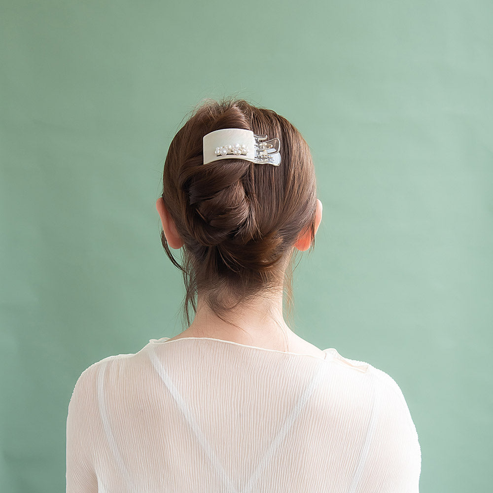ヘアクリップ マーブル カラー ラメ プレート バブル パール ビーズ クリア サイドバンスクリップ