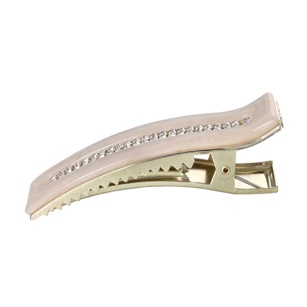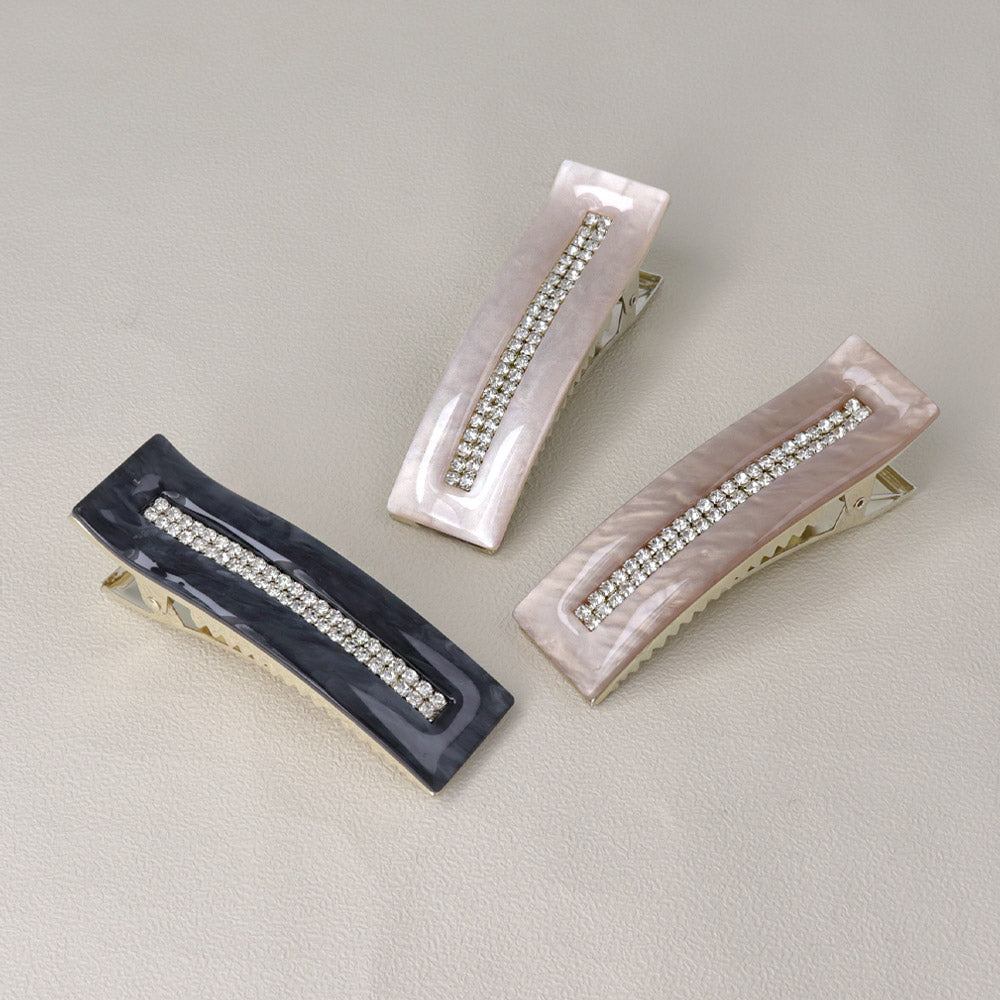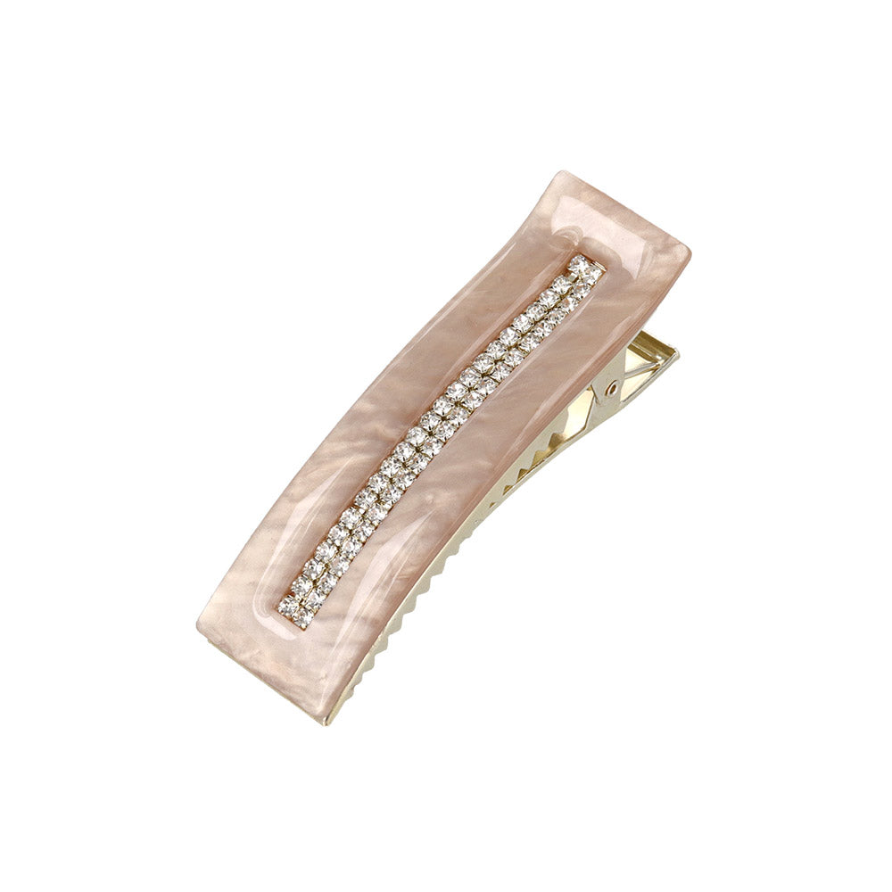 ヘアクリップ マーブル カラー フレーム ミニ ストーン ダブル ライン メタル サイド フォーククリップ