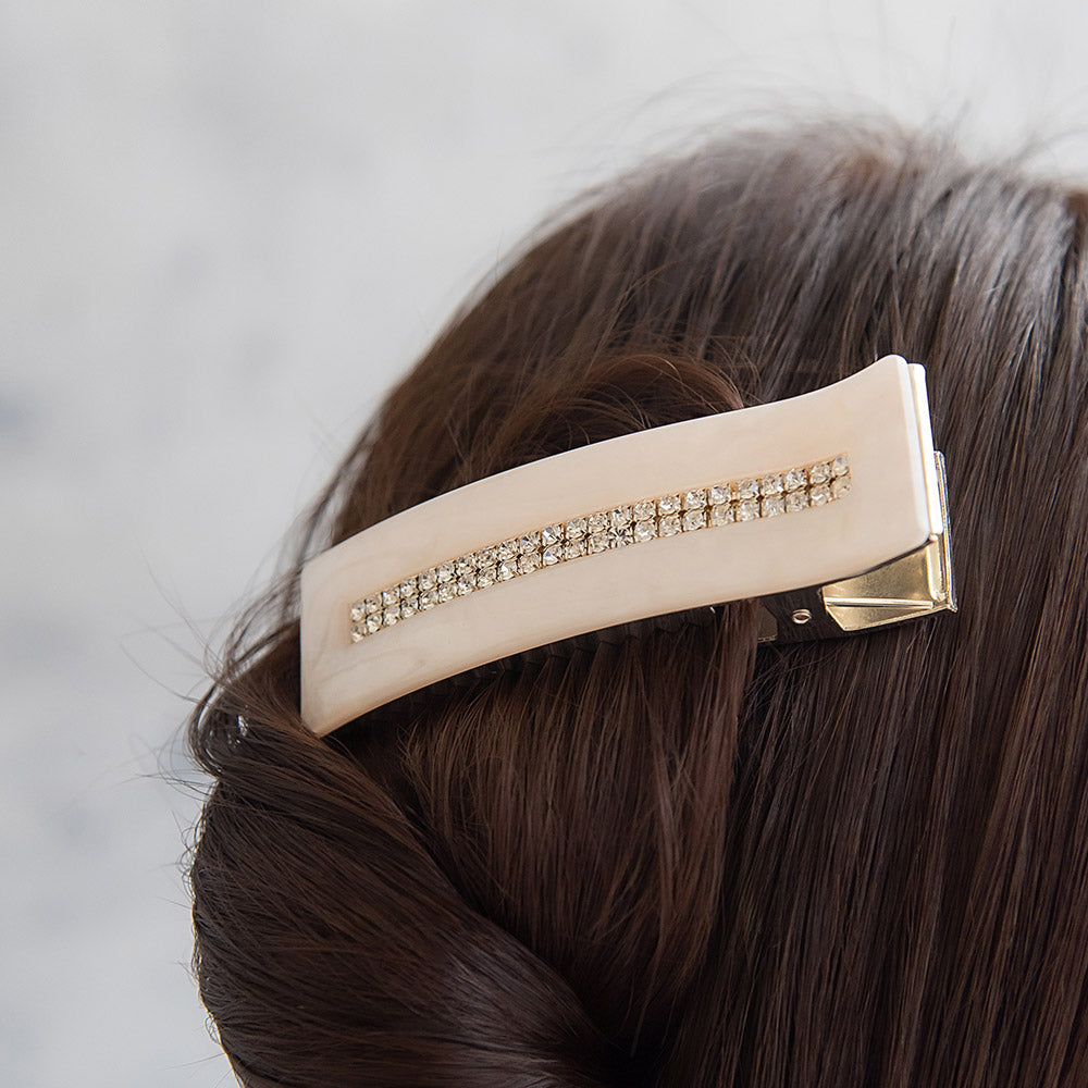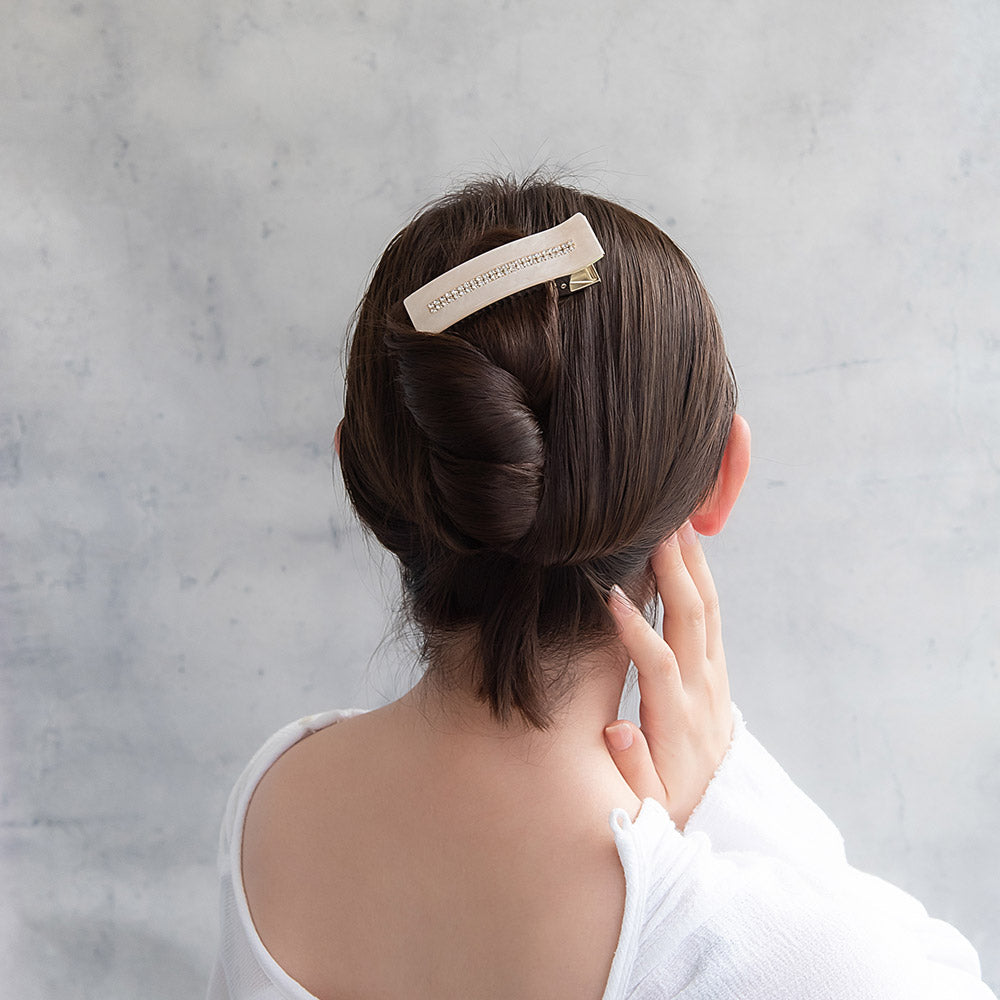 cl0365キレイ色のマーブルに贅沢にあしらったストーンが上品に煌めくヘアクリップ。存在感もあってコーデ映え。幅広いコーデと好相性の高見えアイテム。ワンポイント使いで華やかさをUP◎とっさのまとめ髪や気分をリフレッシュしたい時に使えて◎