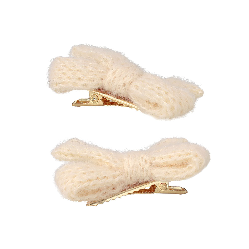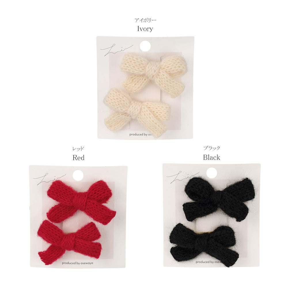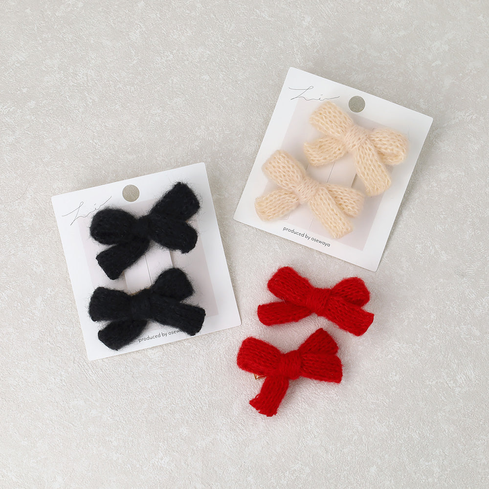 ヘアクリップ ニット編み リボン カラー 2個セット ミニ サイドクリップ
