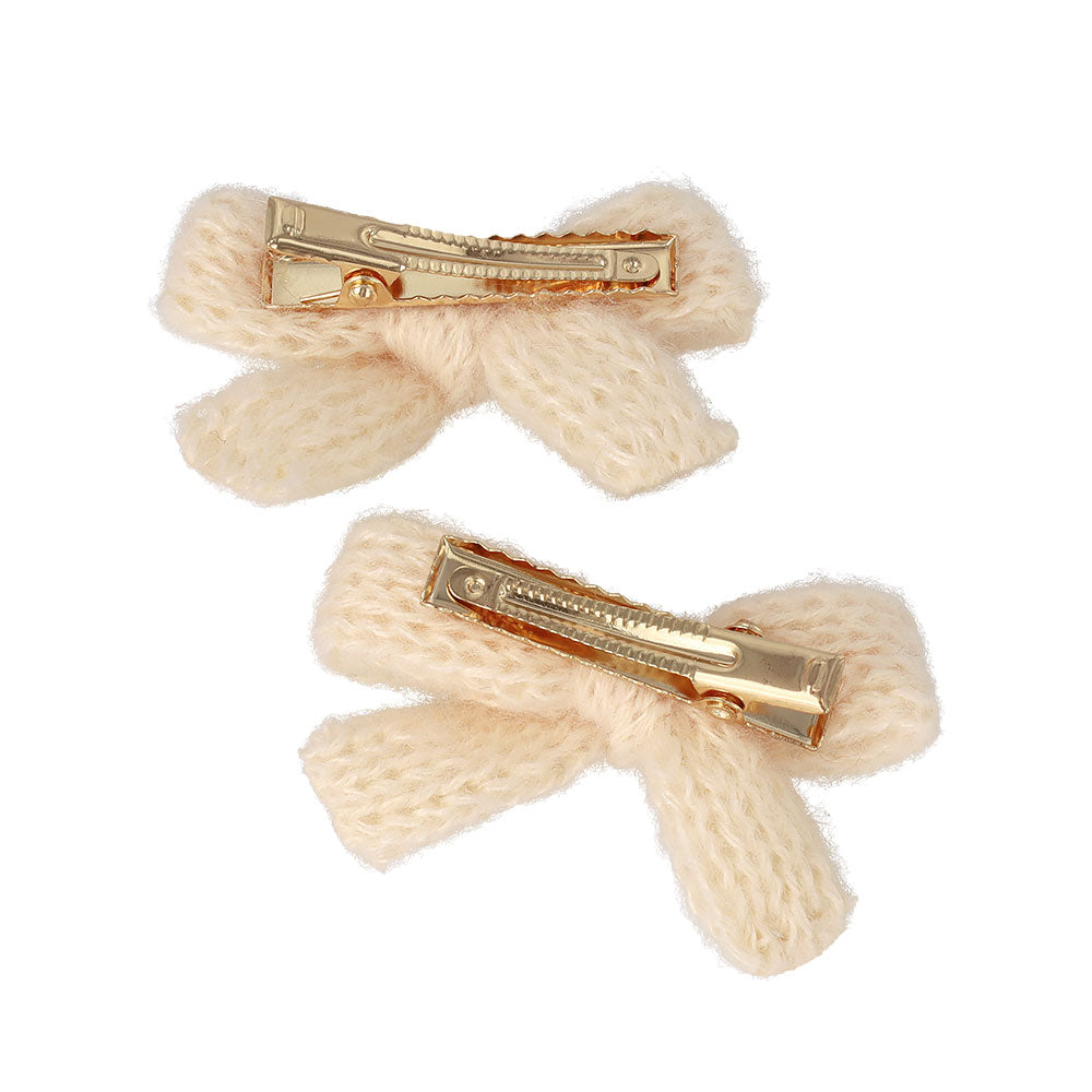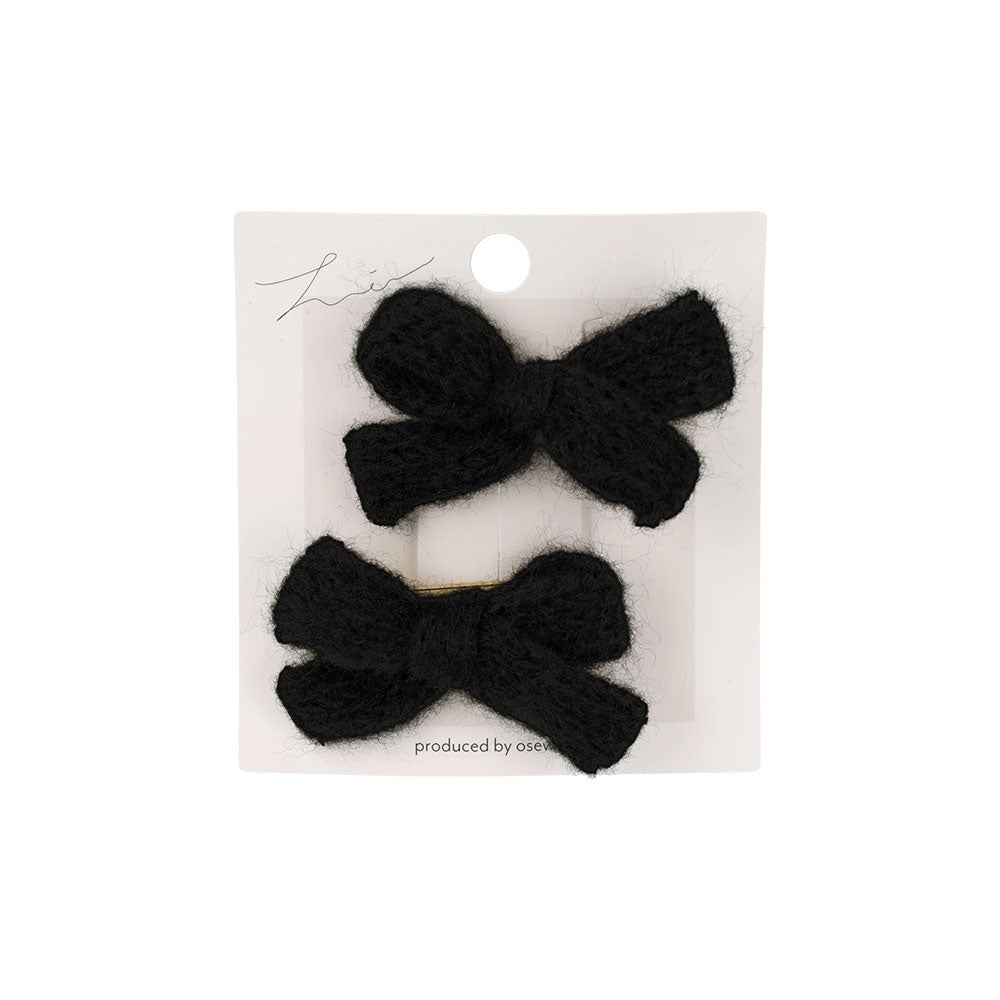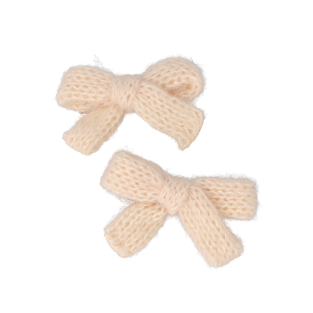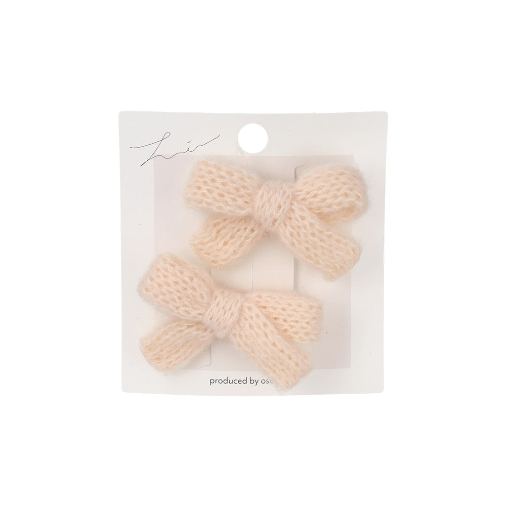 ヘアクリップ ニット編み リボン カラー 2個セット ミニ サイドクリップ