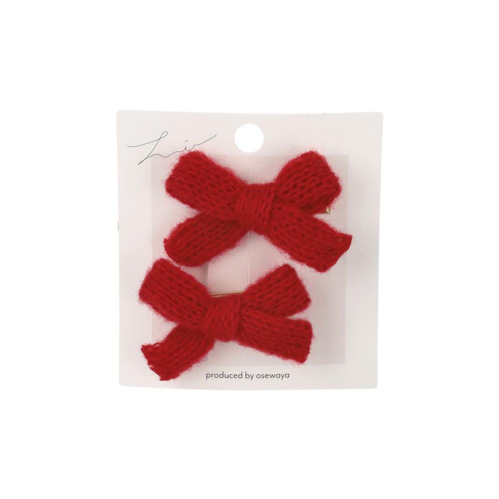 cl0378秋冬コーデに映える華やかさ。シーズンムードを高めるニット素材。甘さをひとさじくわえるのにちょうどいいリボンアイテム。アレンジに幅の効くミニサイズで、はさむだけで手軽につけられるヘアクリップ。親子でお揃いや兼用も◎