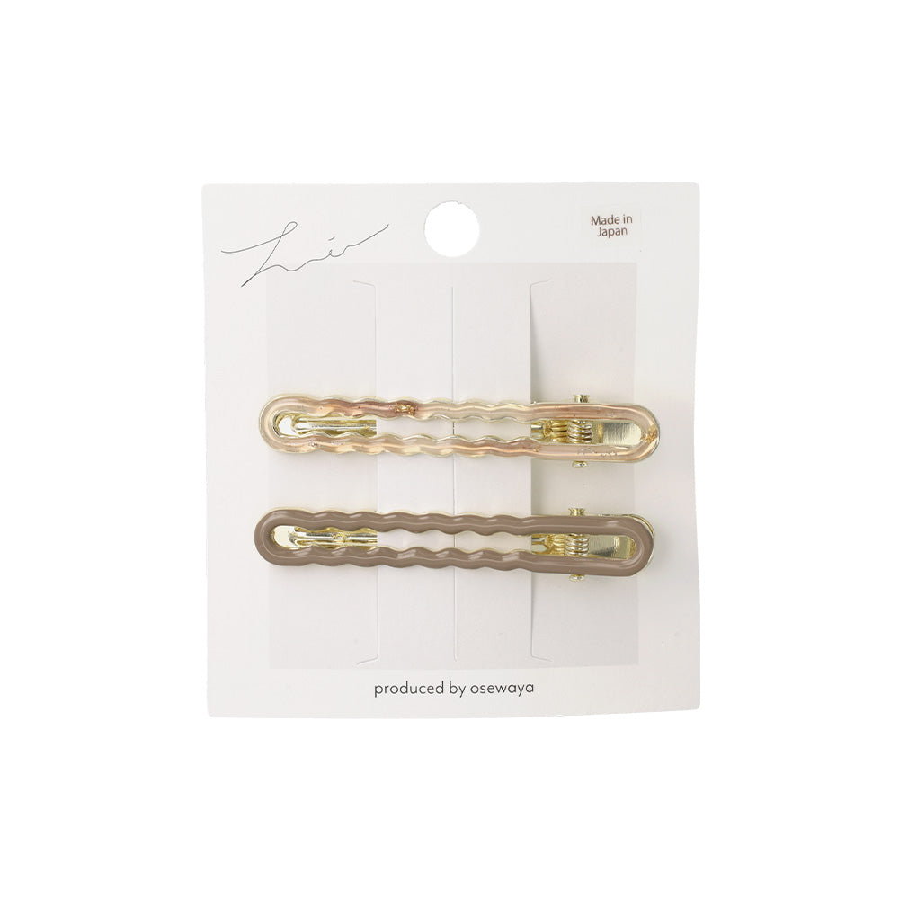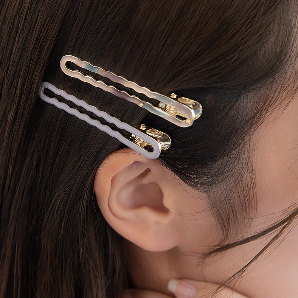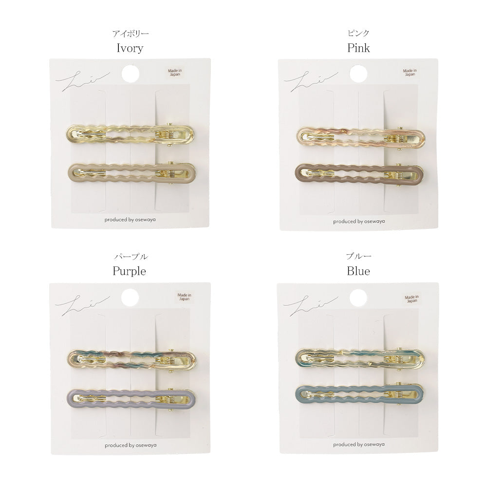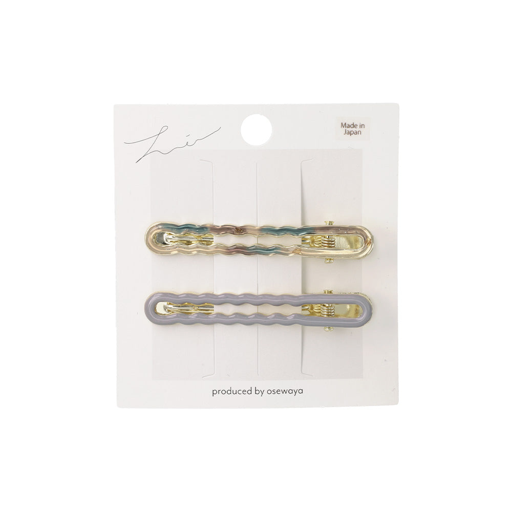 ヘアクリップ ウェーブ オーバル フレーム マーブル カラー 2個セット サイドクリップ