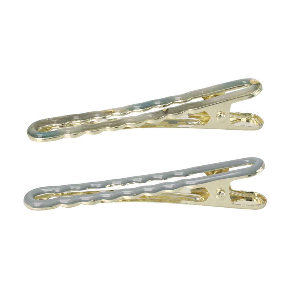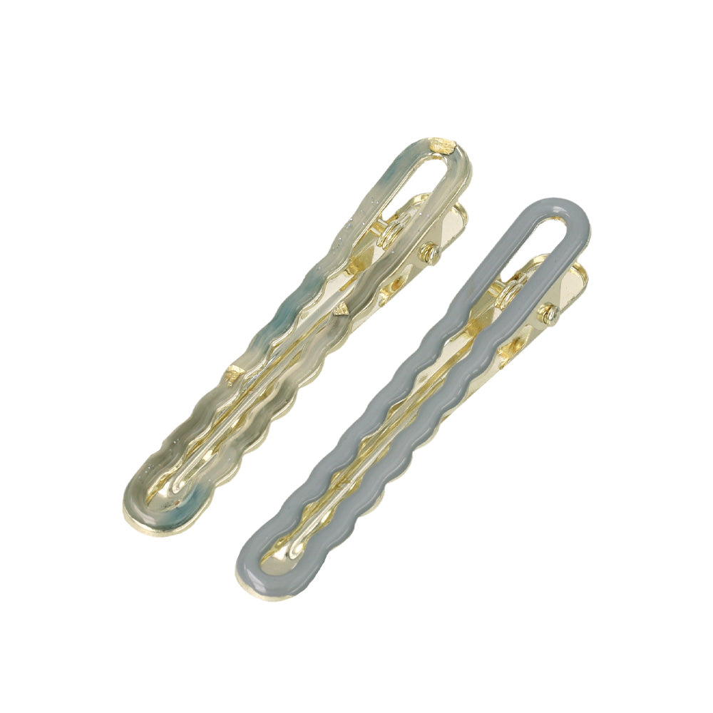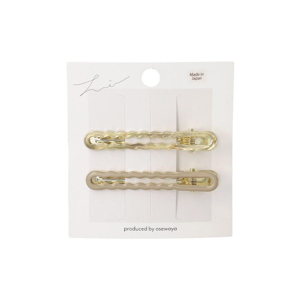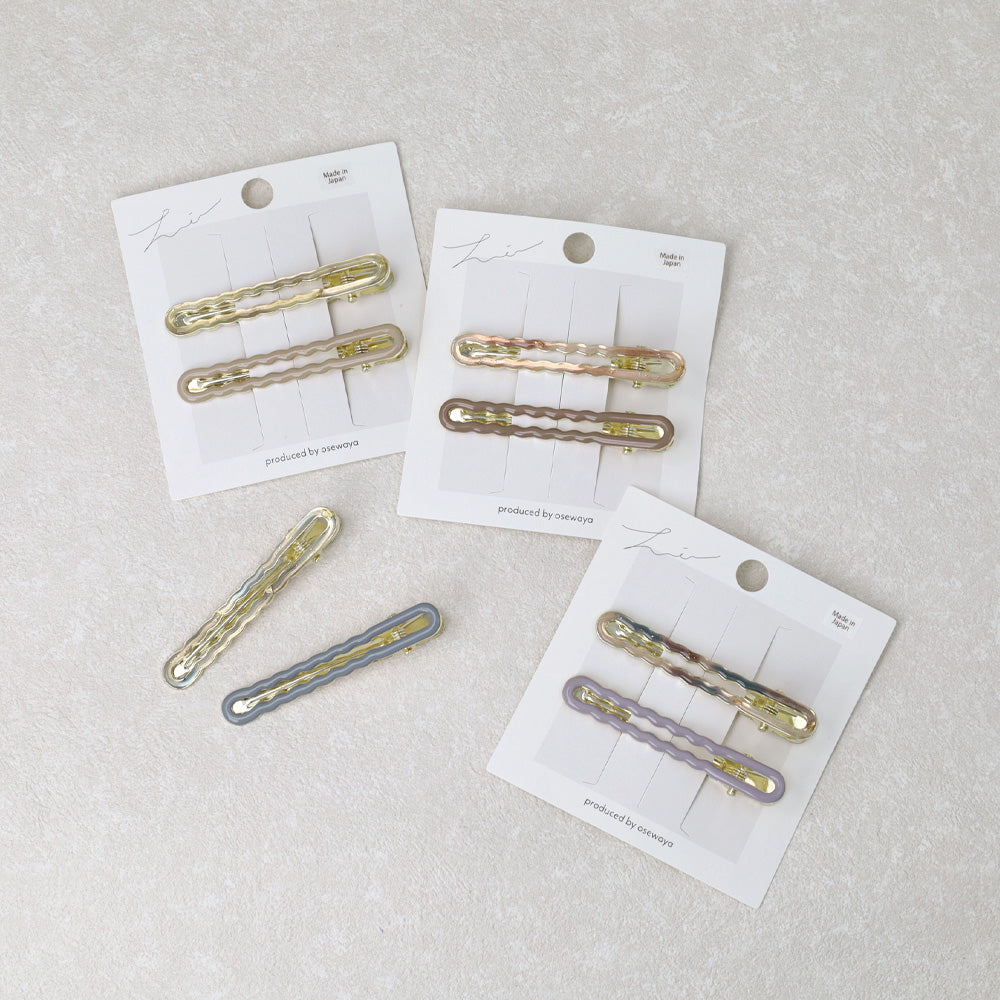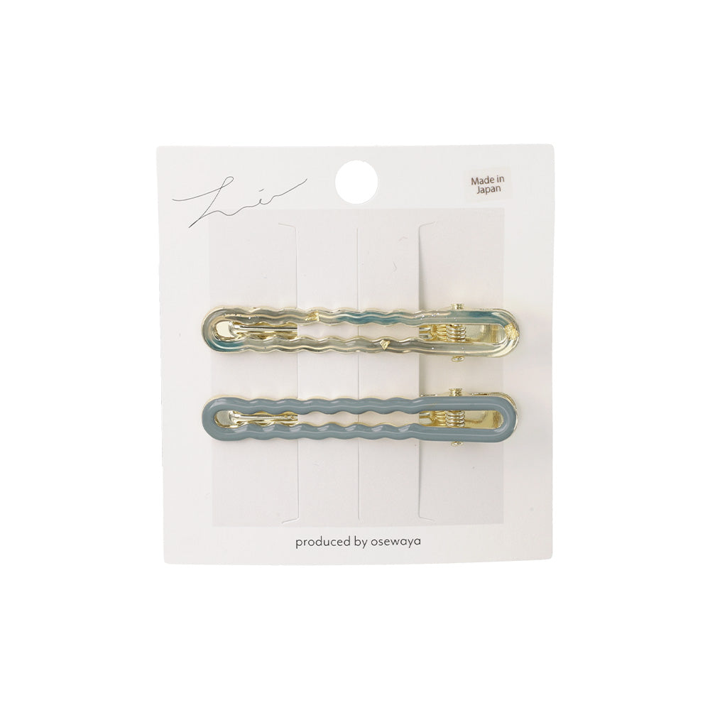 ヘアクリップ ウェーブ オーバル フレーム マーブル カラー 2個セット サイドクリップ