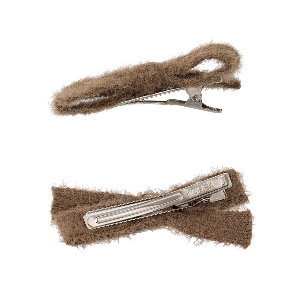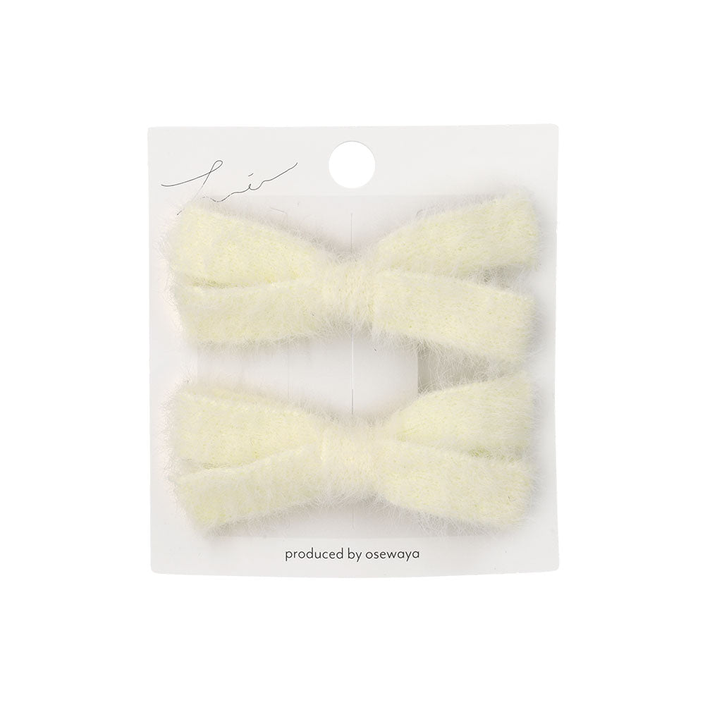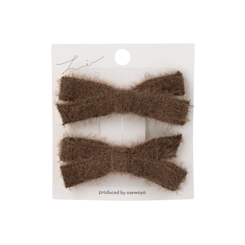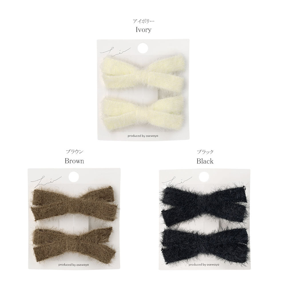 cl0391シーズンムードを盛り上げるふわふわファー素材のリボンクリップ2個セット。いつものコーディネートが簡単に秋冬仕様に。