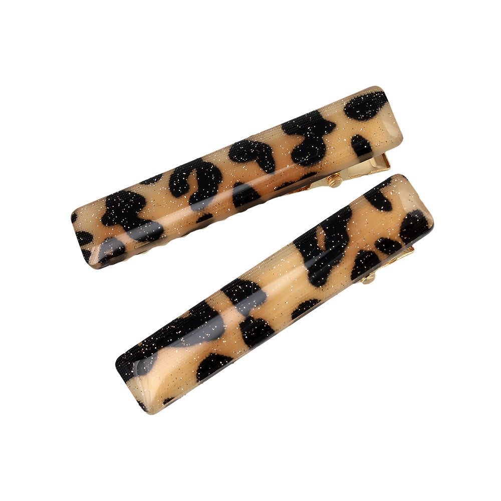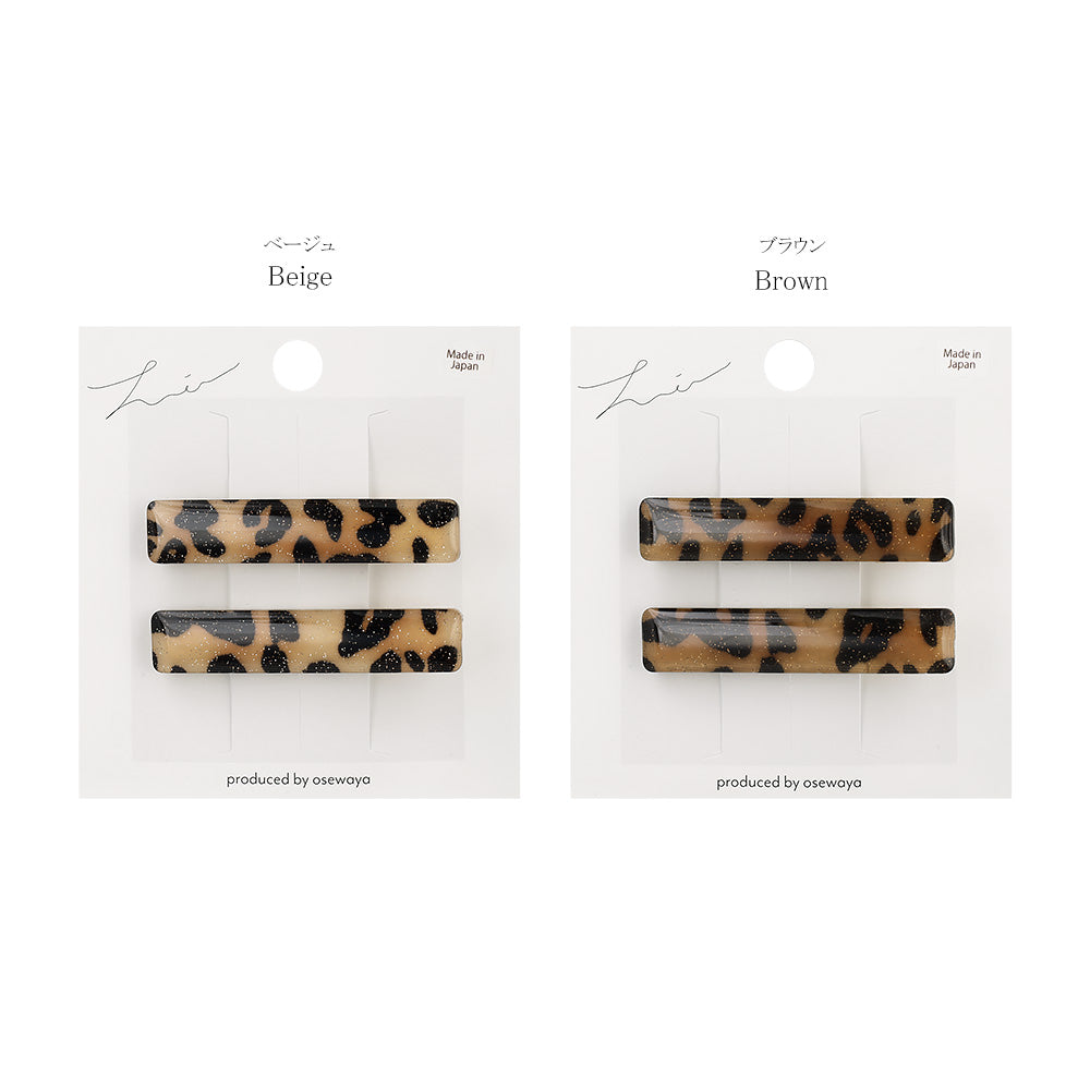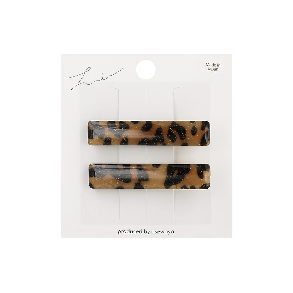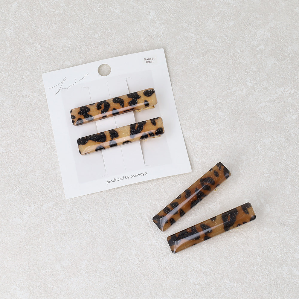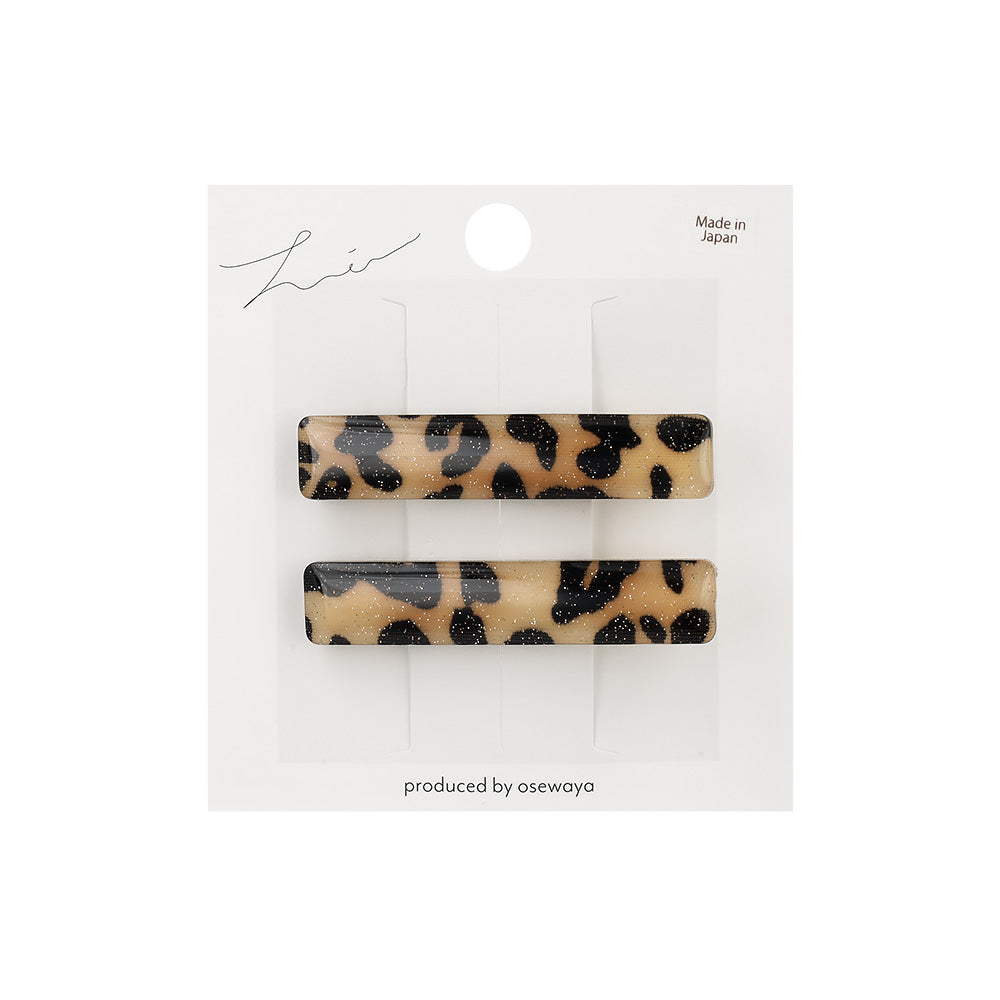 cl0393レオパード柄のヘアクリップ2個セット。重くならない透明感のあるラメ入り仕様。