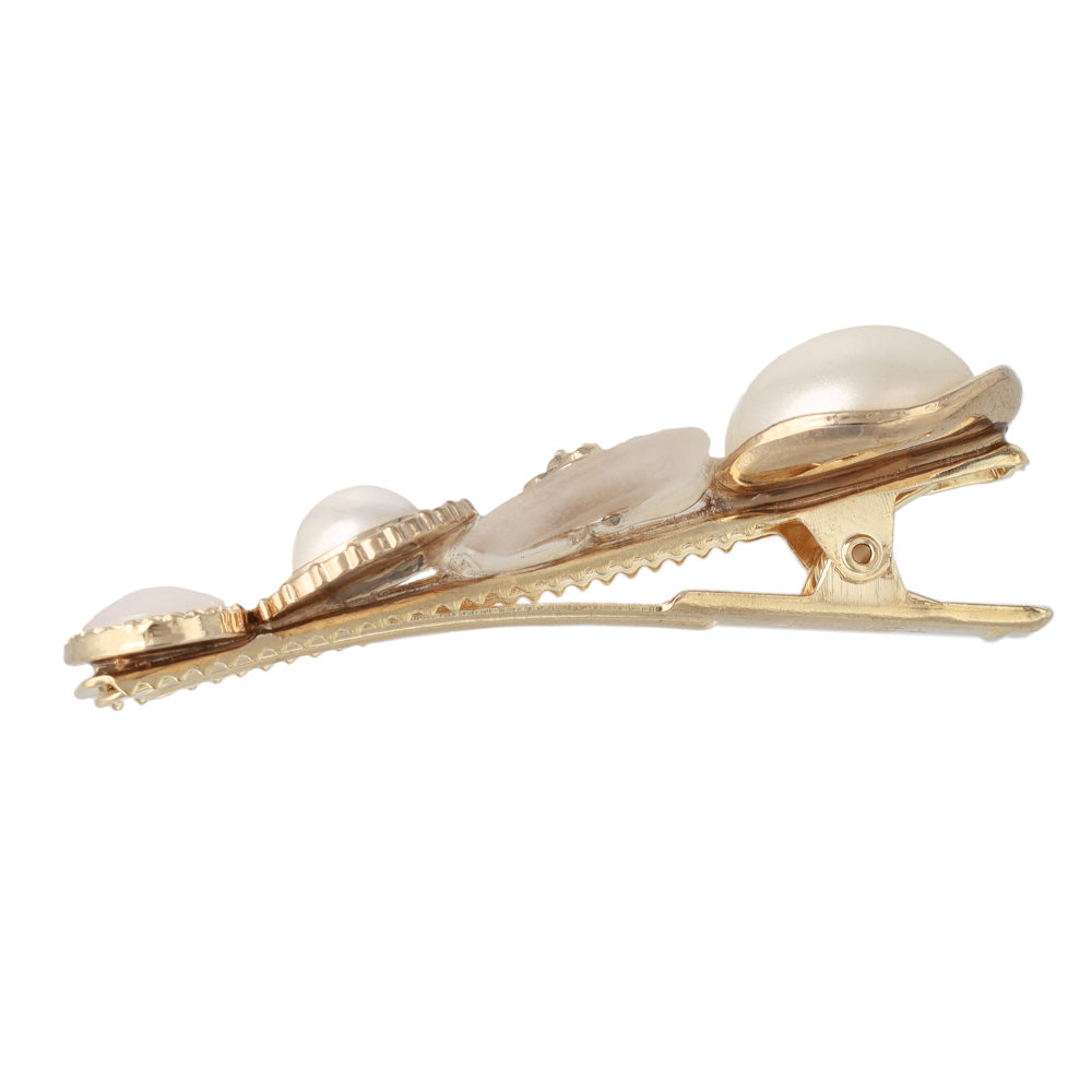 ヘアクリップ パール メタル ウェーブ ボタン フラワー