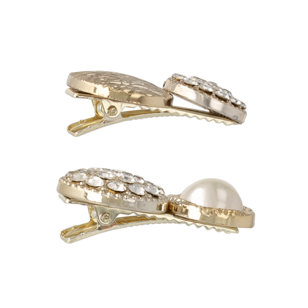 きらりと輝くストーン&パールのミニクリップ2個セットです。