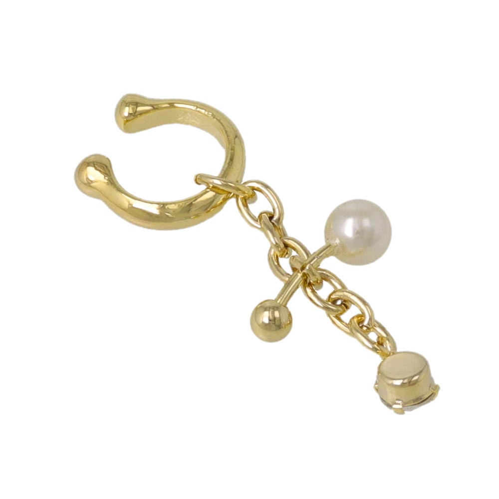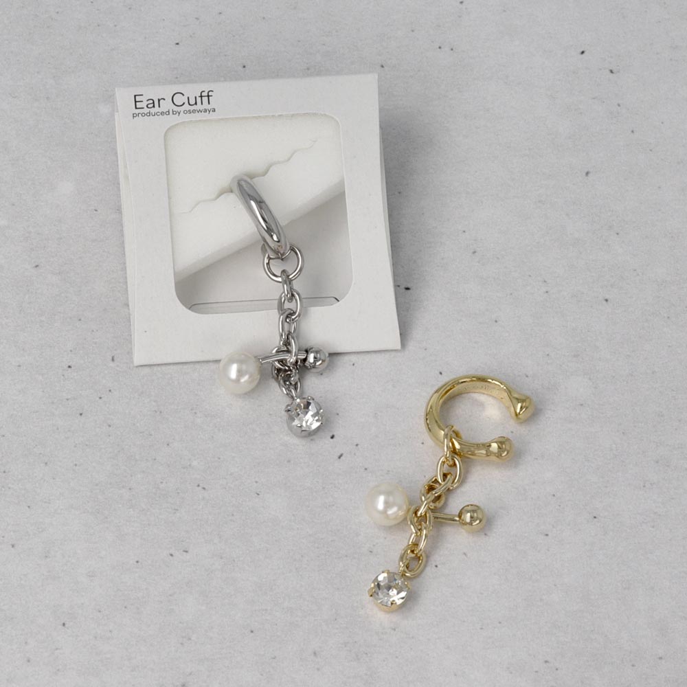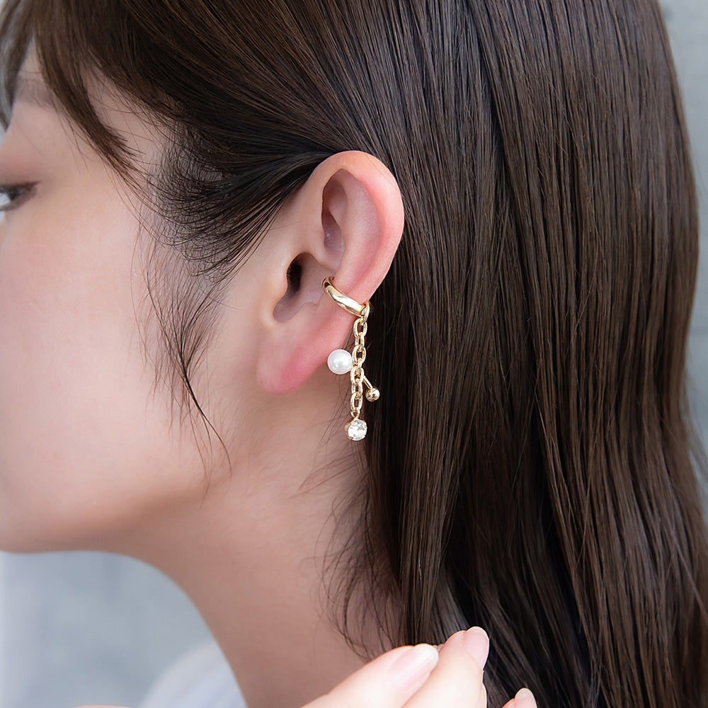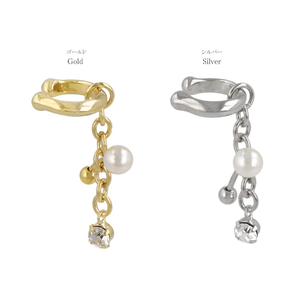 イヤーカフ ニッケルフリー メタル ボール パール ストーン チェーン イヤリング 【片耳用】