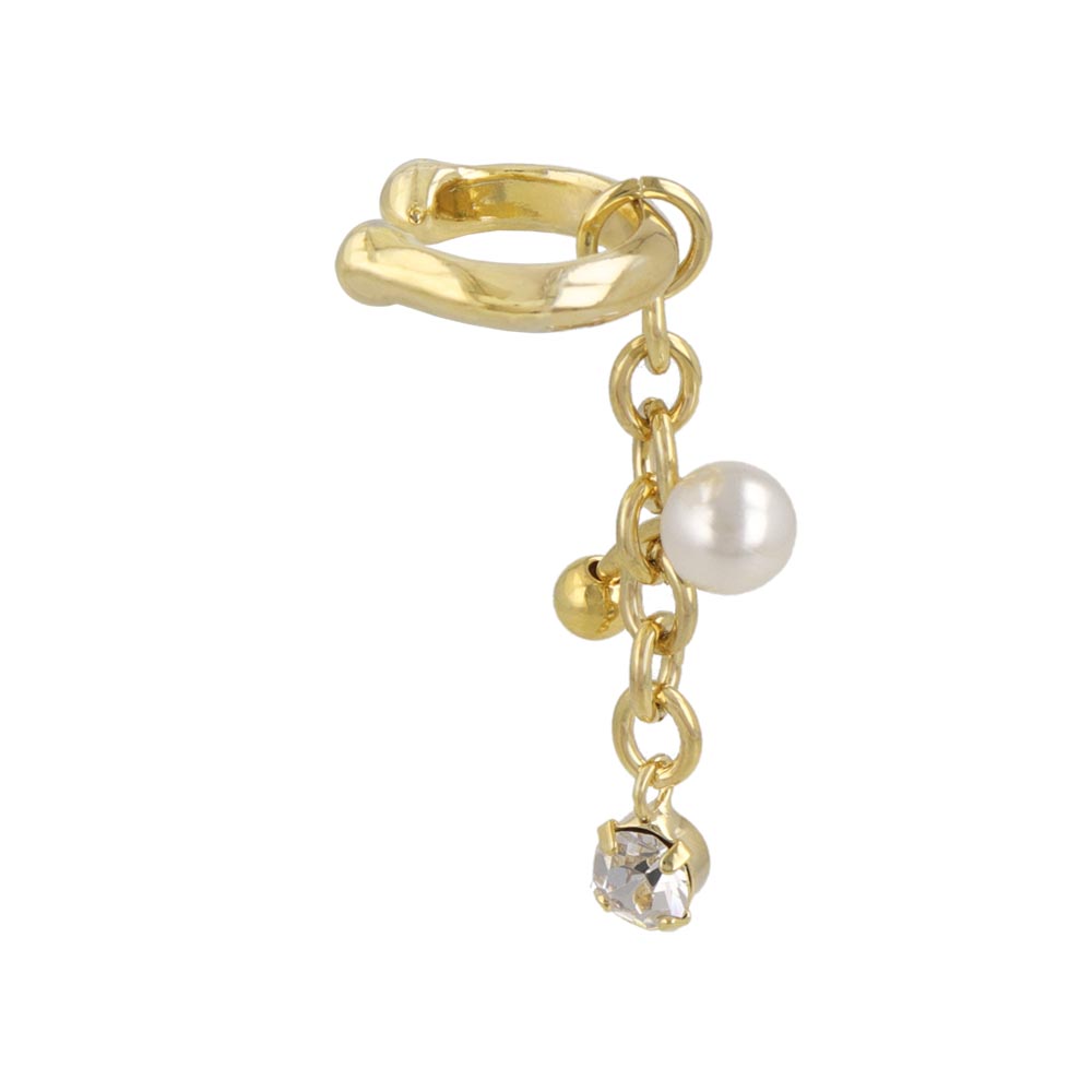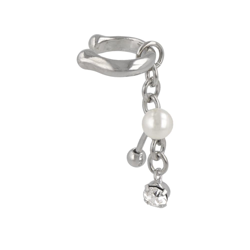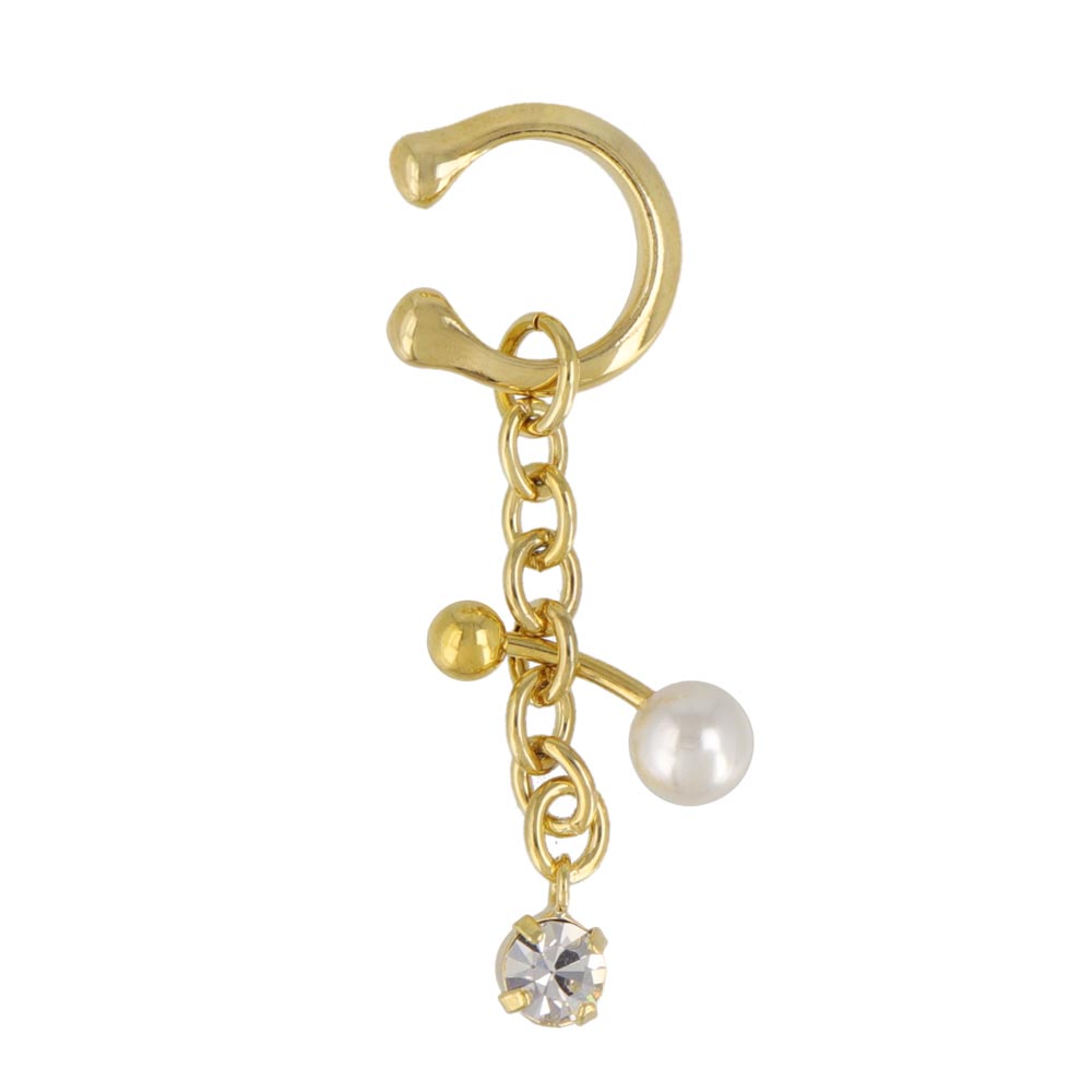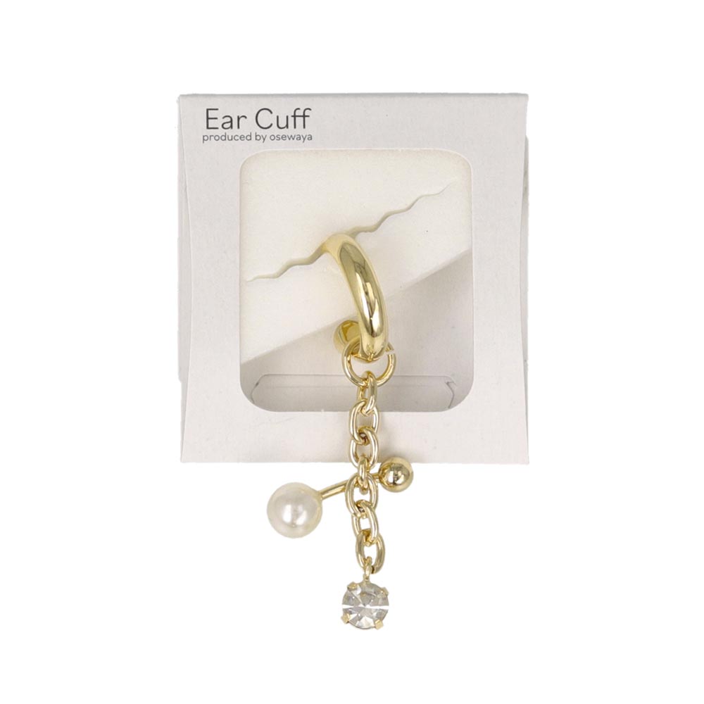 イヤーカフ ニッケルフリー メタル ボール パール ストーン チェーン イヤリング 【片耳用】