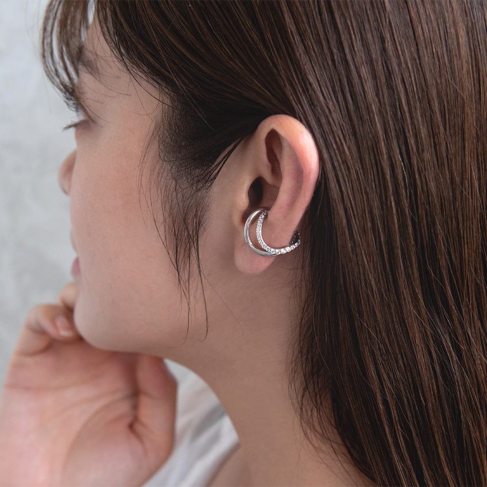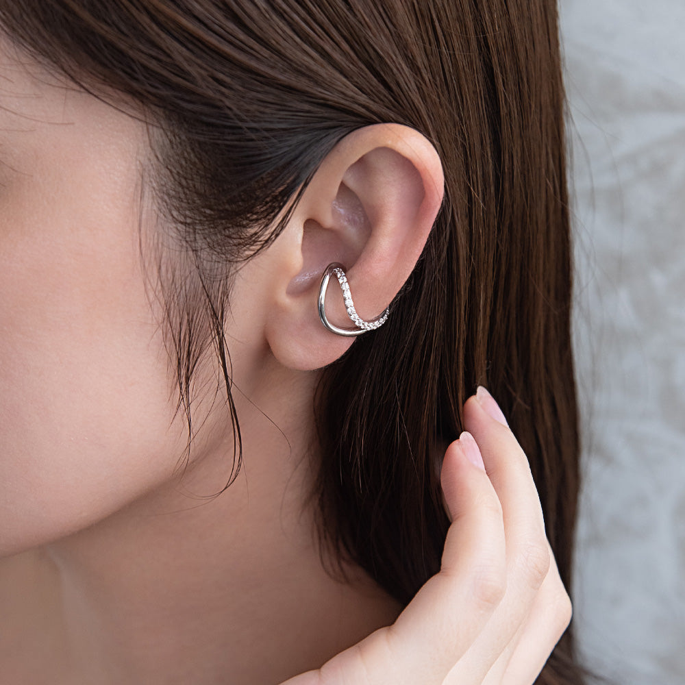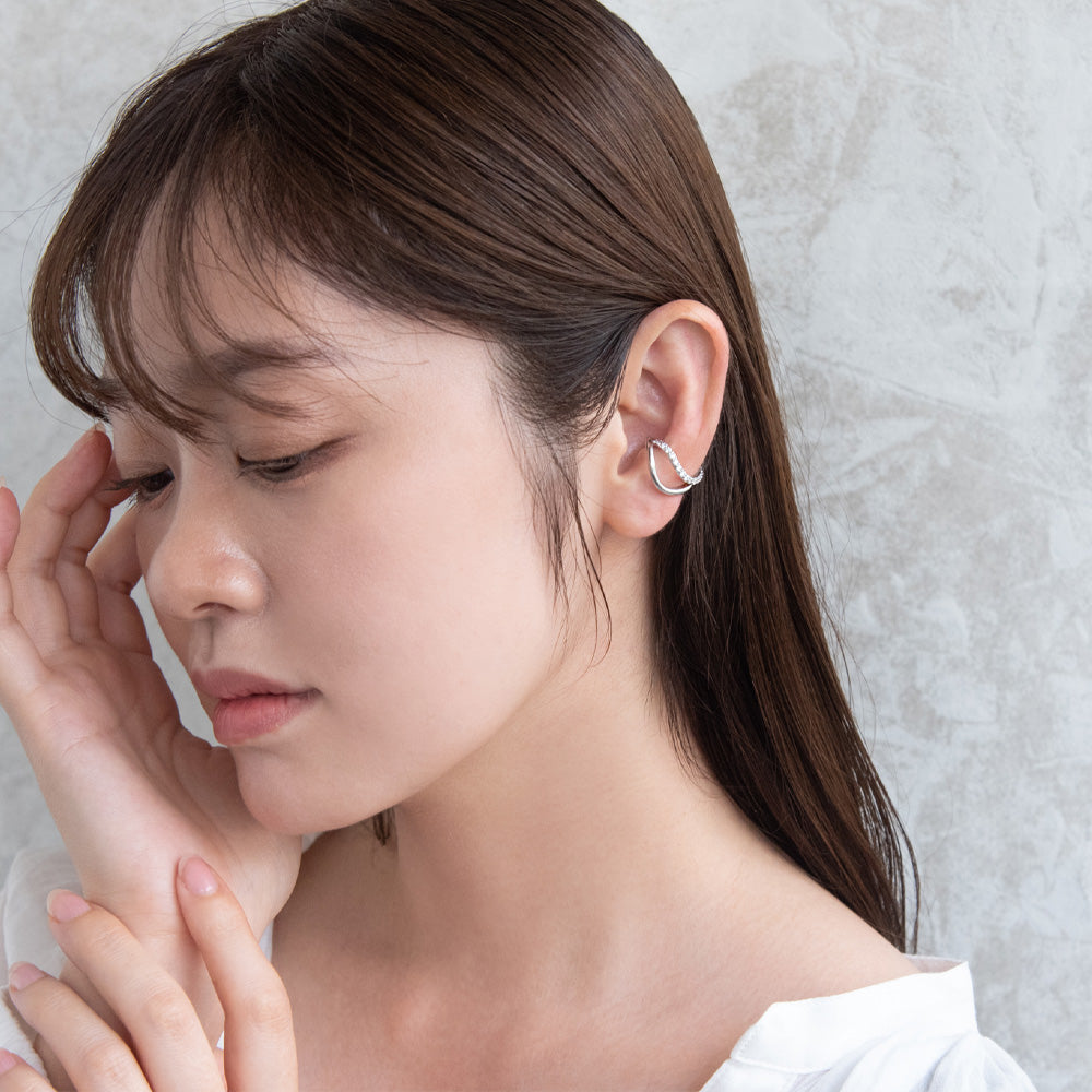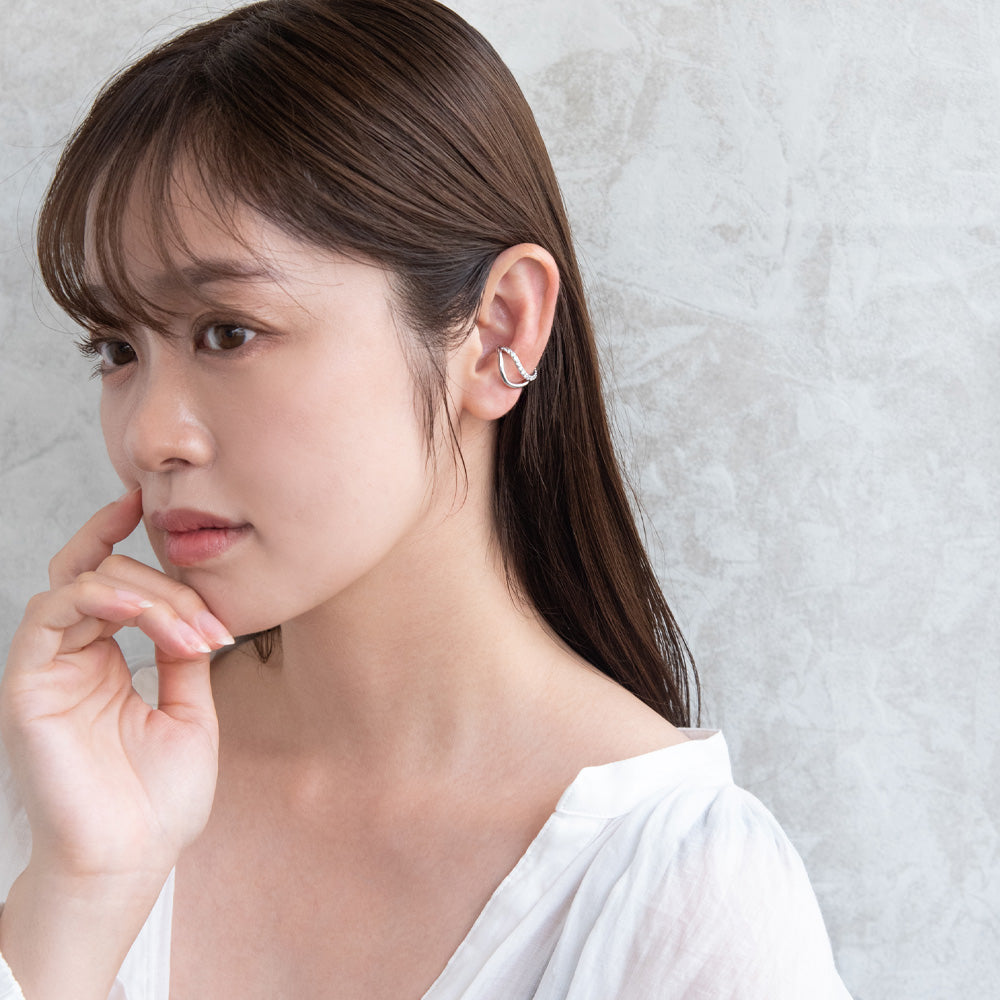 ec0241輝きに品格のあるキュービックジルコニアが煌めく、幅広いコーデに合う一軍イヤーカフ。オールシーズン使える優れ物◎