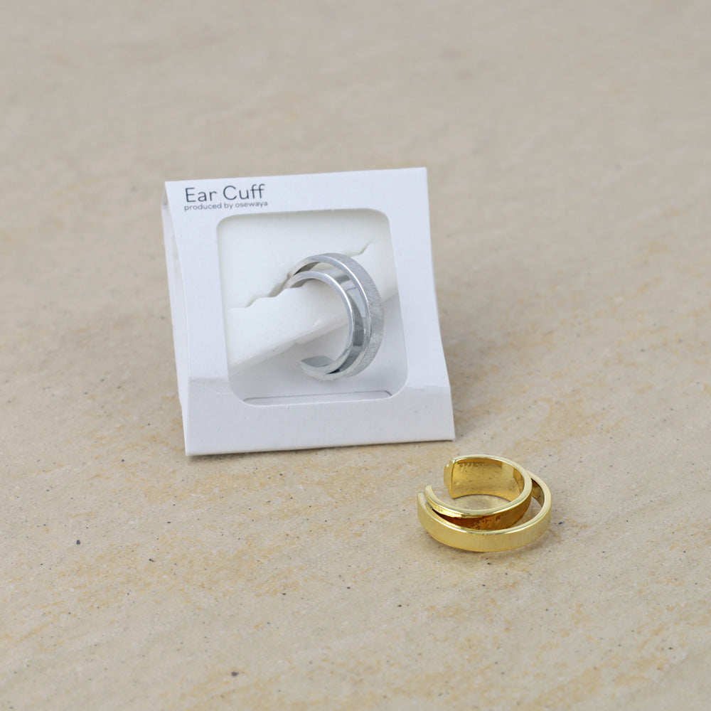 ec0245耳元にそっと寄り添う、真鍮製の2連風イヤーカフ。シンプルだからこそ、どんなスタイルにもなじみやすく、毎日のコーディネートをワンランクアップさせてくれます。気兼ねなくおしゃれを楽しみたいあなたにぴったりのアイテムです。