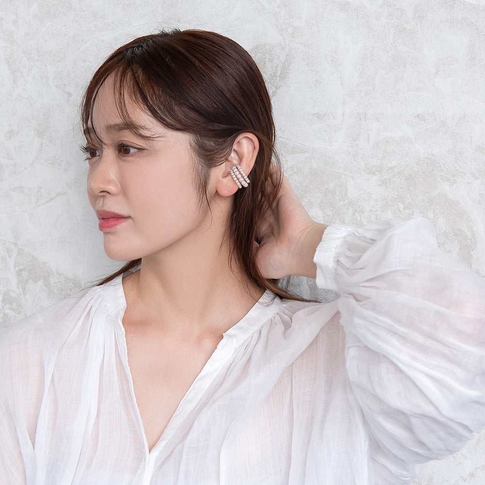 耳元にさりげなく輝きをプラスする、パールのイヤーカフ。程よいボリューム感と抜け感のあるデザインで、カジュアルなスタイルにも◎ピアスホールがなくても簡単に装着できるので、毎日のコーディネートに気軽に取り入れられます。