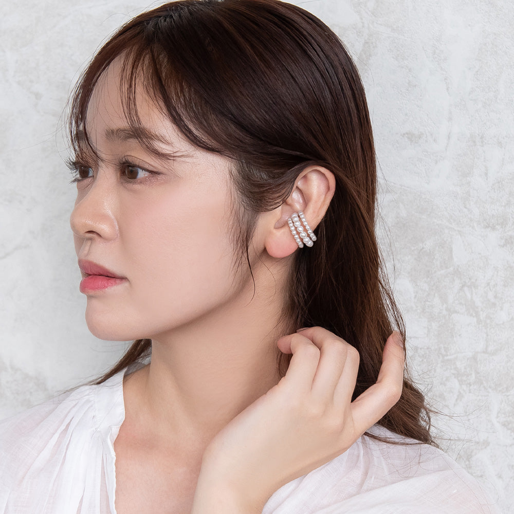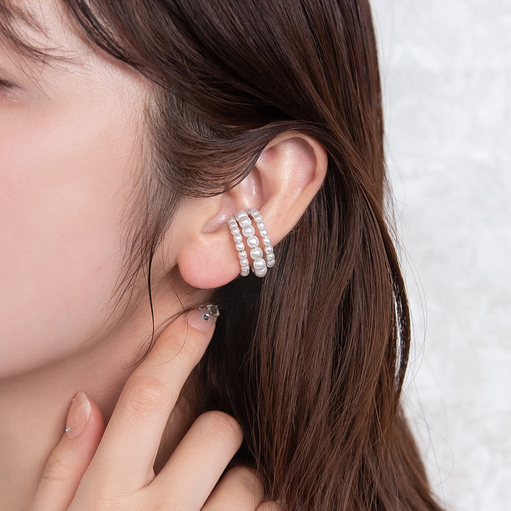 イヤーカフ ニッケルフリー パール トリプル ライン イヤリング 【片耳用】