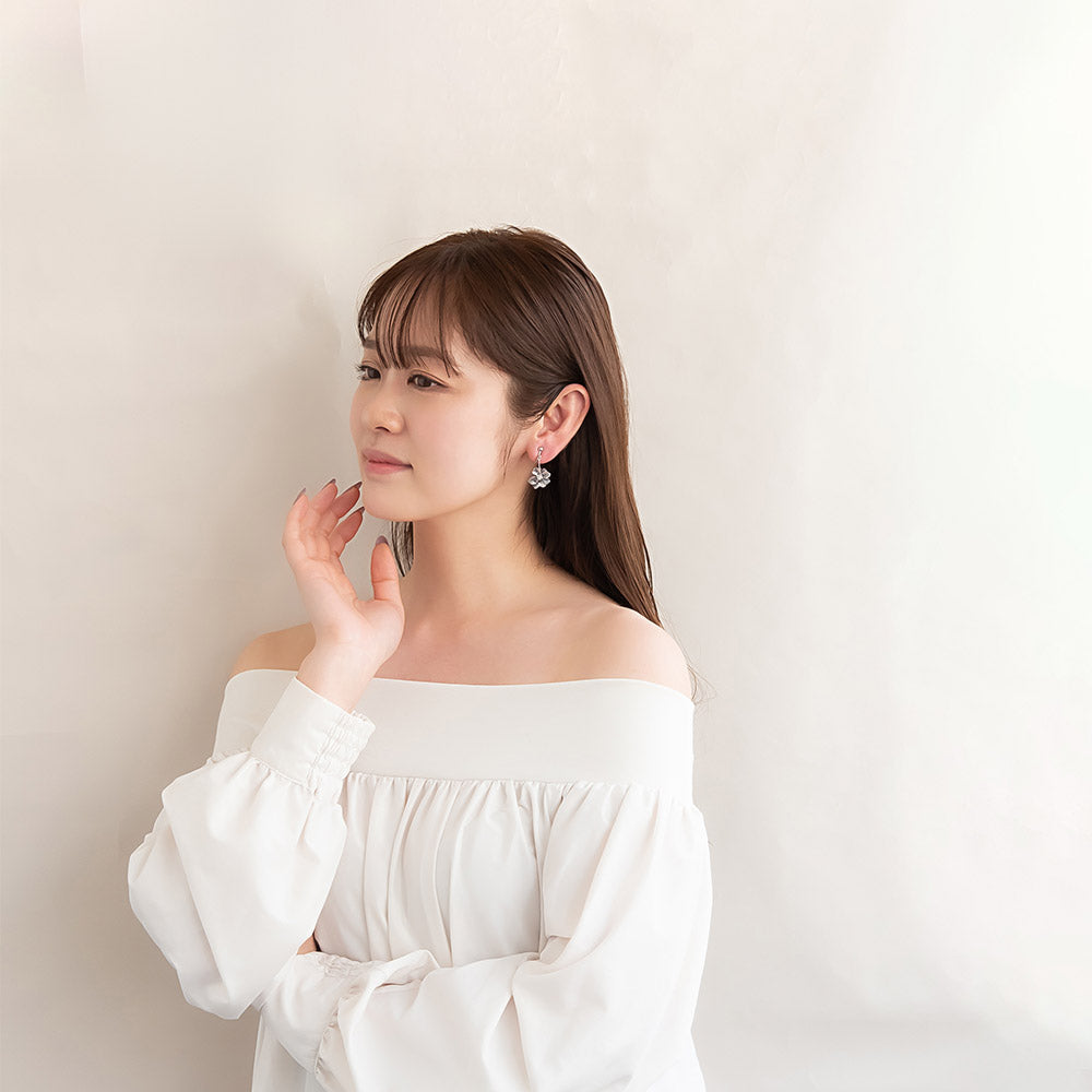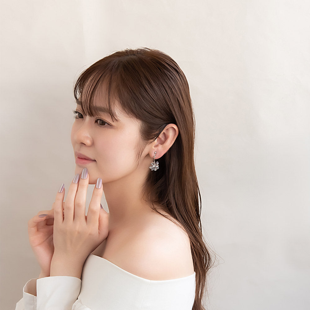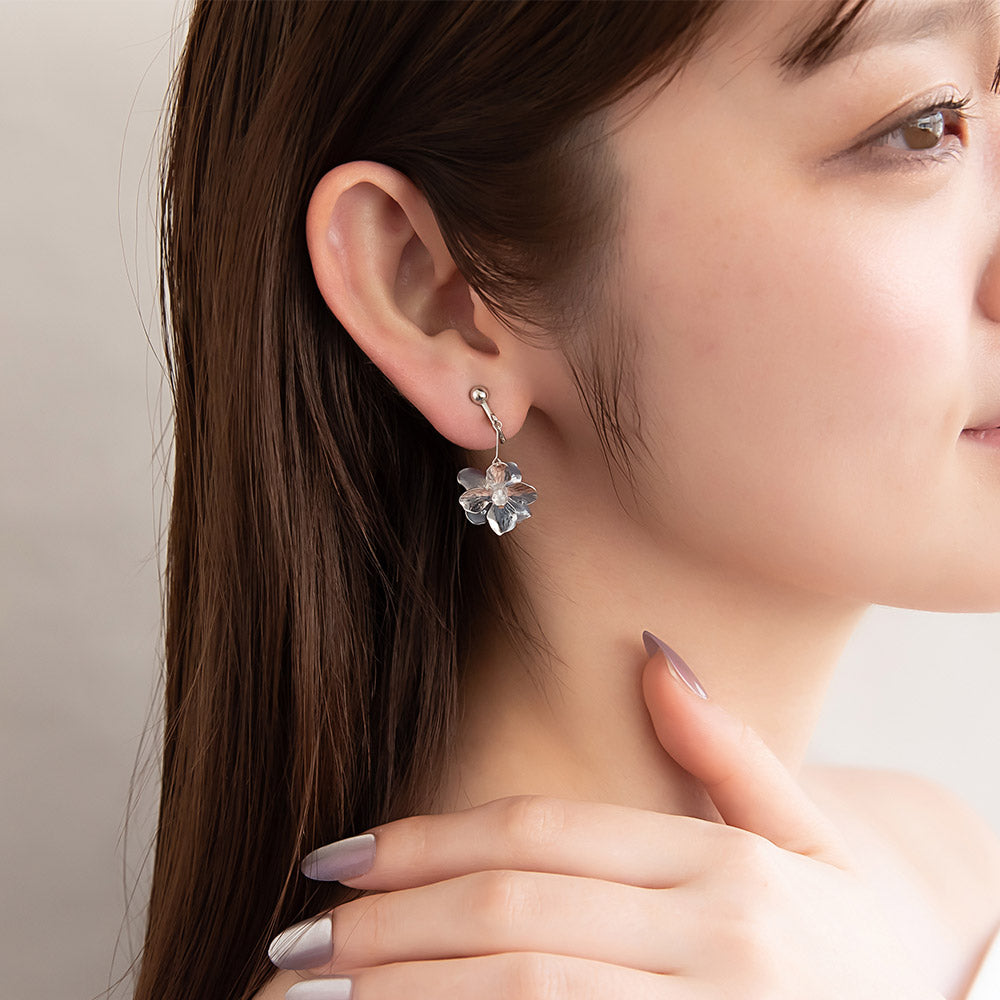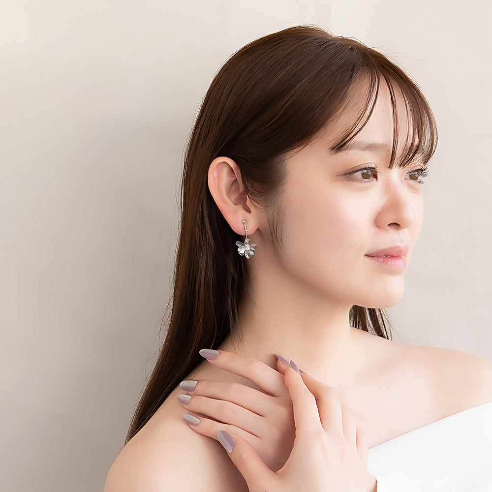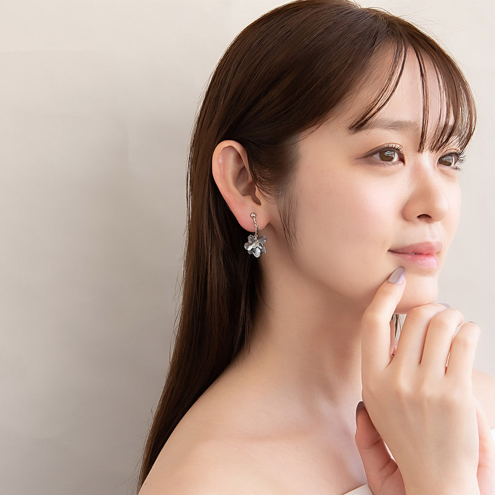 er1042”ゆれる”の動作が美しさを引き立たせる、お花のイヤリング。着けるだけでぱっと華やぐ、上品で愛らしいフラワーデザイン。ちらっと見えるインナーカラーが可愛く魅力的。