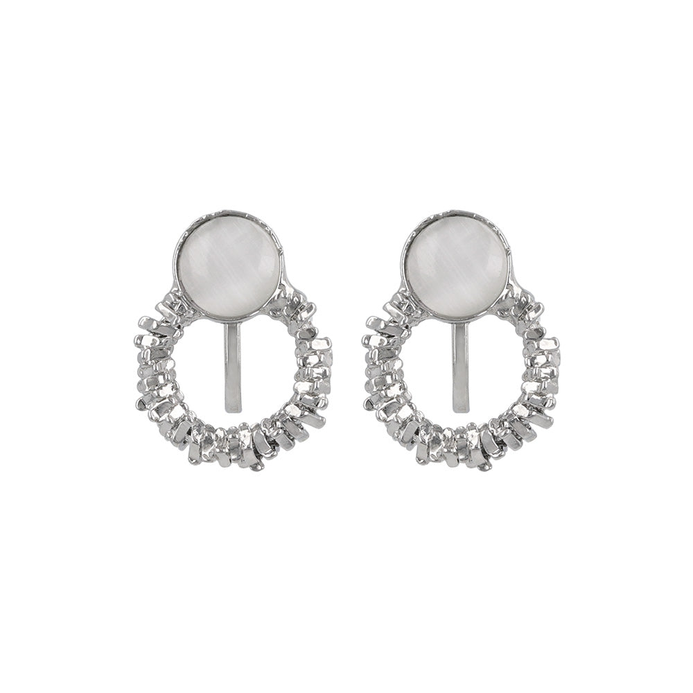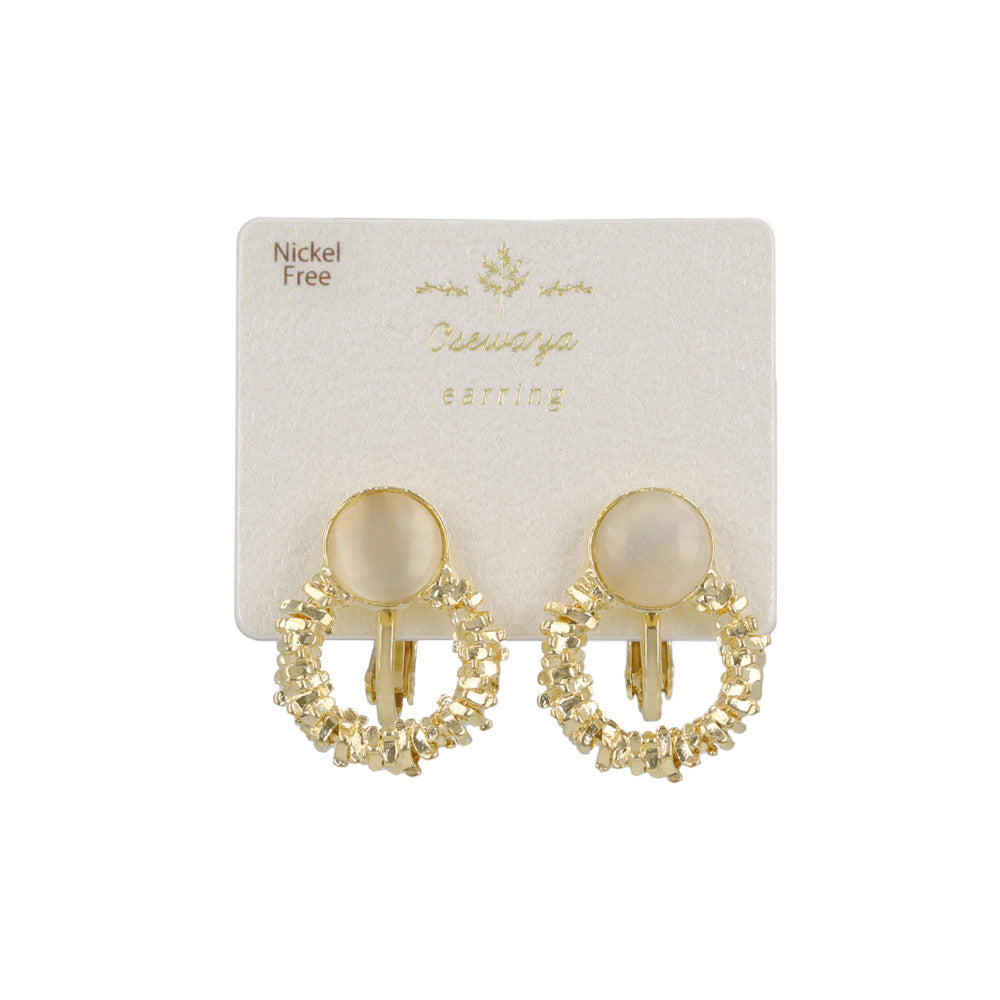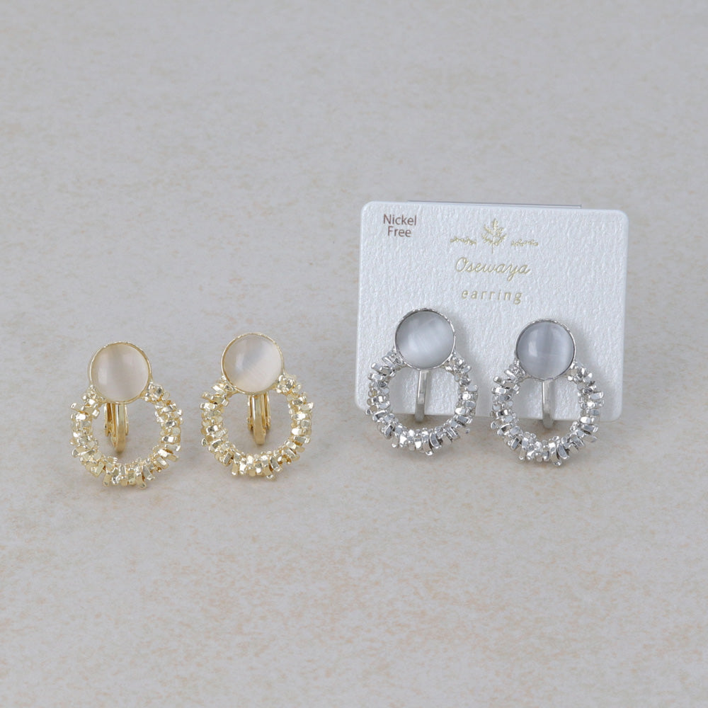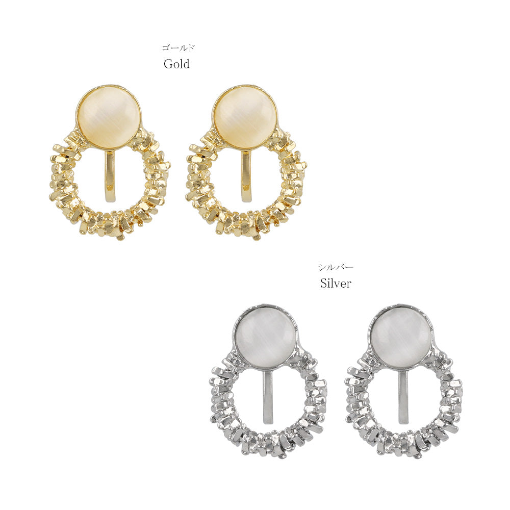 イヤリング ニッケルフリー メタル 合成キャッツアイ サークル ネジバネ式イヤリング