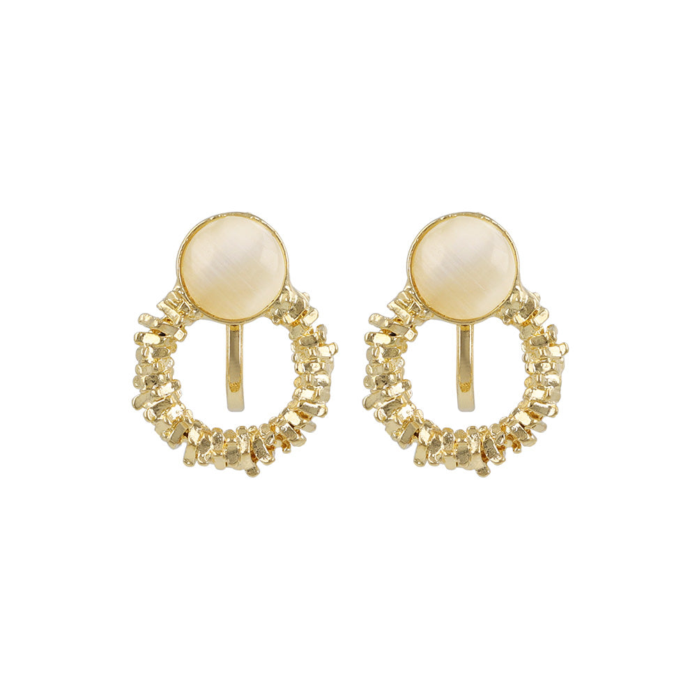 er1069艶やかなメタルと合成キャッツアイが上品なイヤリング。