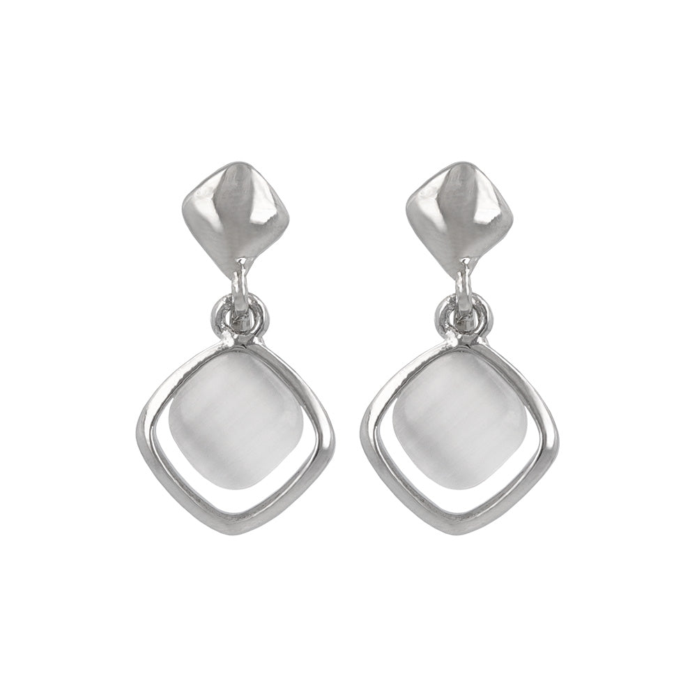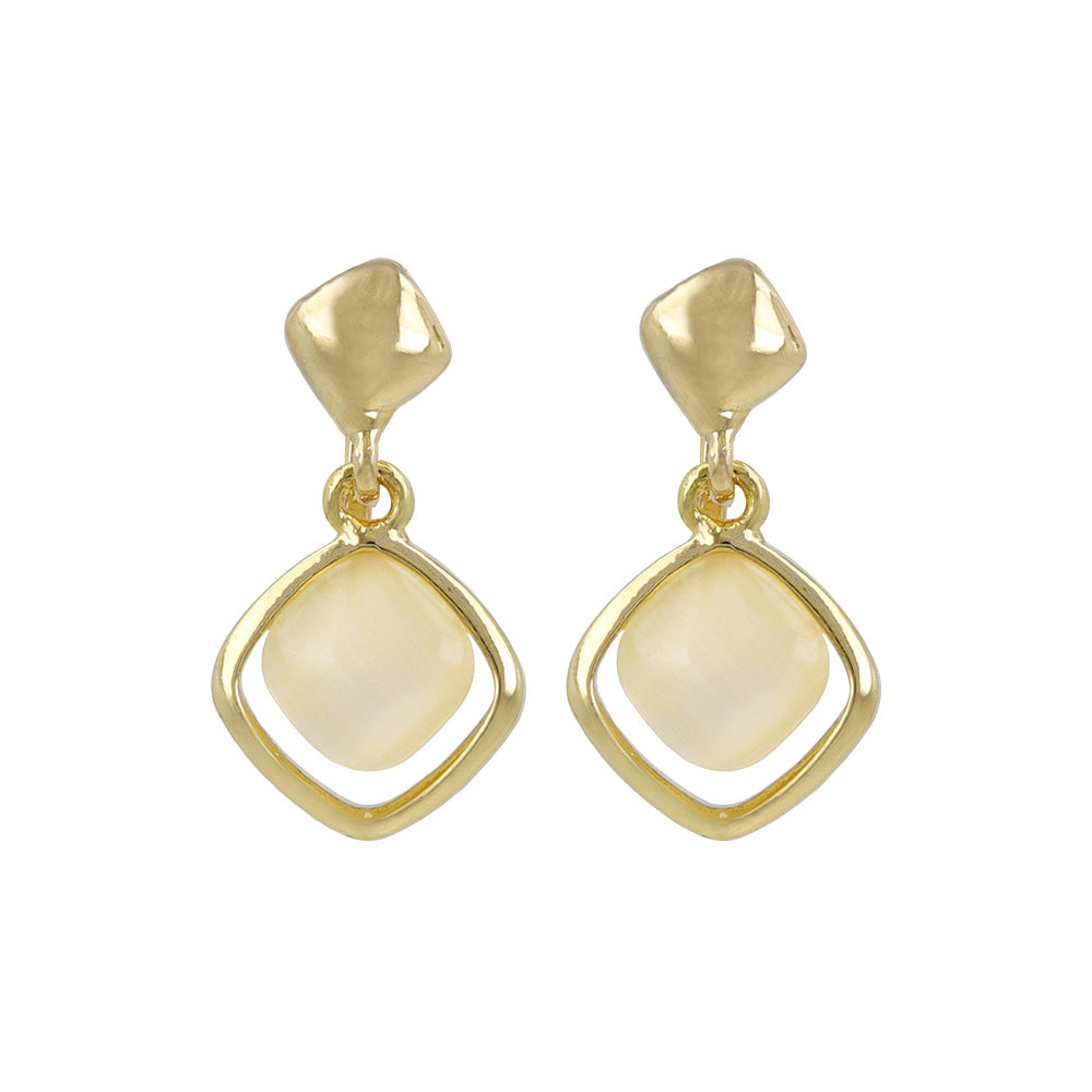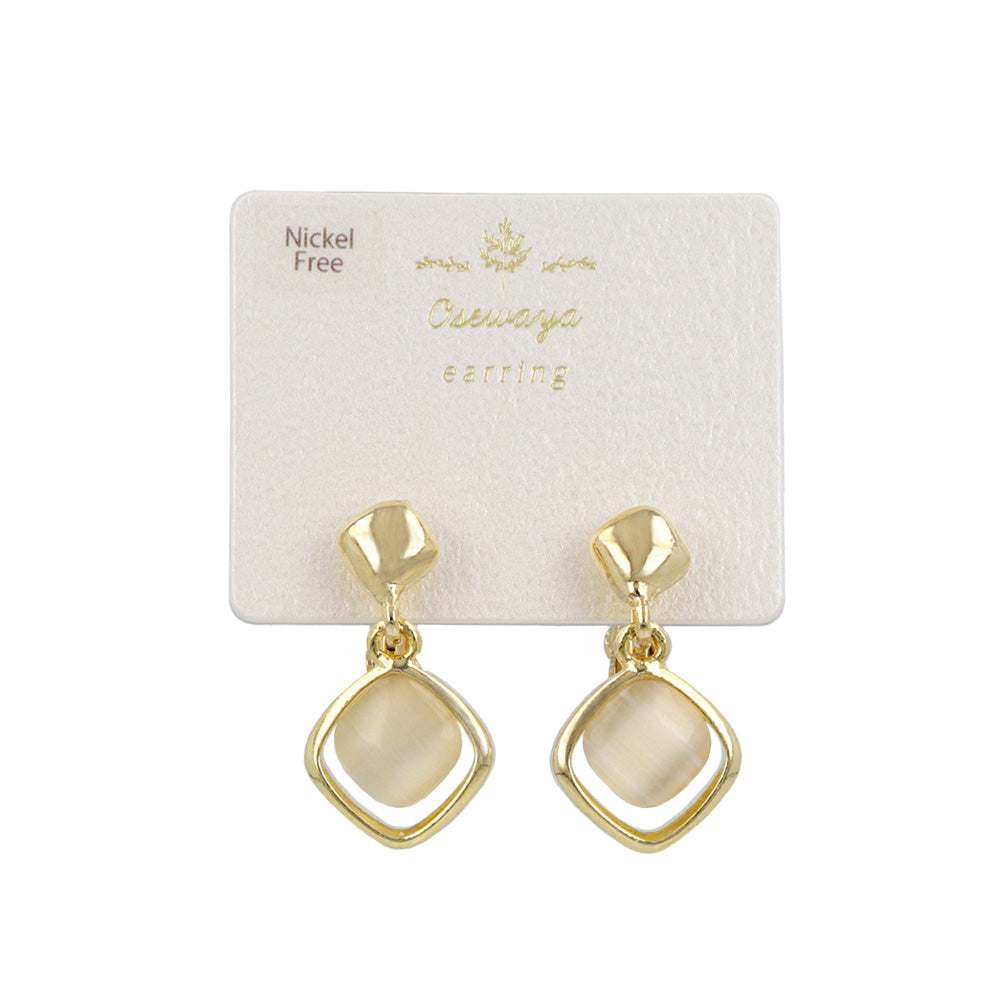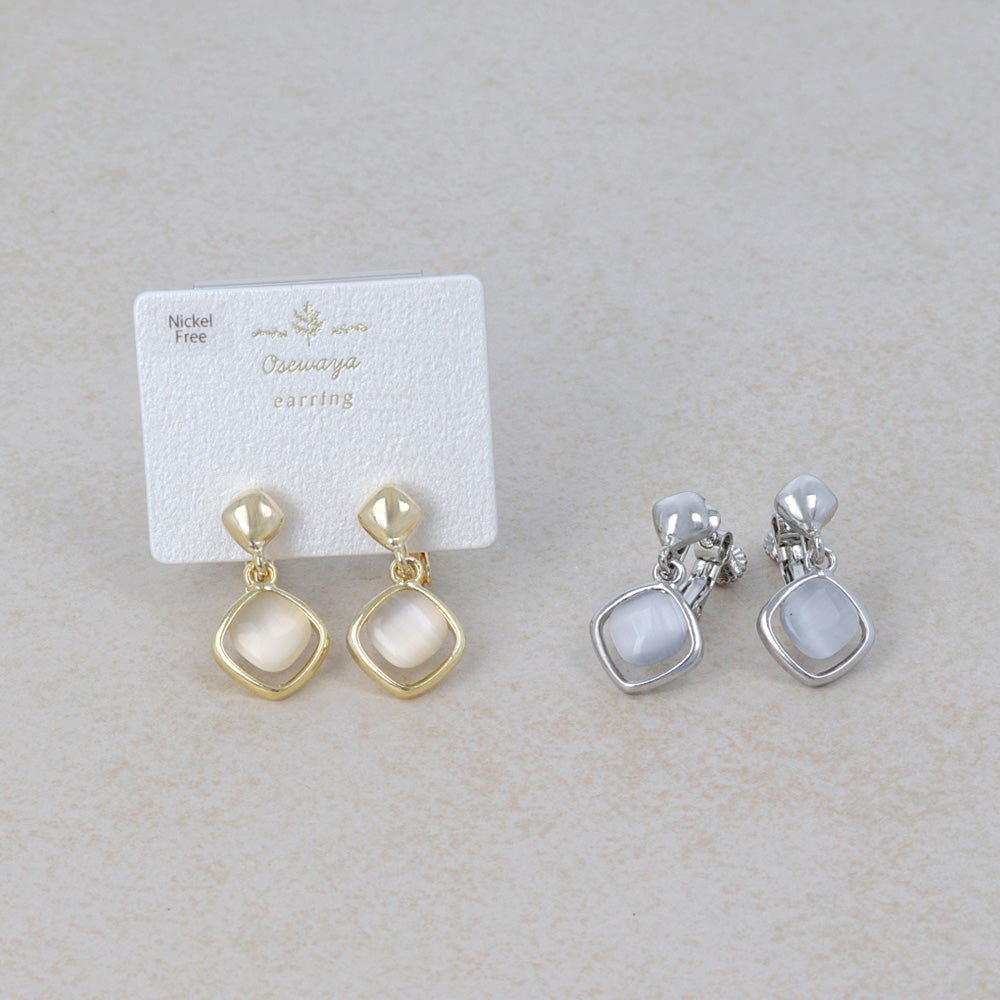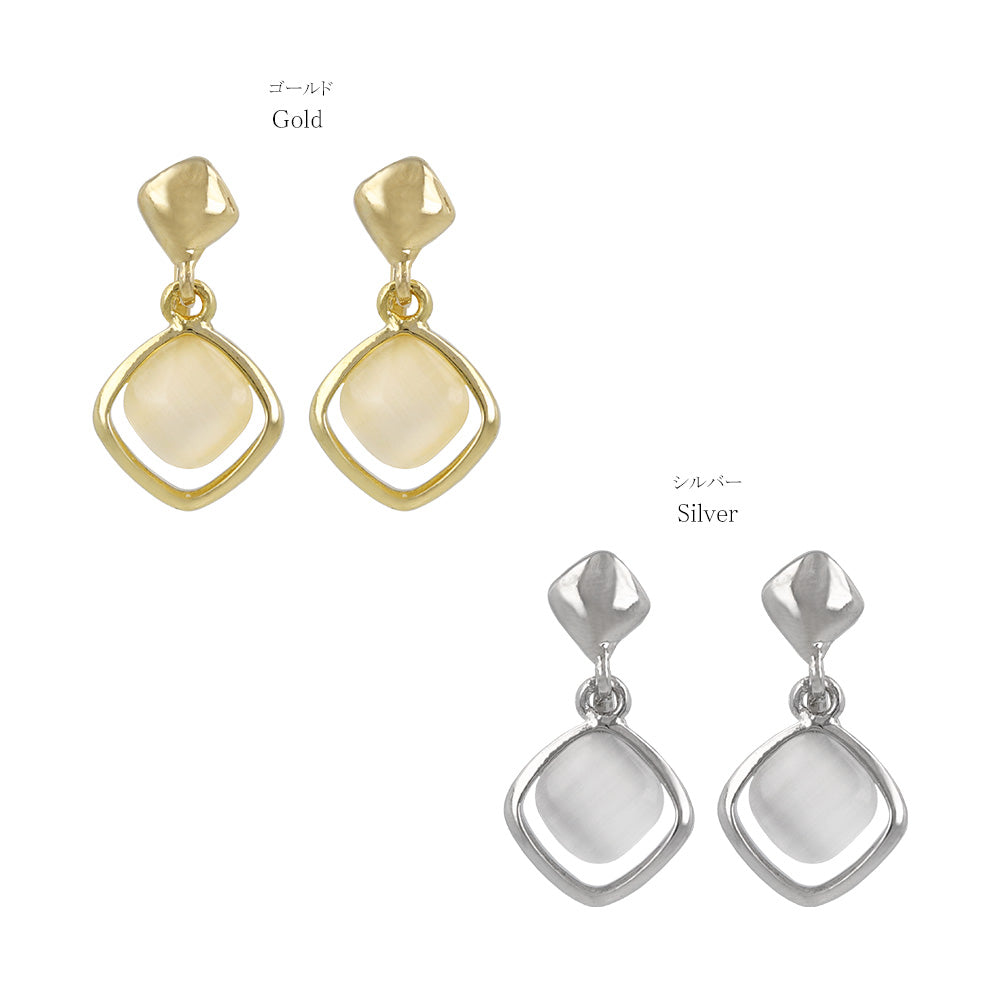 イヤリング ニッケルフリー メタル 合成キャッツアイ スクエア ネジバネ式イヤリング