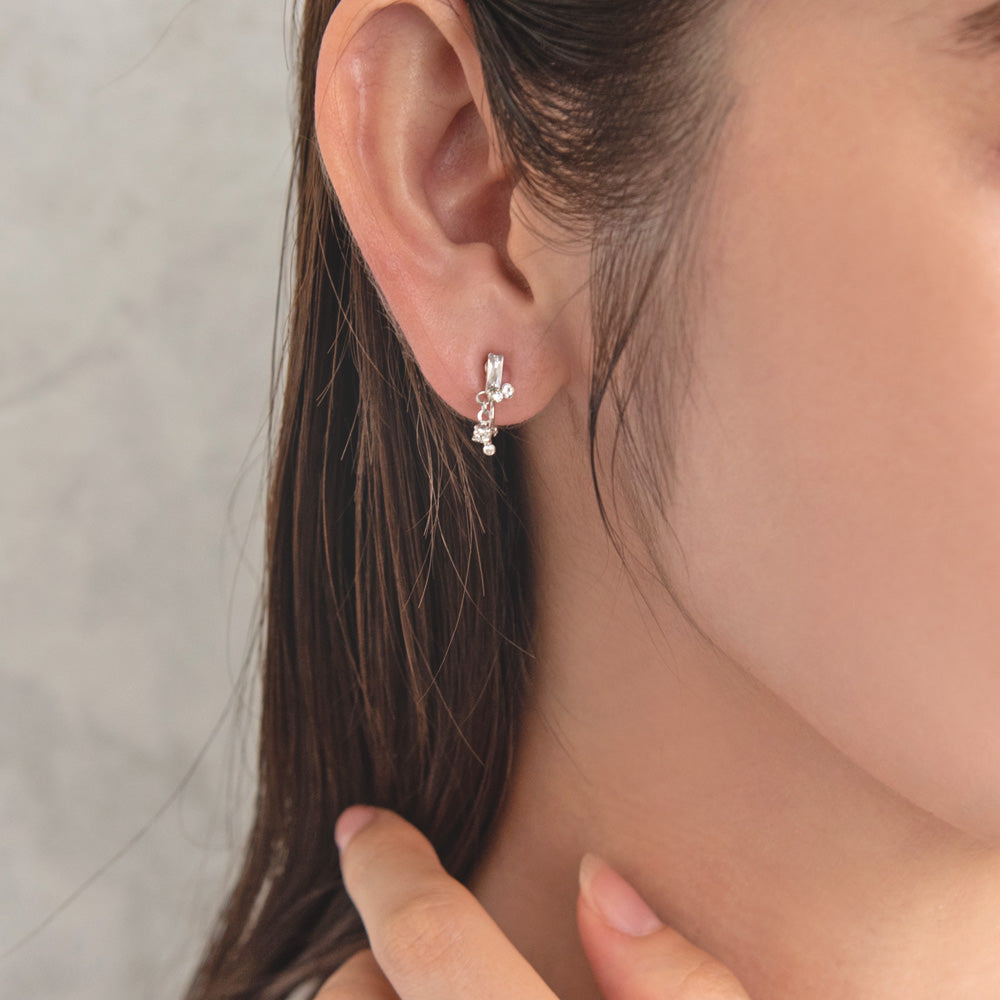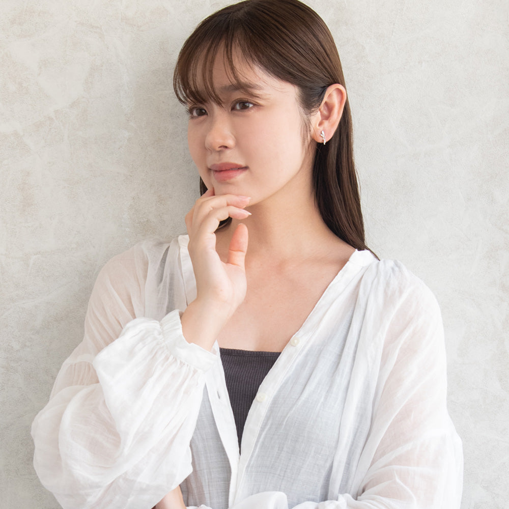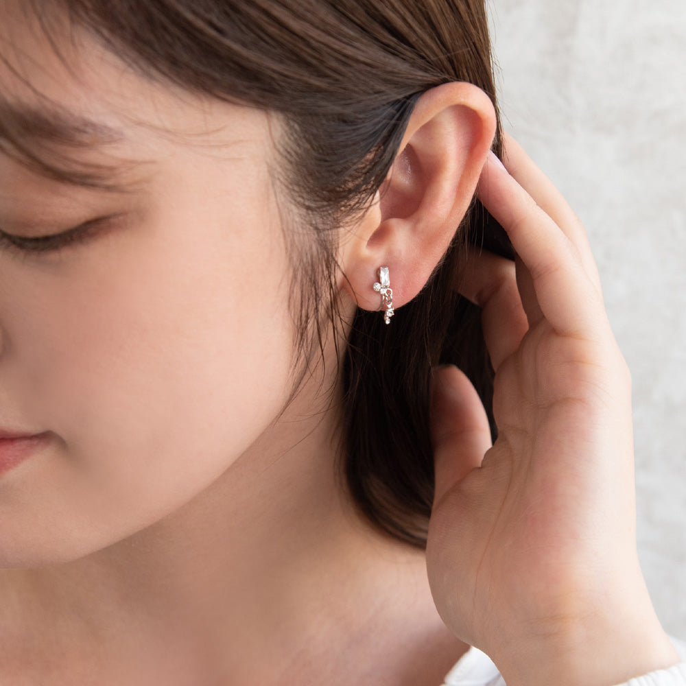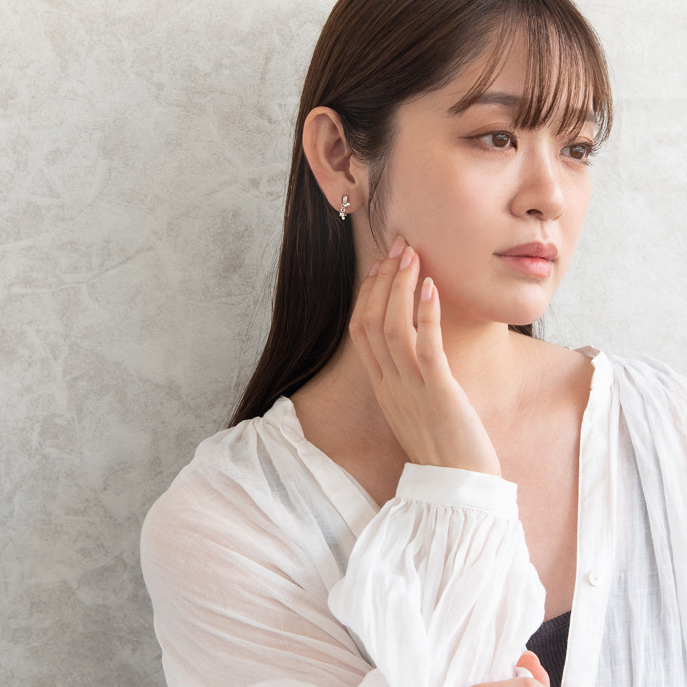 er1079耳元でさりげなく輝く小ぶりで上品なデザイン、コーデの質を上げるきれいめイヤリング。デイリー使いしやすい華奢めなデザインは、落ち着きのある上品な印象で幅広いスタイリングによく合います。目立ちにくくスッキリとした、お肌に優しい華奢な金具を使用したイヤリングです。