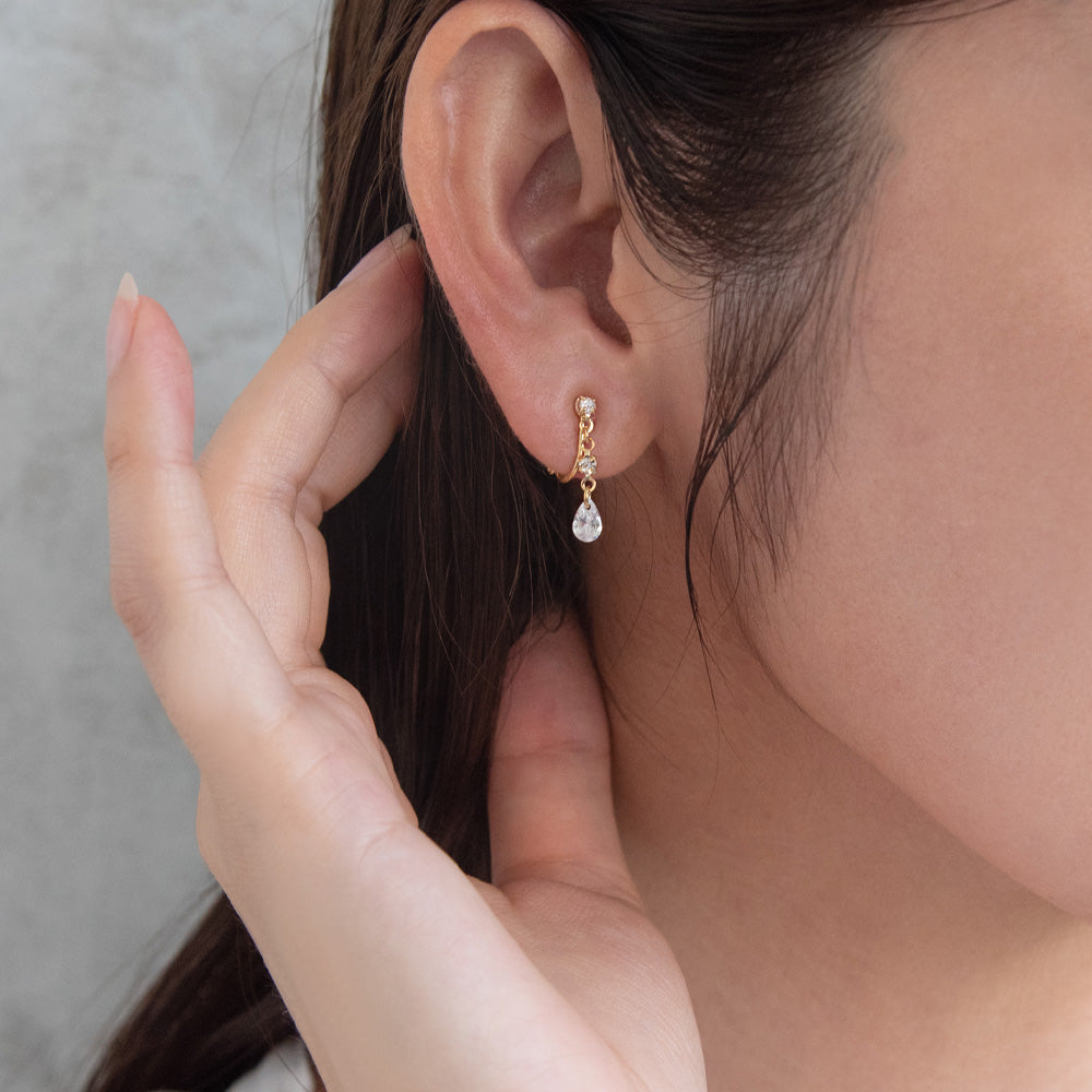イヤリング ニッケルフリー メタル キュービックジルコニア ミニ ストーン ドロップ 下がり ネジバネ式イヤリング
