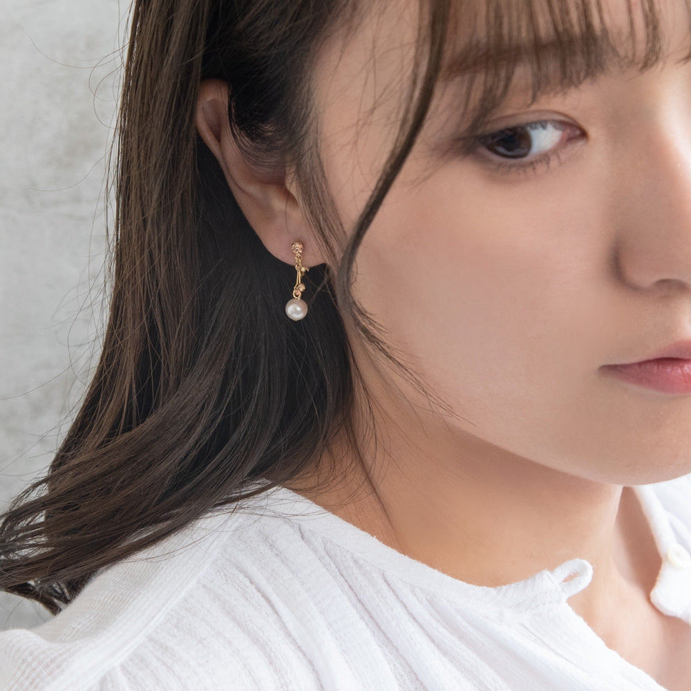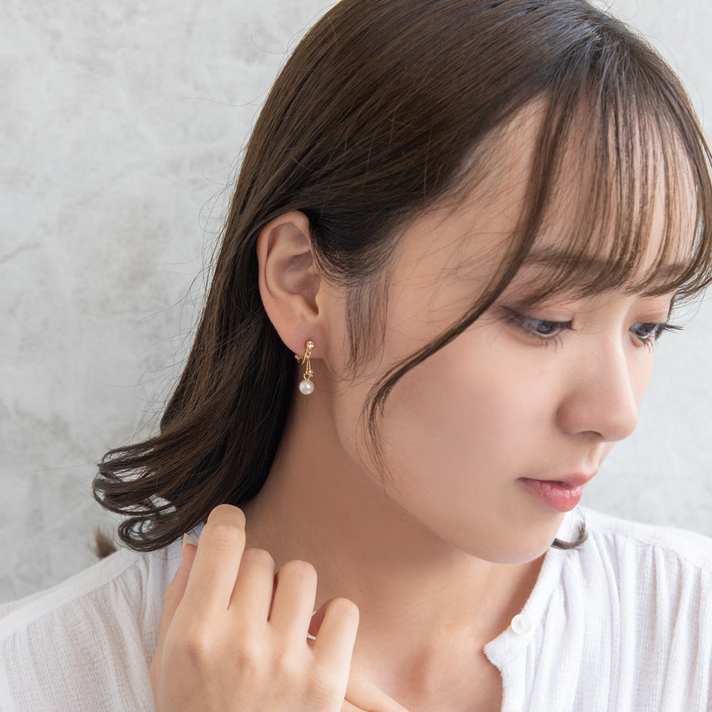 イヤリング ニッケルフリー メタル ミニ カラーストーン パール 下がり ネジバネ式イヤリング