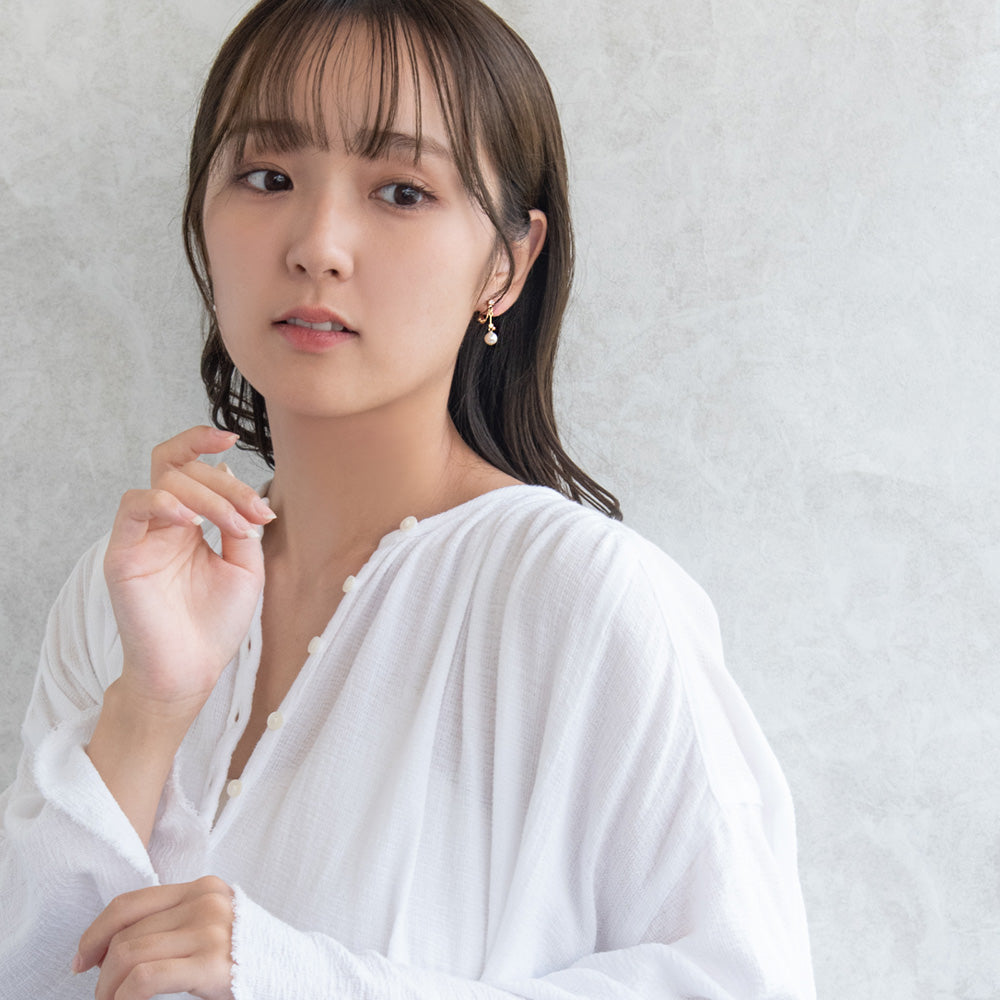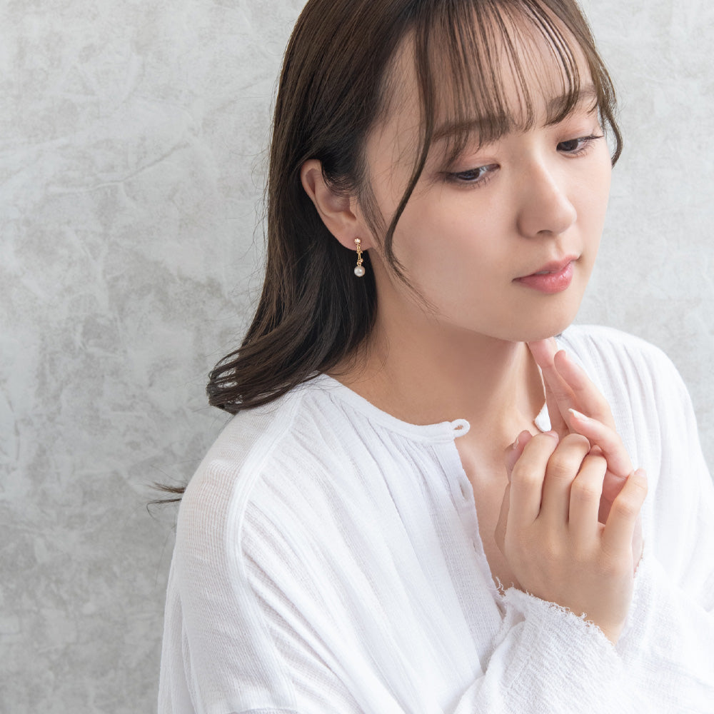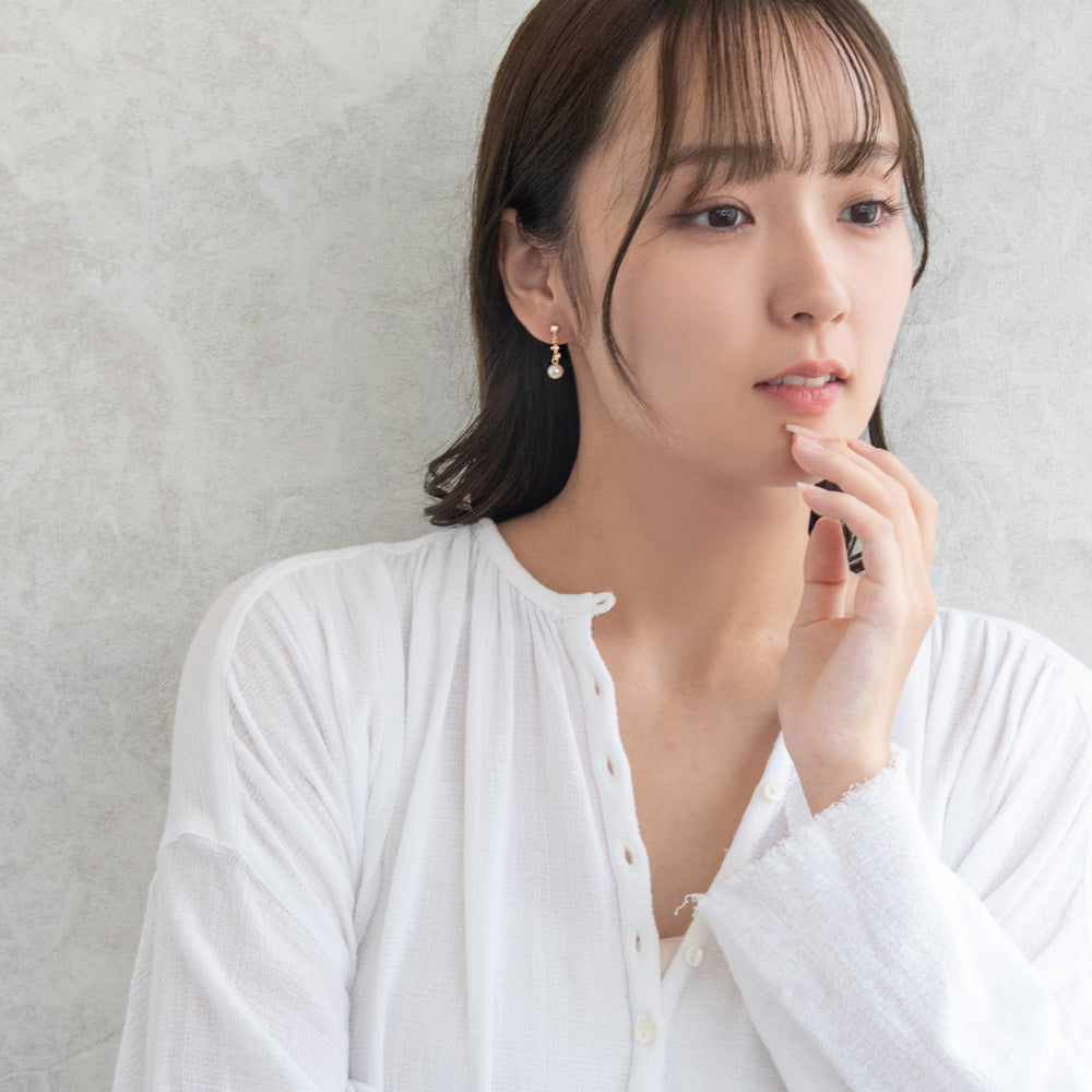 er1087さりげなく上品に、きらりと輝くカラーストーンのイヤリング。コーディネートに少しカラーをプラスしたいときにもおすすめのアイテムです。目立ちにくくスッキリとした、お肌に優しい華奢な金具を使用したイヤリングです。
