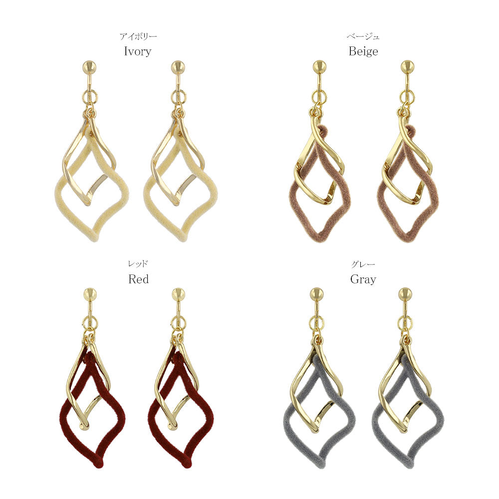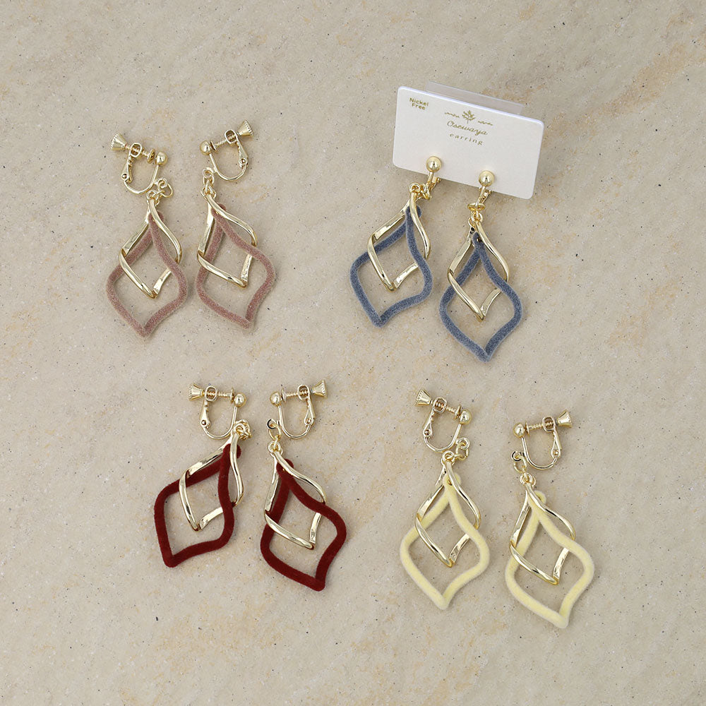 イヤリング ニッケルフリー メタル フロッキー カラー ツイスト ロンバス ネジバネ式イヤリング