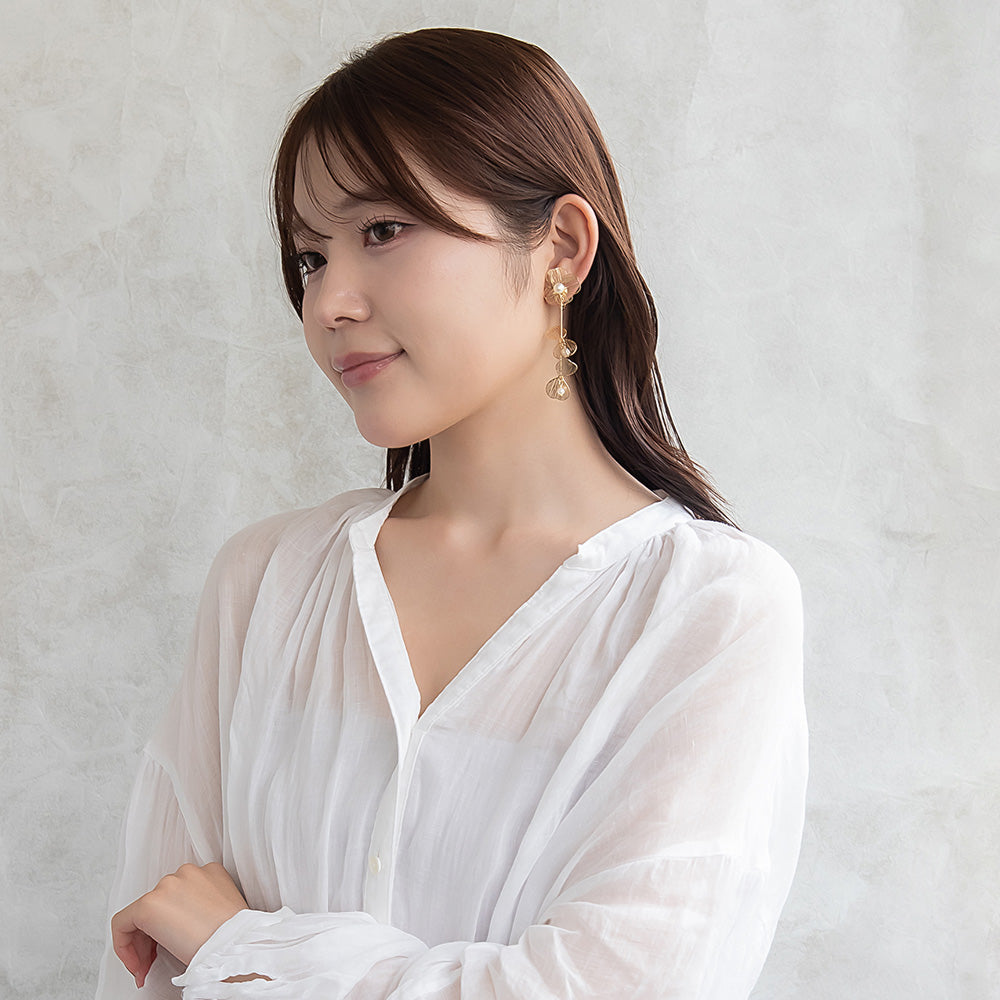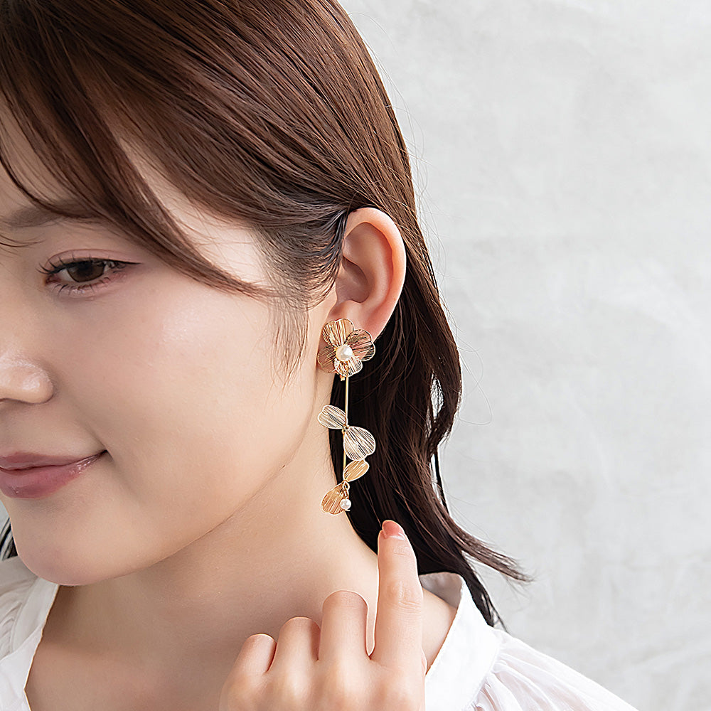 er1097透かしメタルのフラワーモチーフイヤリング。長めデザインで耳元を華やかに。