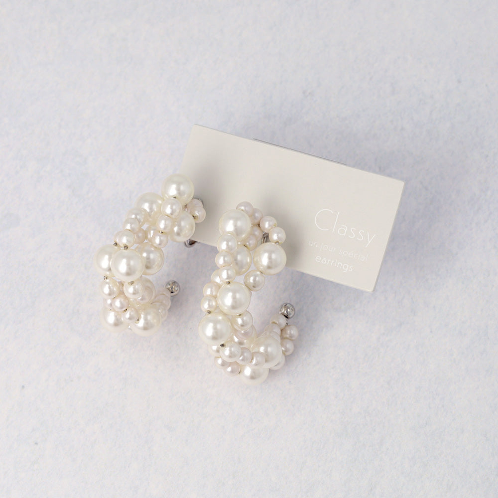 品のある華やかさと輝きを放つ、特別な日にぴったりなアクセサリー。おしゃれテンションが上がる耳飾りは、結婚式やパーティーシーンだけでなくカジュアルに合わせるのも◎