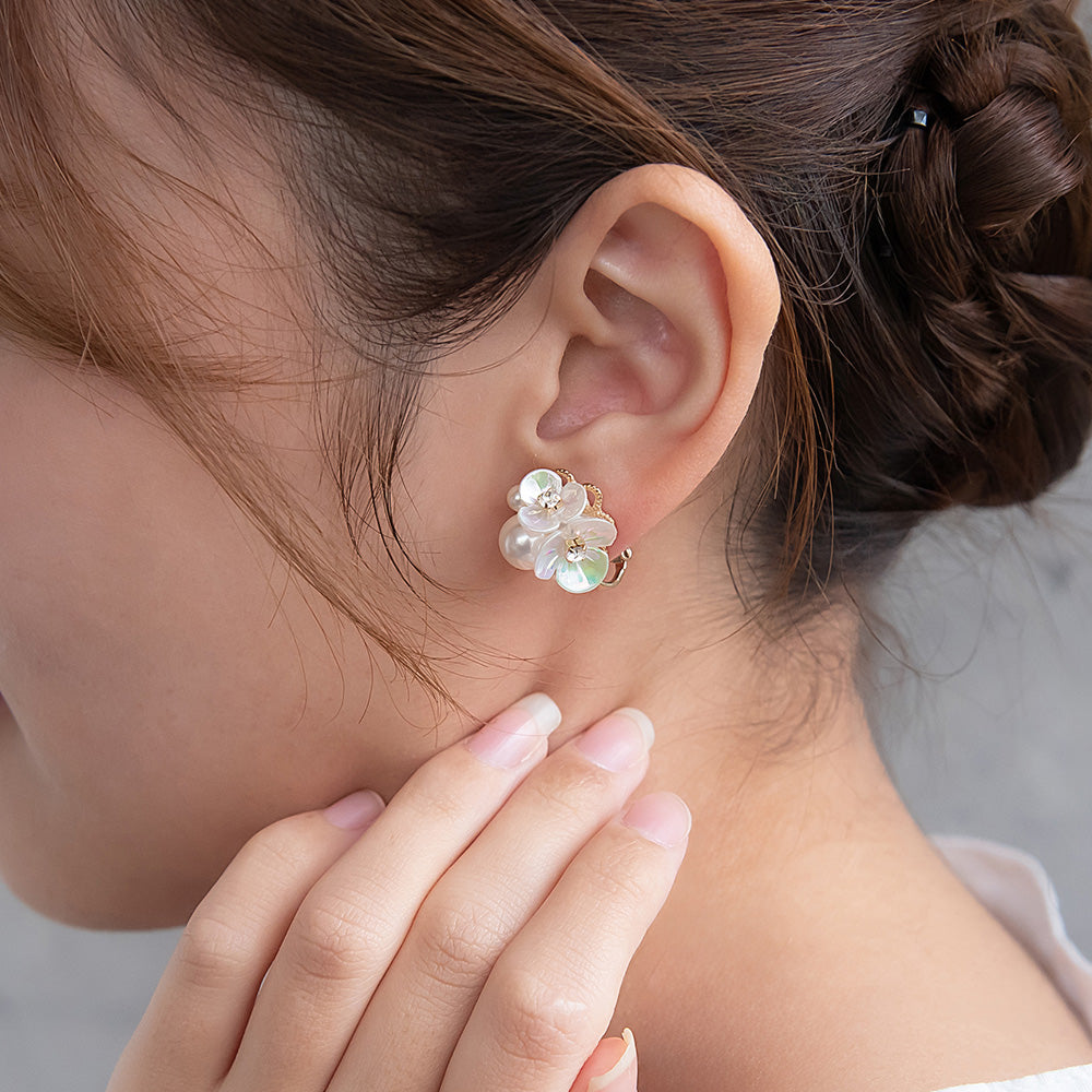Classy イヤリング ニッケルフリー フラワー パール ネジバネ式イヤリング