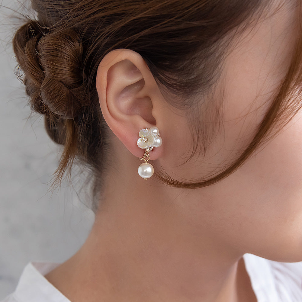Classy イヤリング ニッケルフリー フラワー パール ネジバネ式イヤリング