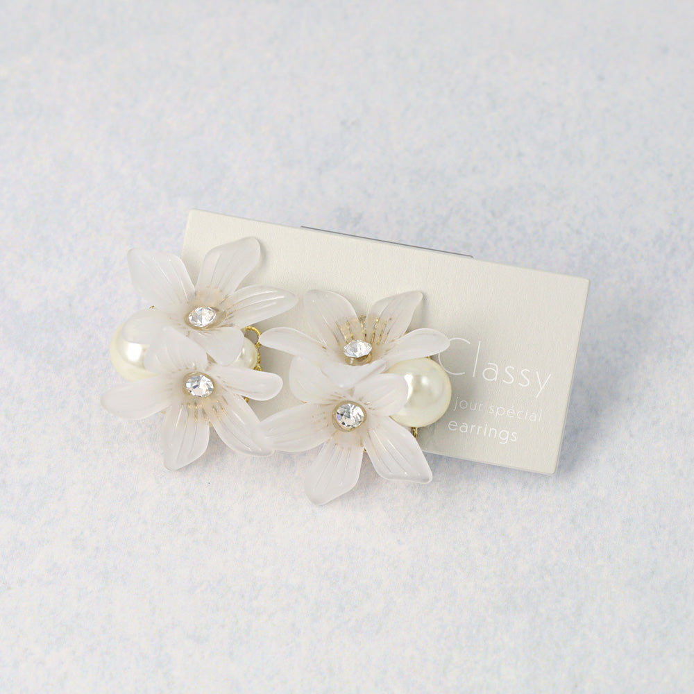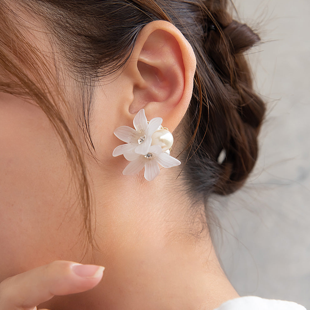 Classy イヤリング ニッケルフリー フラワー パール ネジバネ式イヤリング