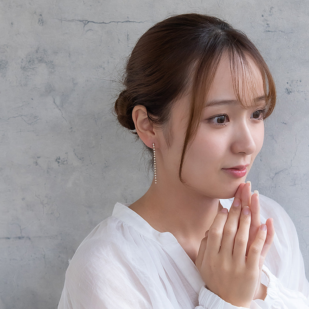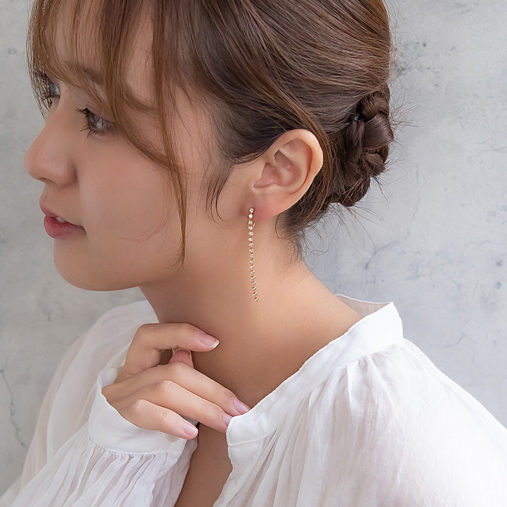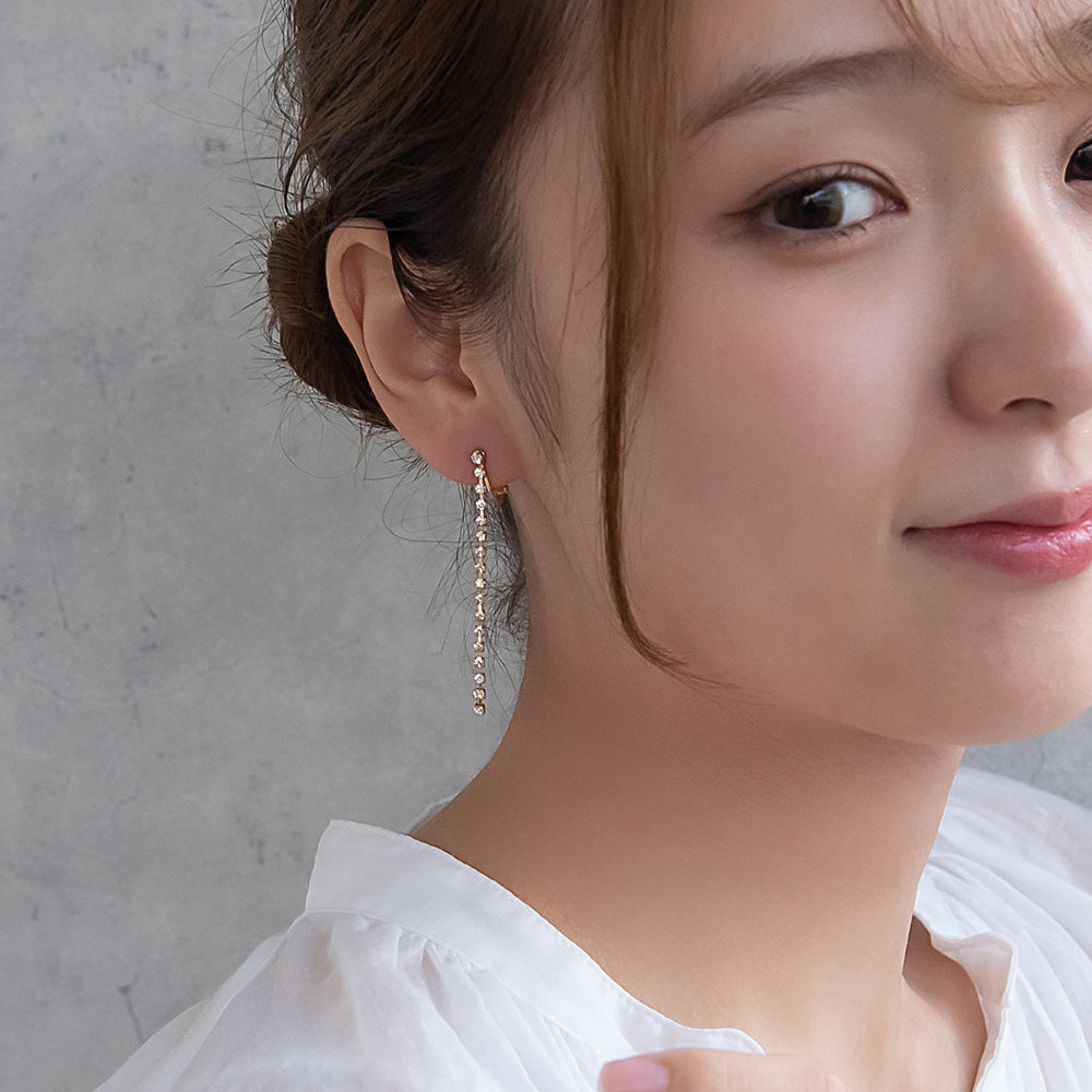 er1103さりげなく上品に、きらりと輝くラインストーンのイヤリング。目立ちにくくスッキリとした、お肌に優しい華奢な金具を使用したイヤリングです。