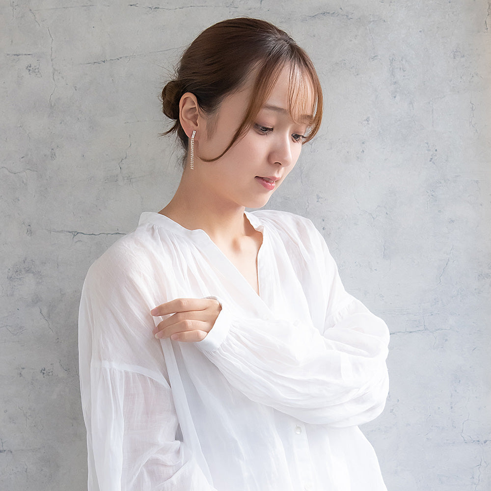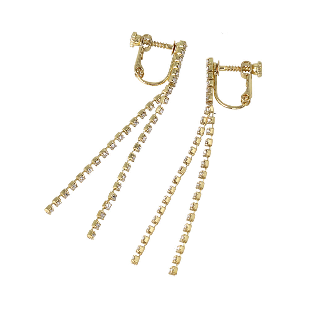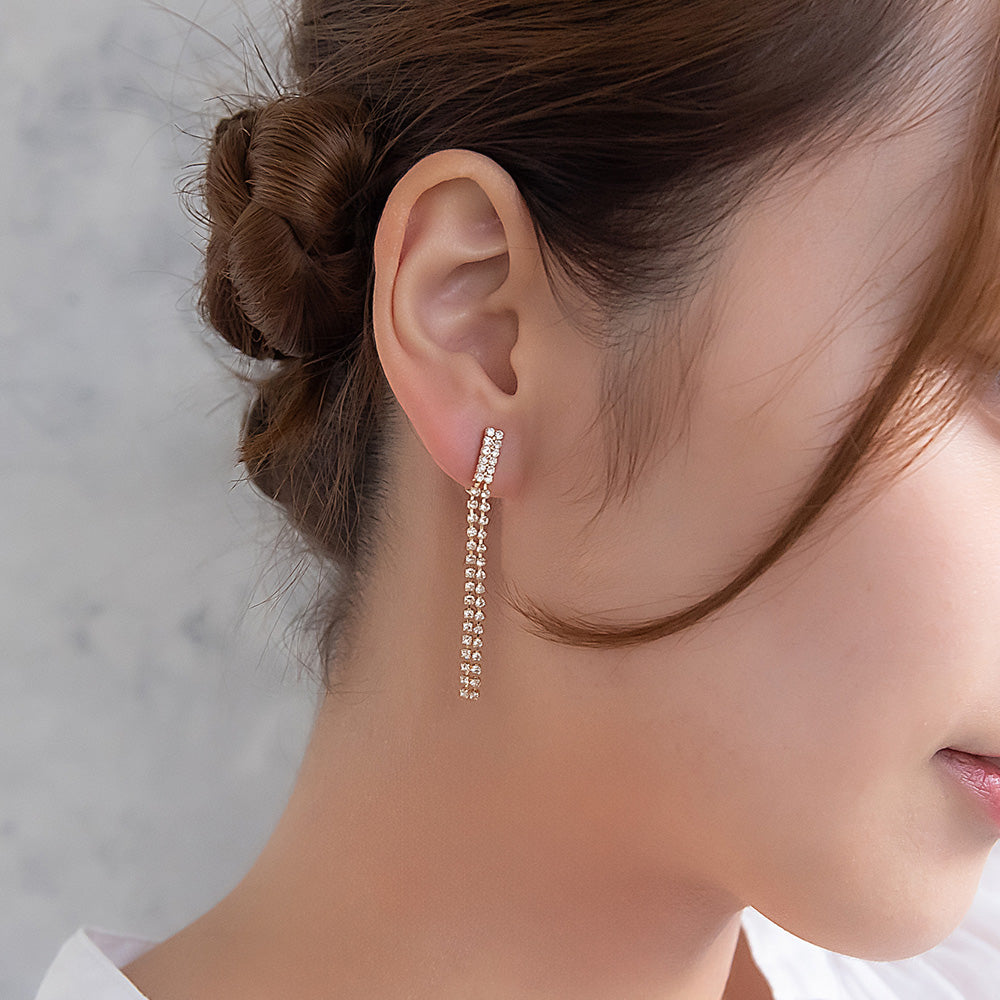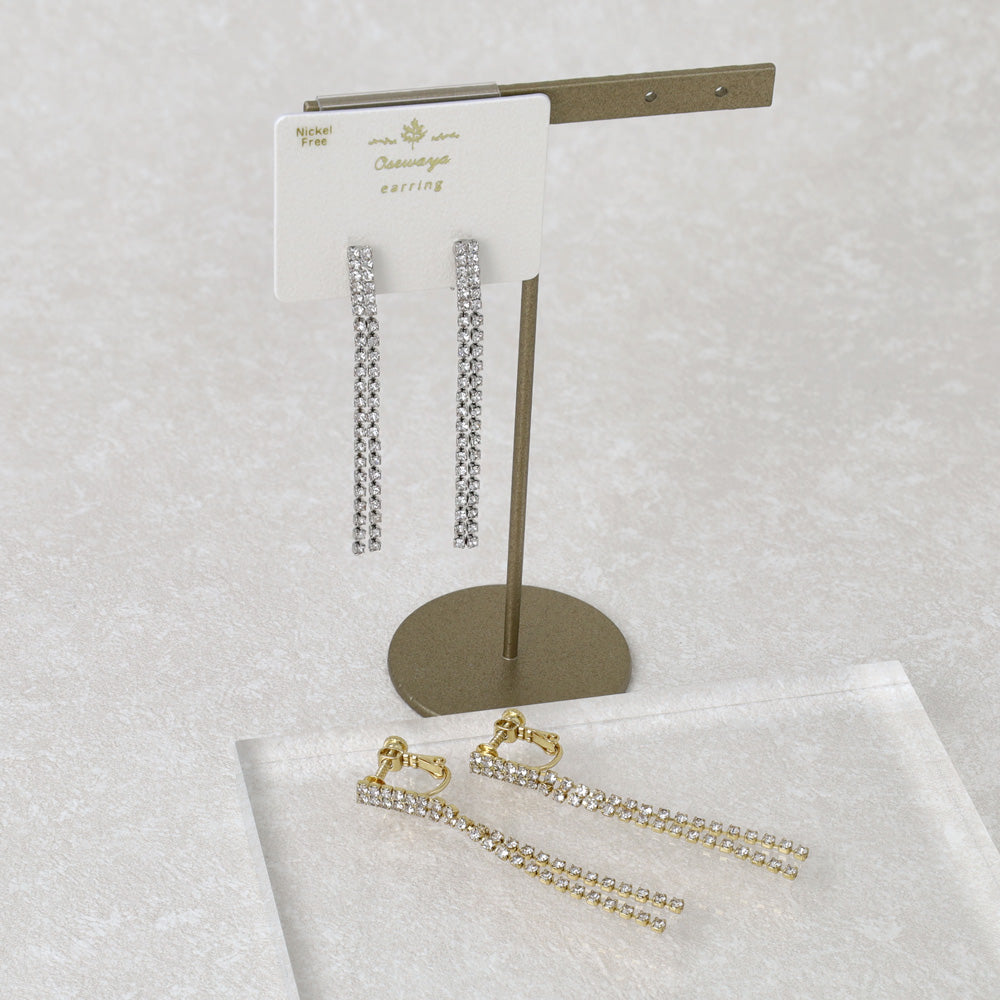 er1104さりげなく上品に、きらりと輝くラインストーンのイヤリング。目立ちにくくスッキリとした、お肌に優しい華奢な金具を使用したイヤリングです。