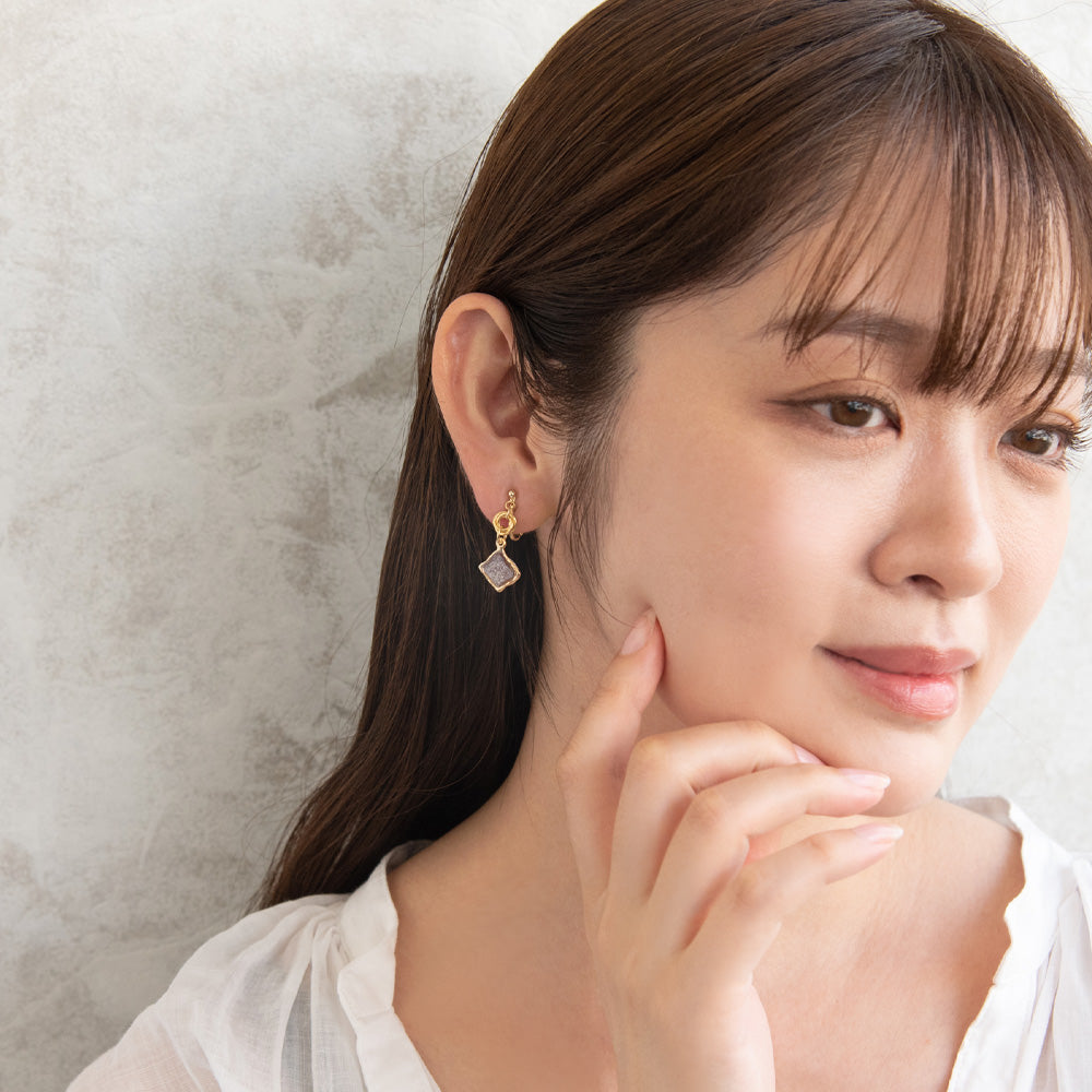 イヤリング ニッケルフリー ラメ メタルフレーム くすみカラー スクエア ネジバネ式イヤリング