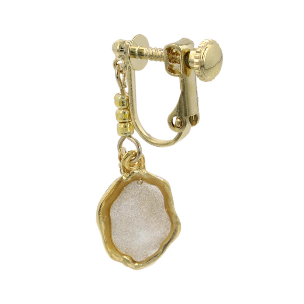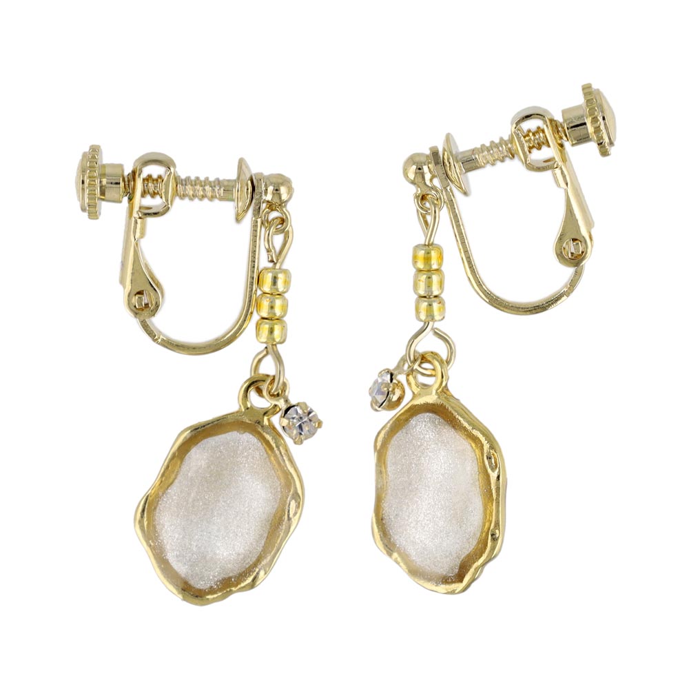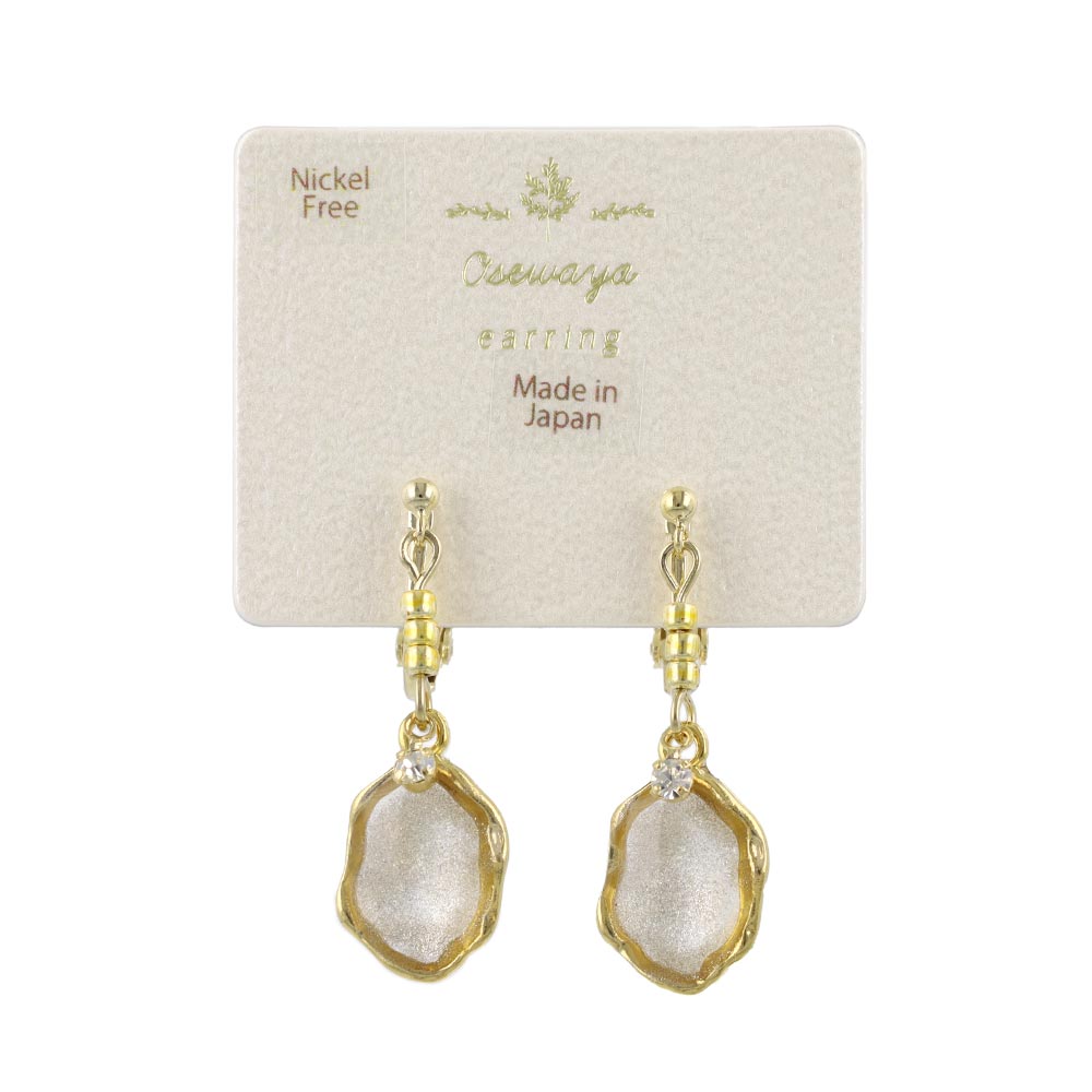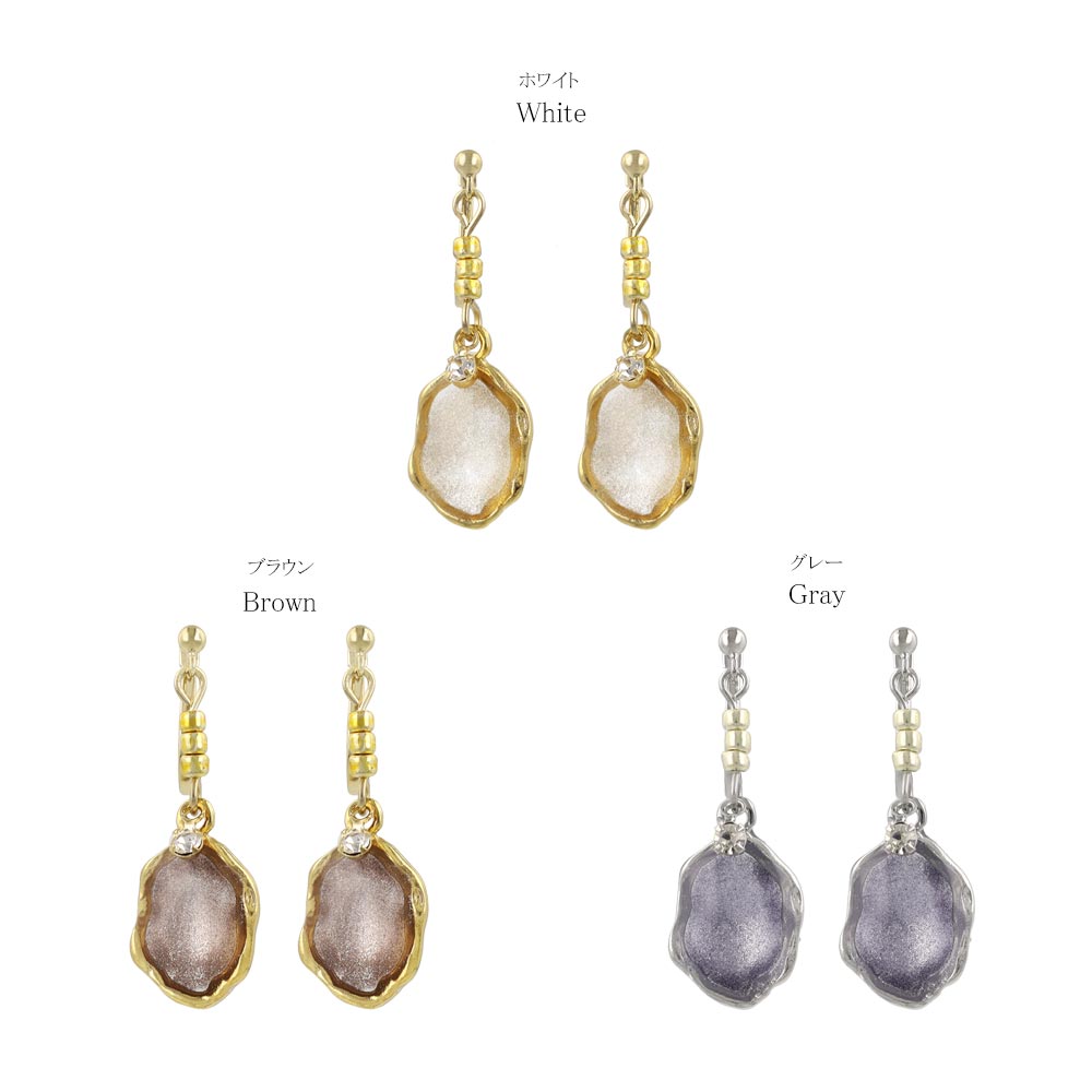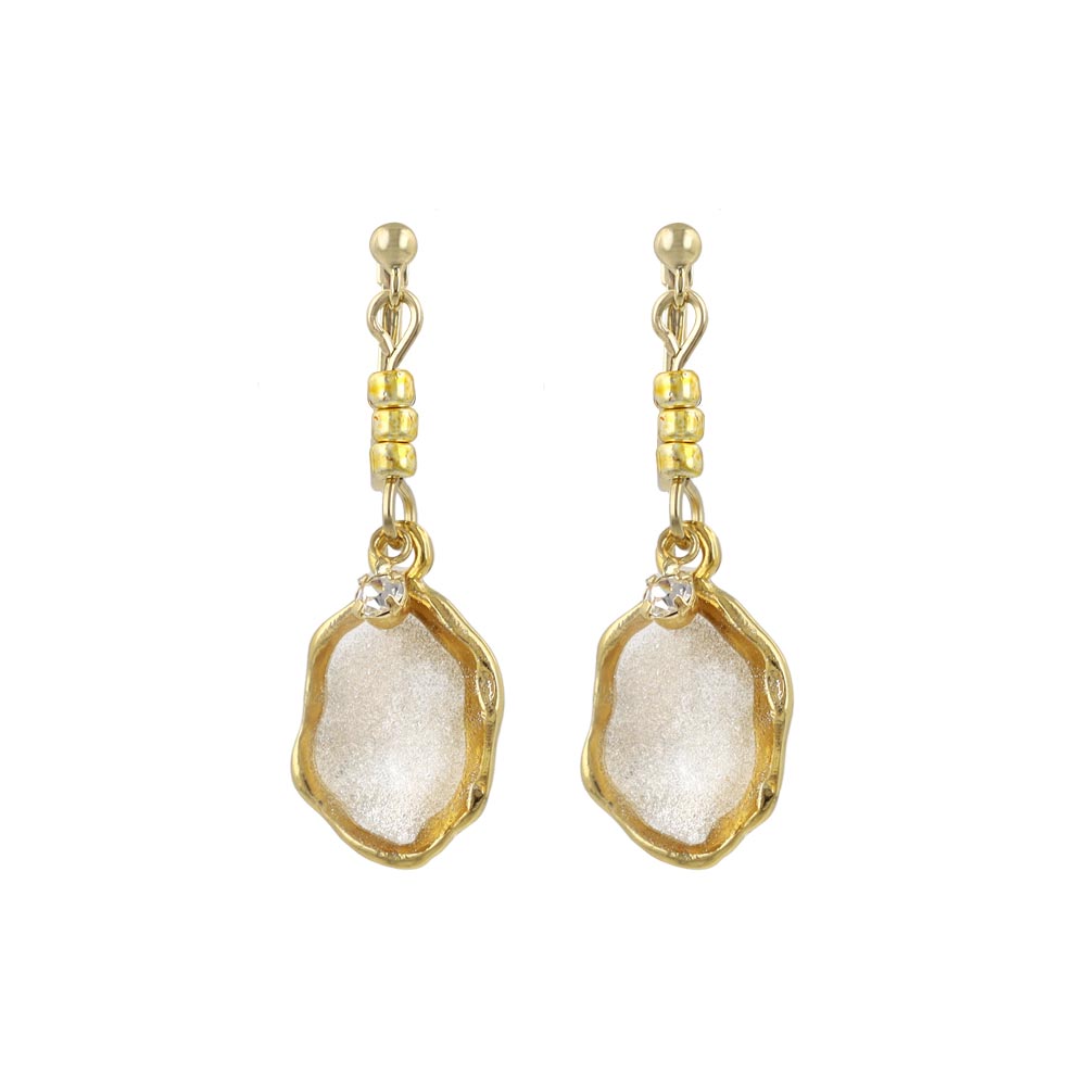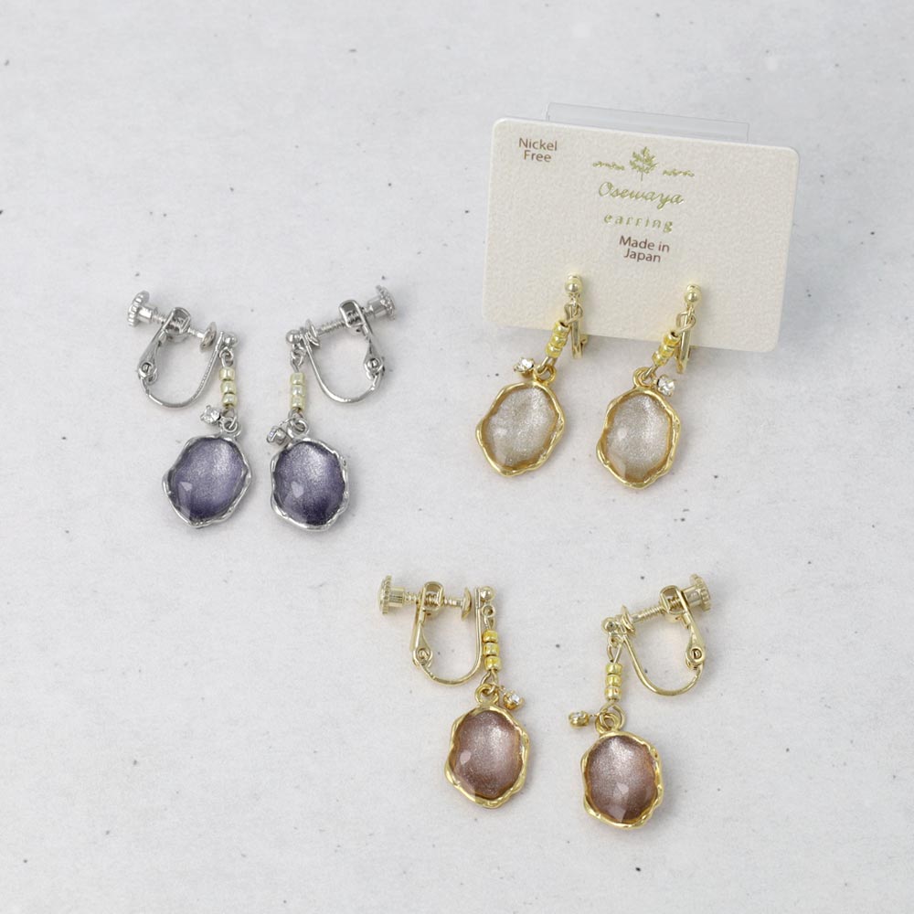 イヤリング ニッケルフリー ラメ メタルフレーム くすみカラー ガラス ビーズ ネジバネ式イヤリング