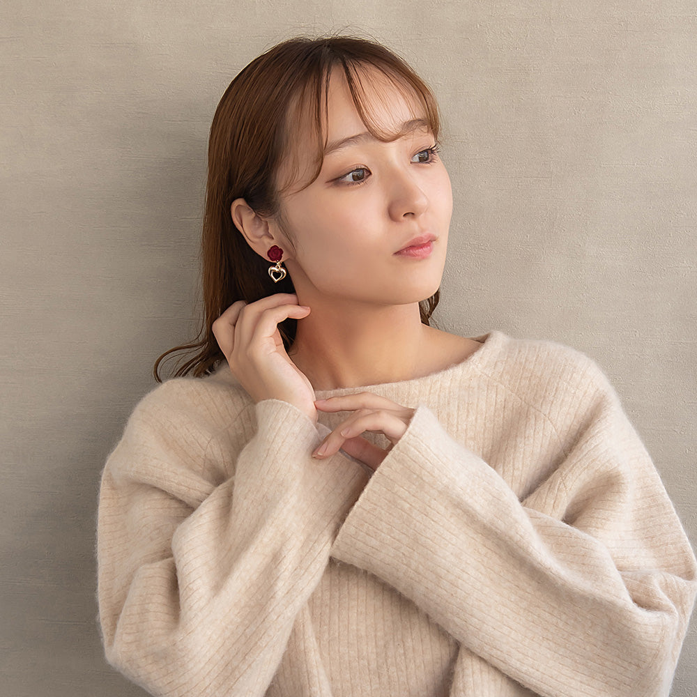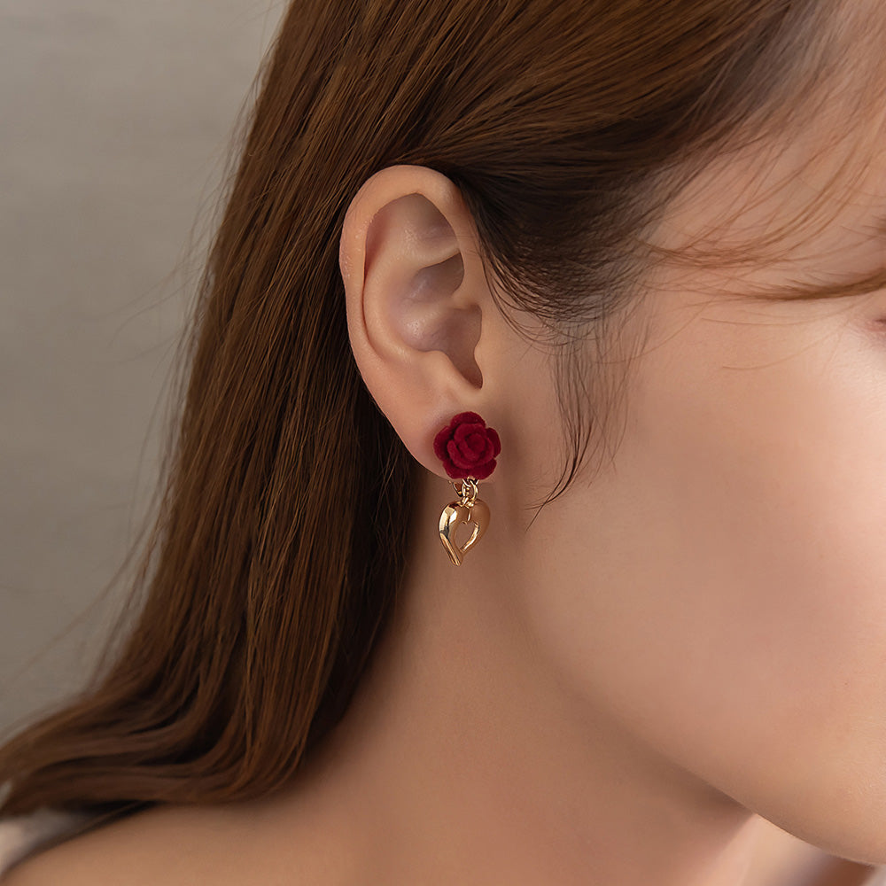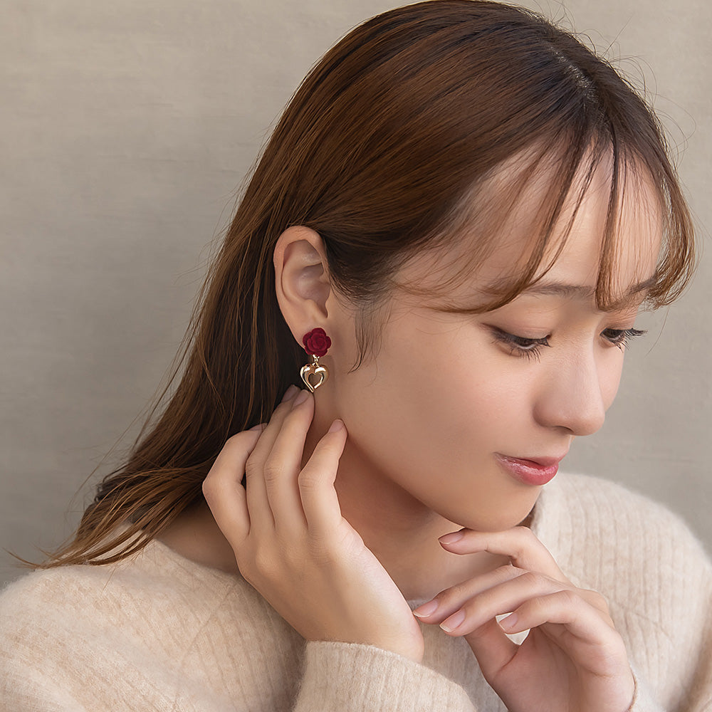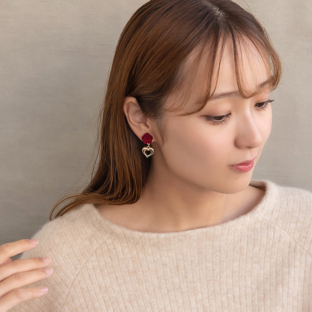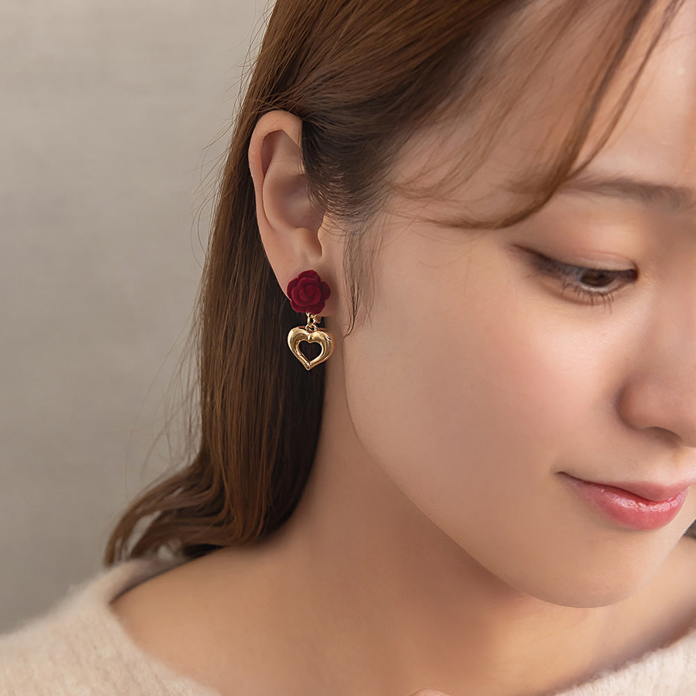 er1114シーズンムードを高めてくれるフロッキー加工のバラモチーフ×ハートのイヤリング。
