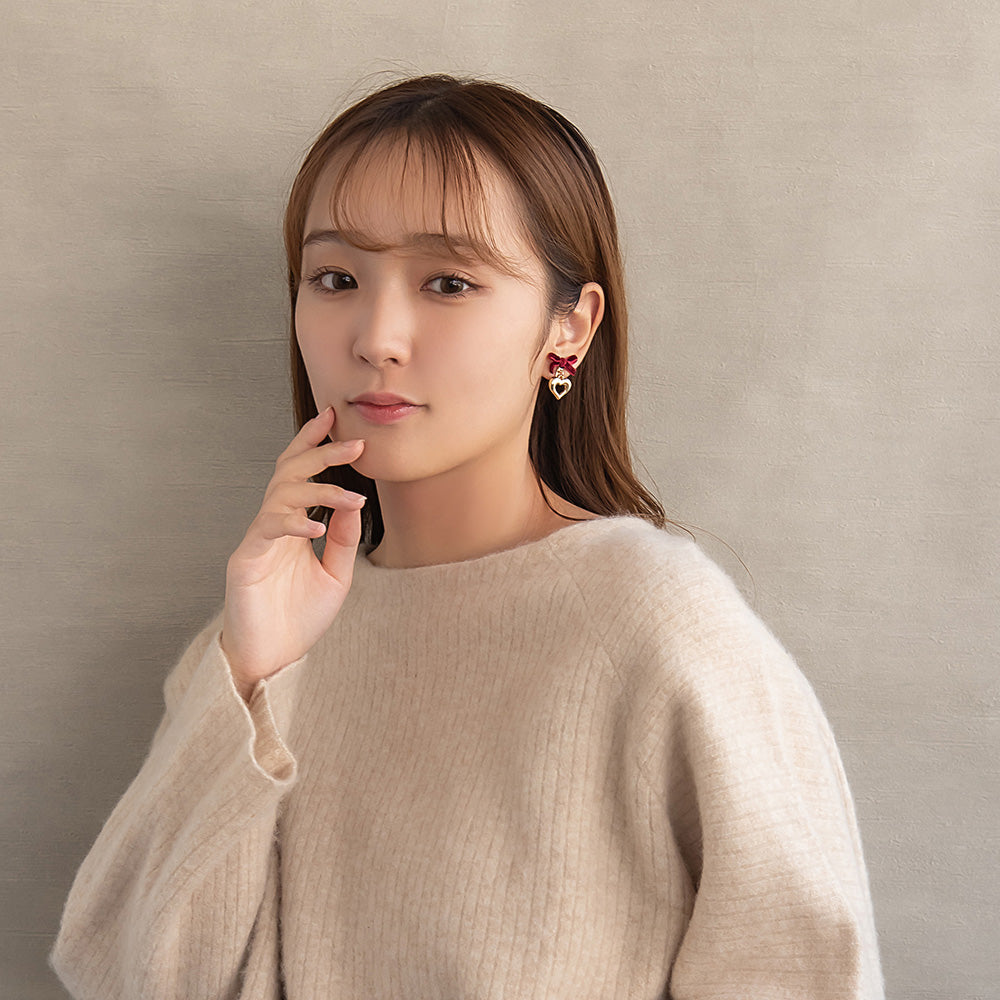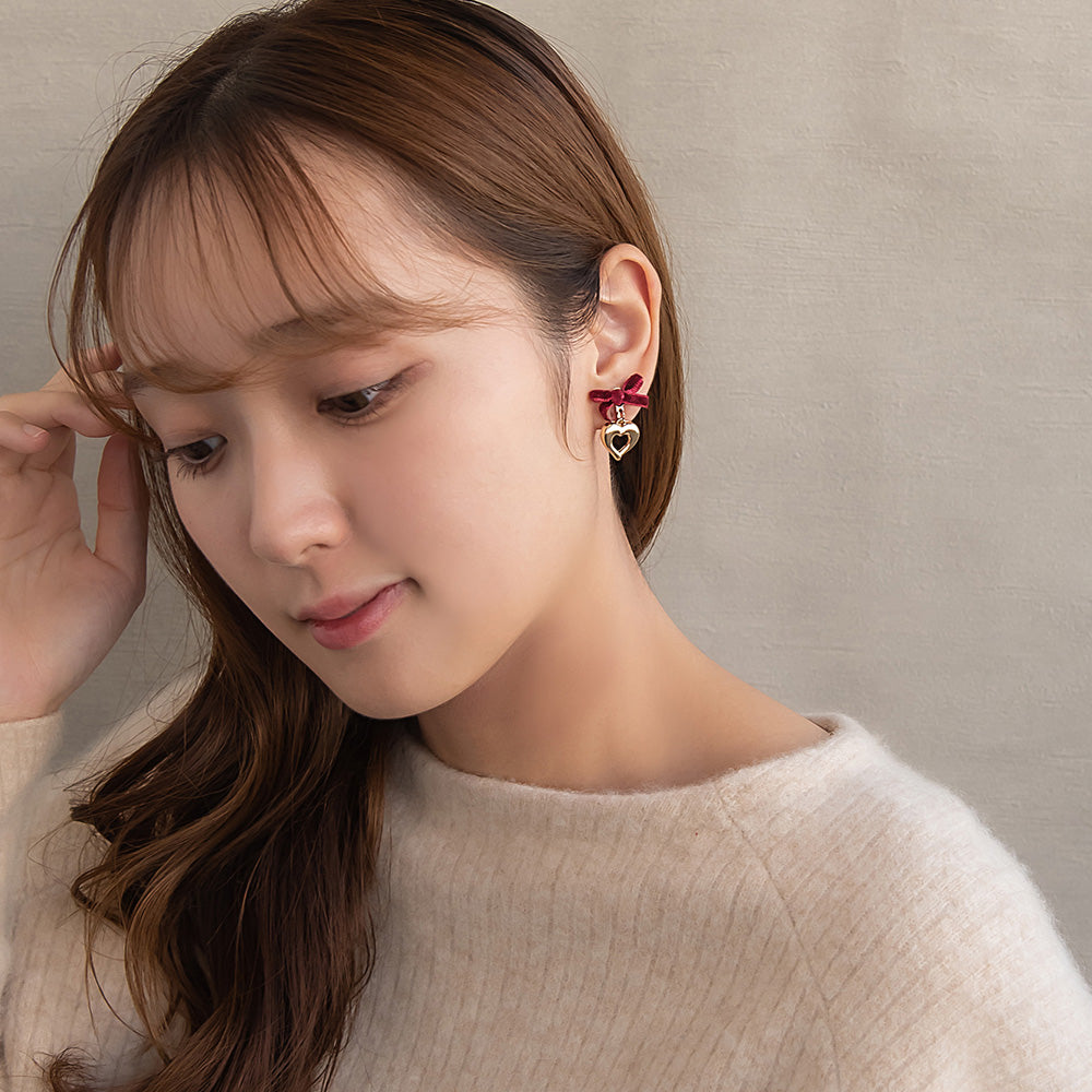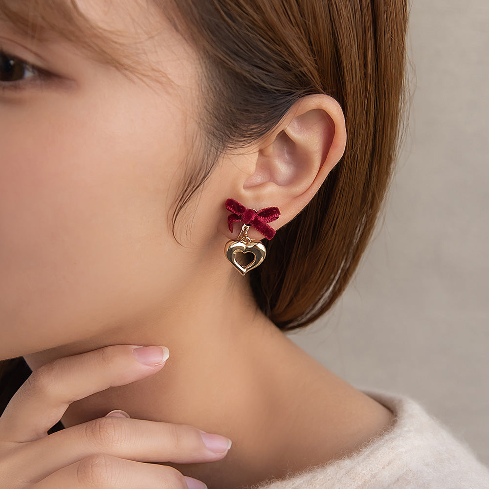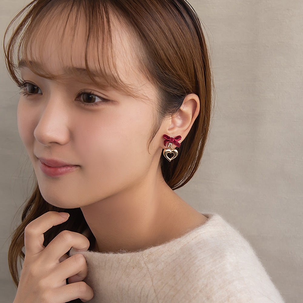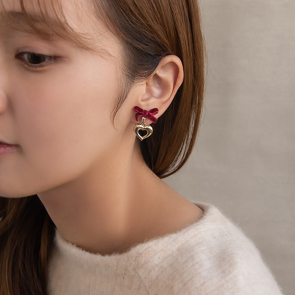 er1115シーズンムードを高めてくれるベロアリボン×ハートのイヤリング。