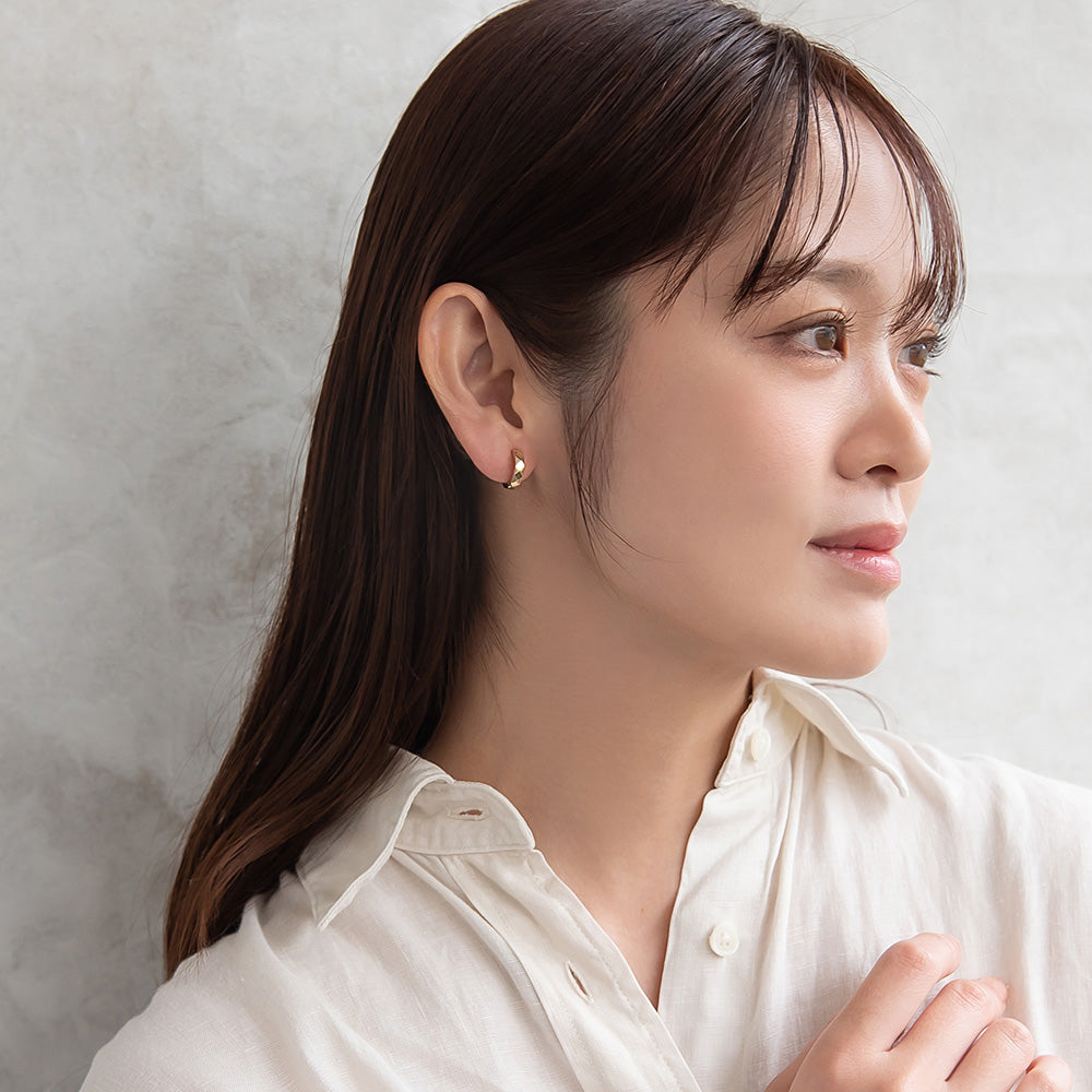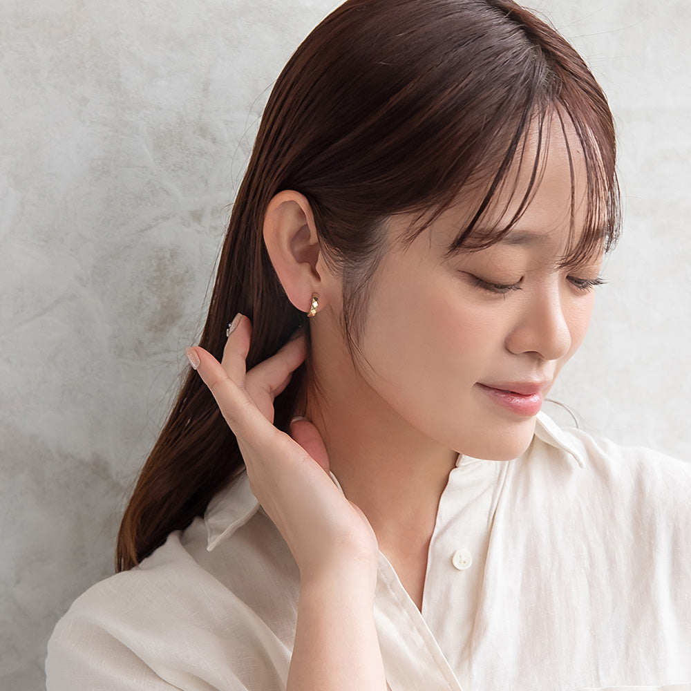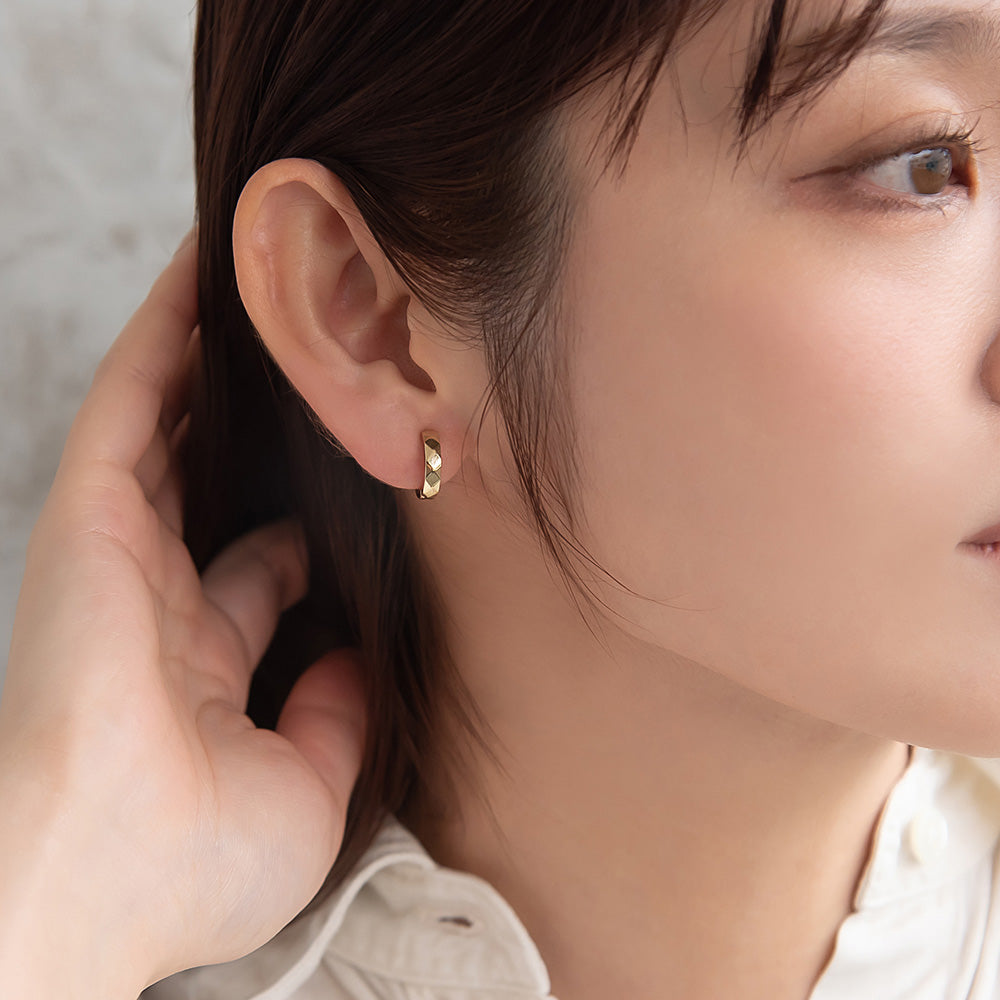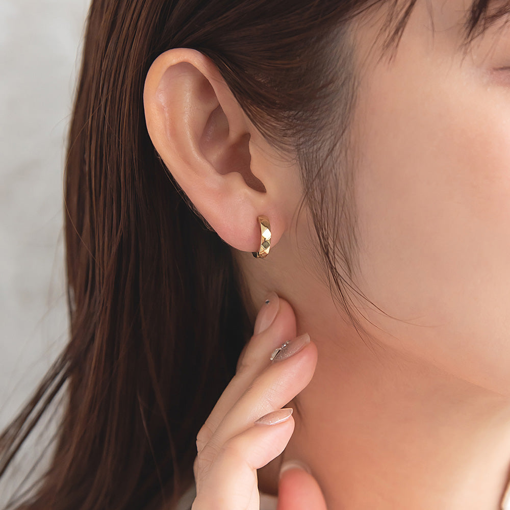 er1119ダイヤカットのピアス風イヤリング。挟むだけの簡単装着◎デイリー使いにお勧めのシンプルなフープイヤリングです。