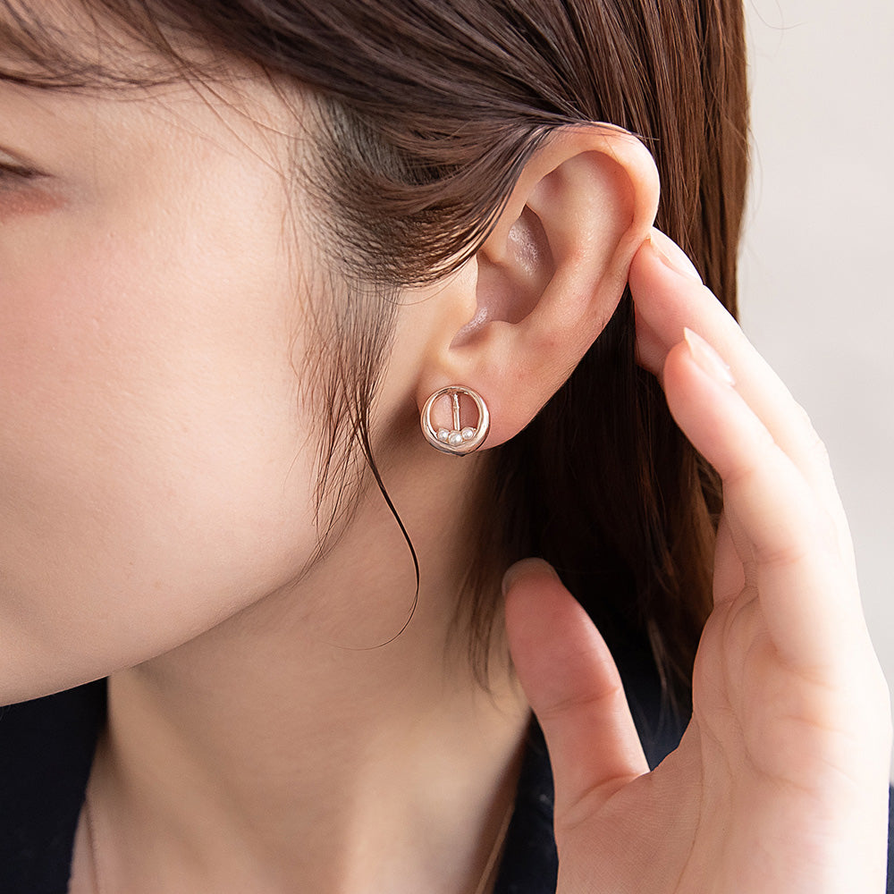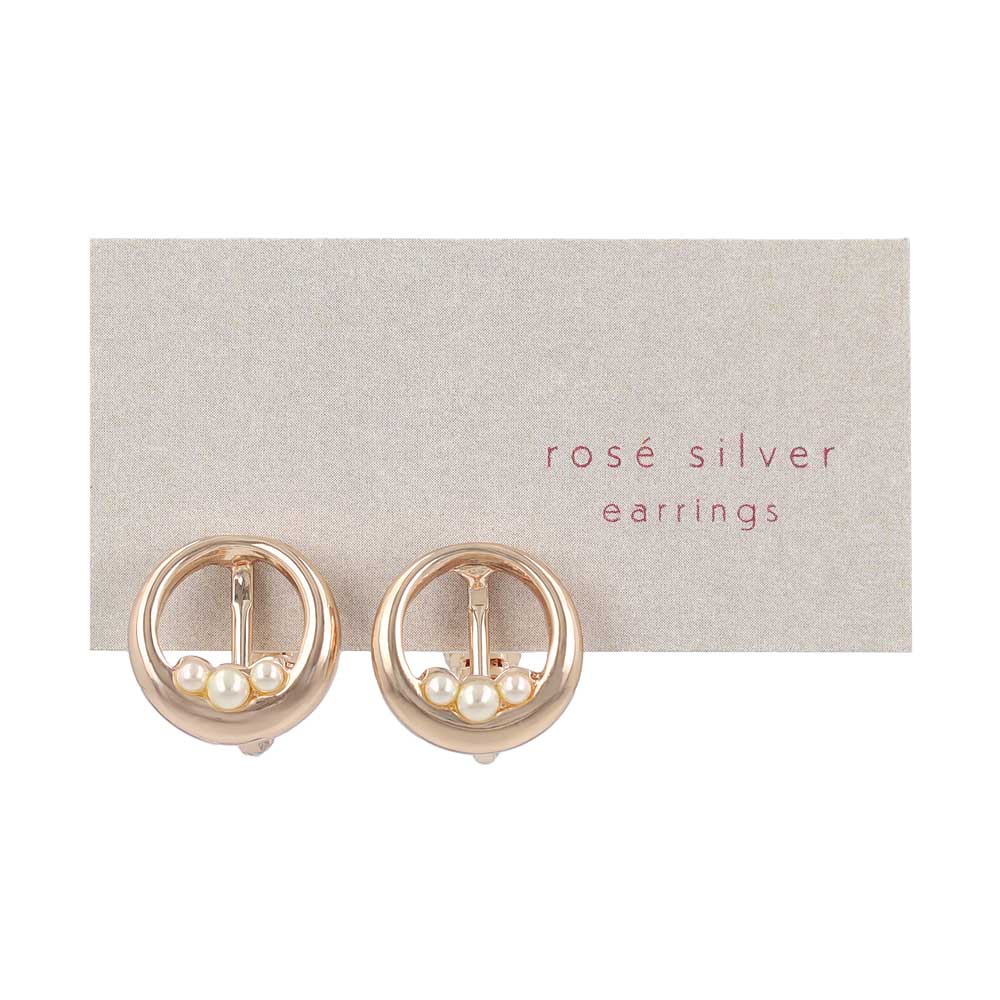 イヤリング ニッケルフリー ロゼシルバー パール ネジバネ式イヤリング