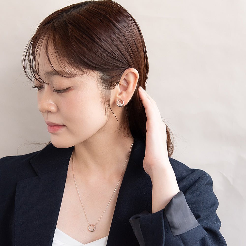 やさしい風合いのロゼカラーのアクセサリー。シルバーカラーを足したような薄いピンクゴールドの色調。
