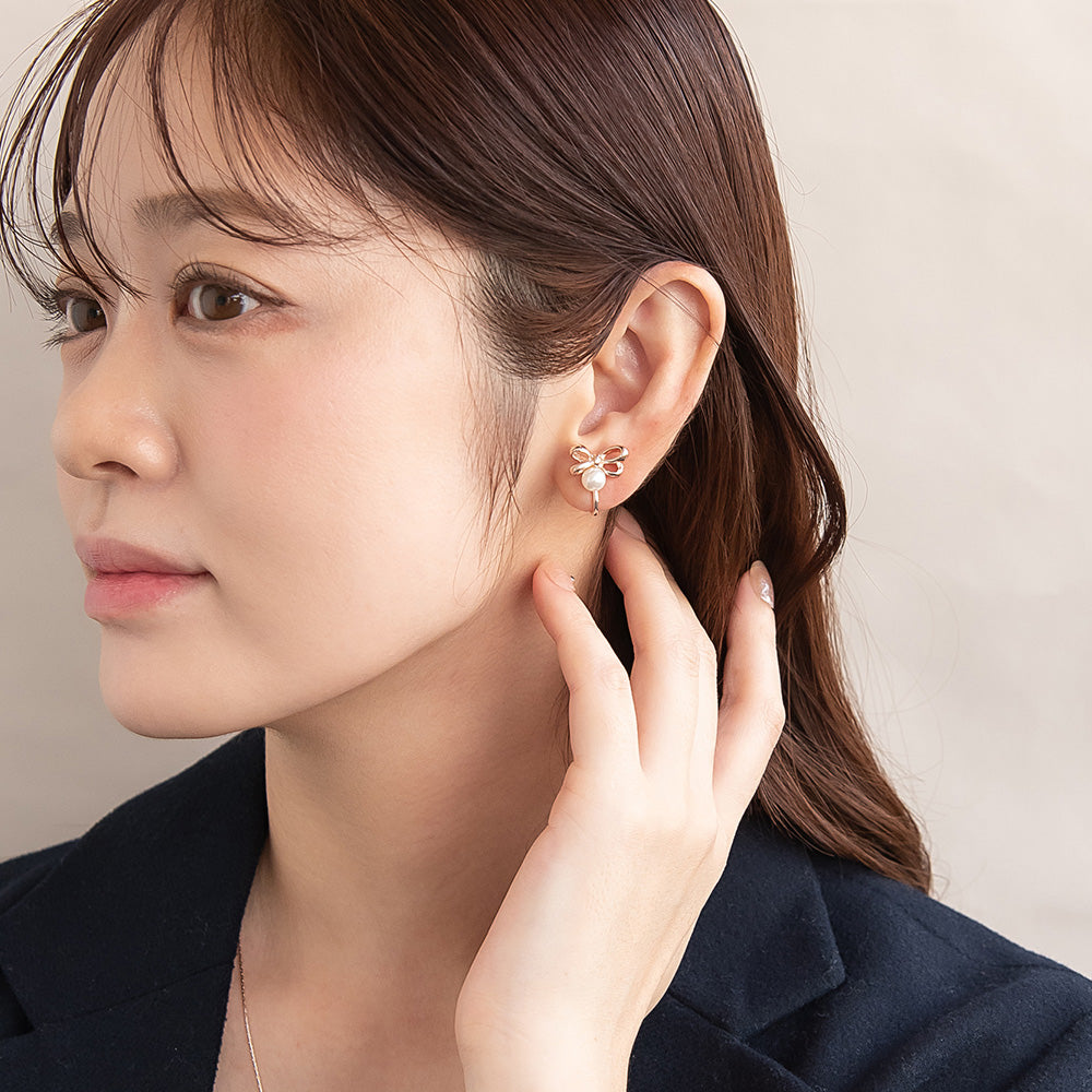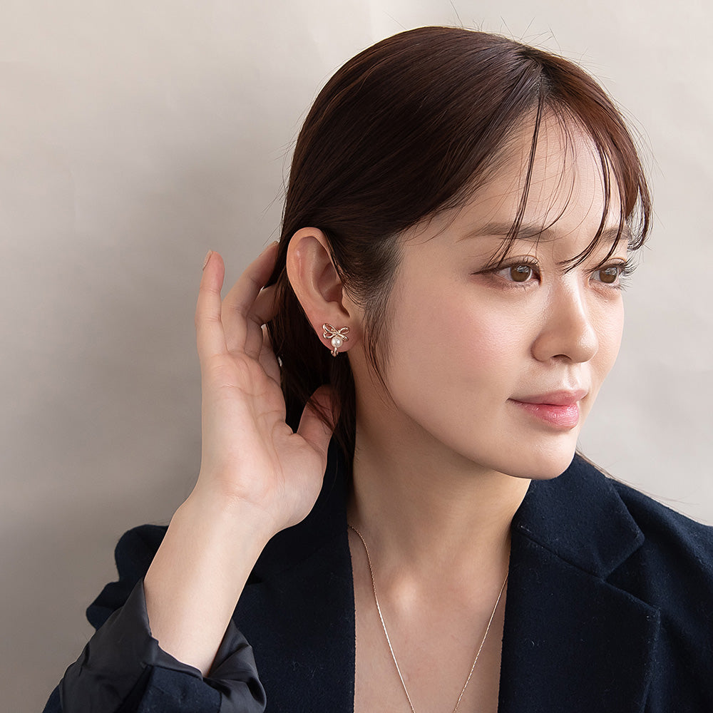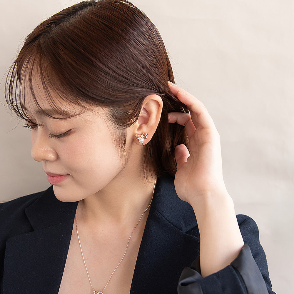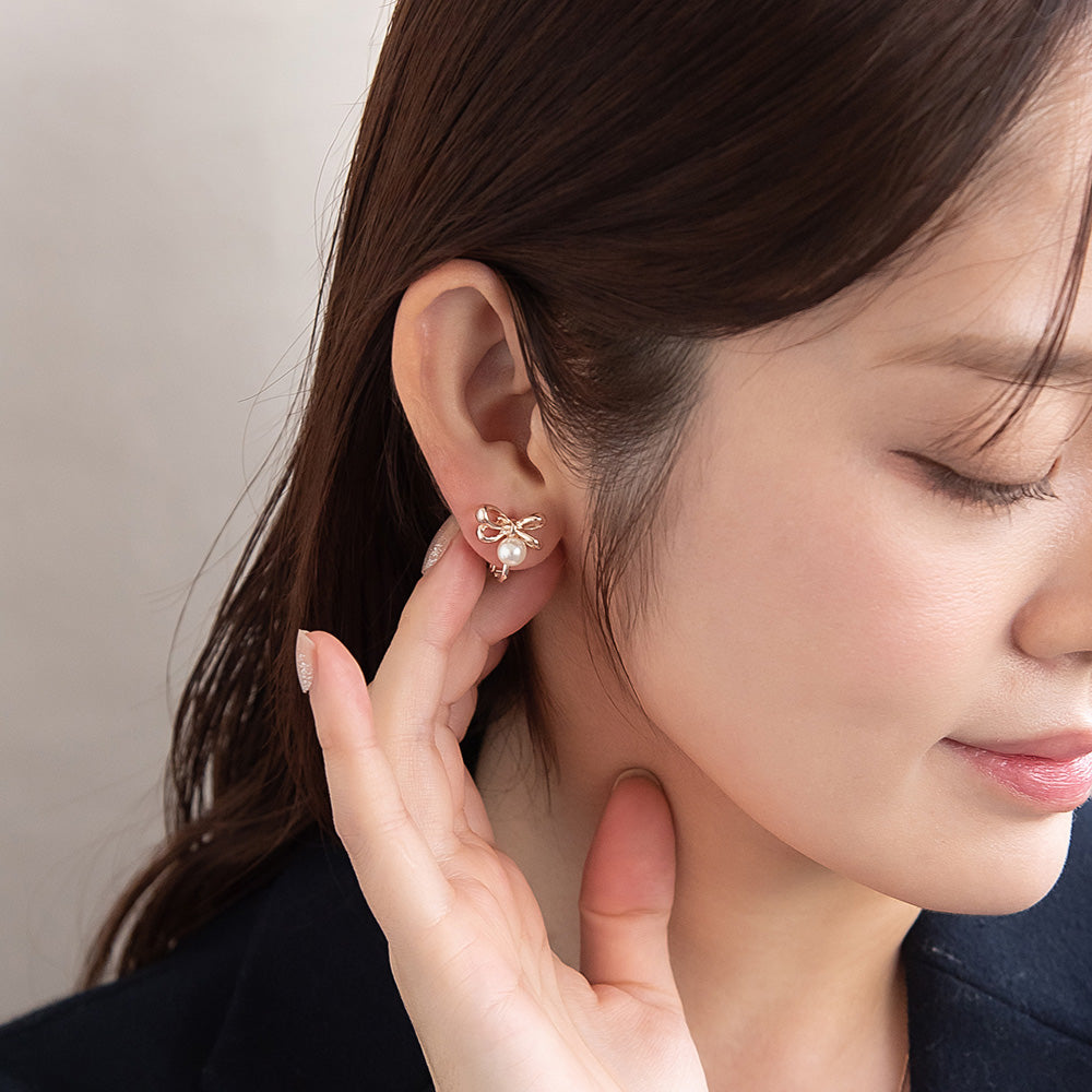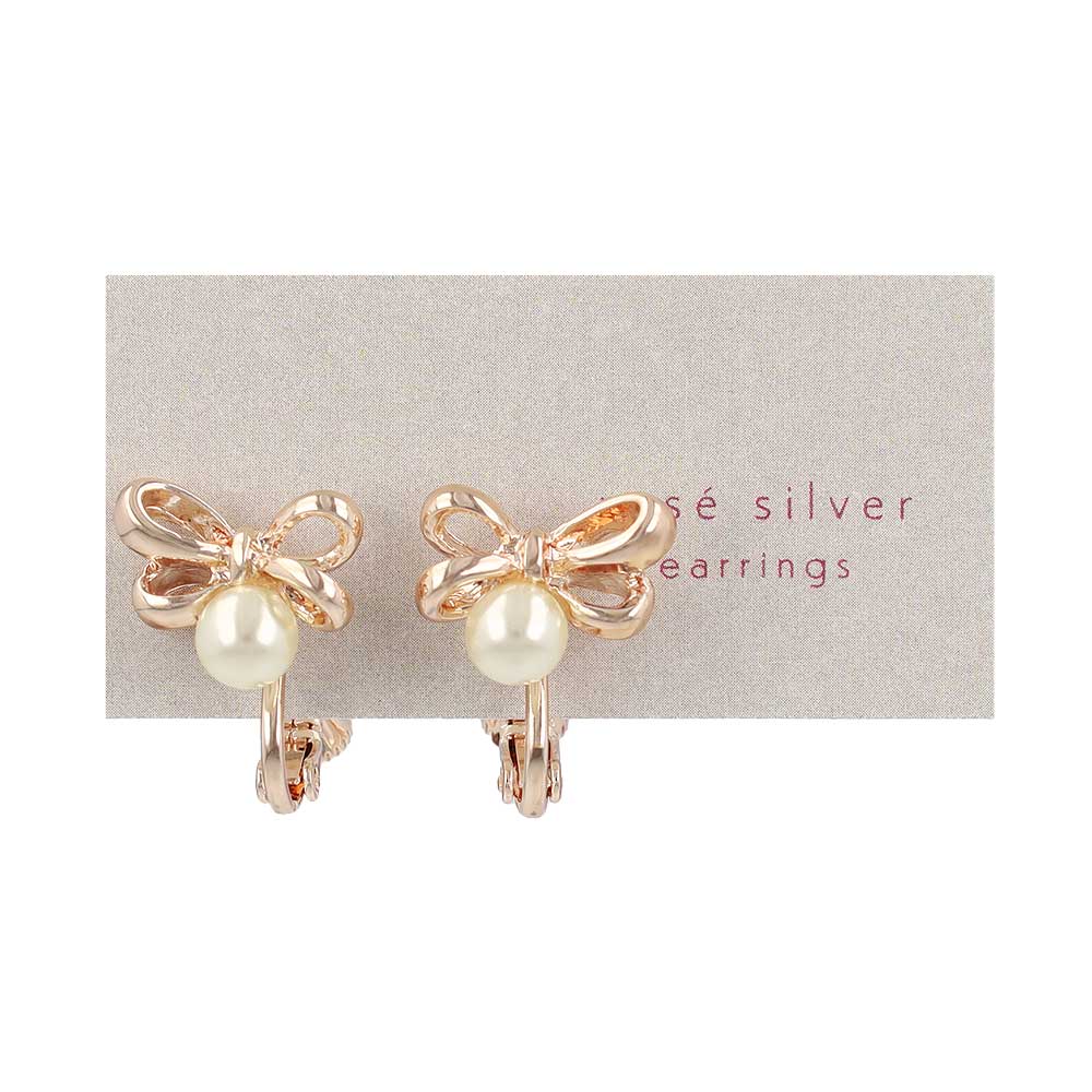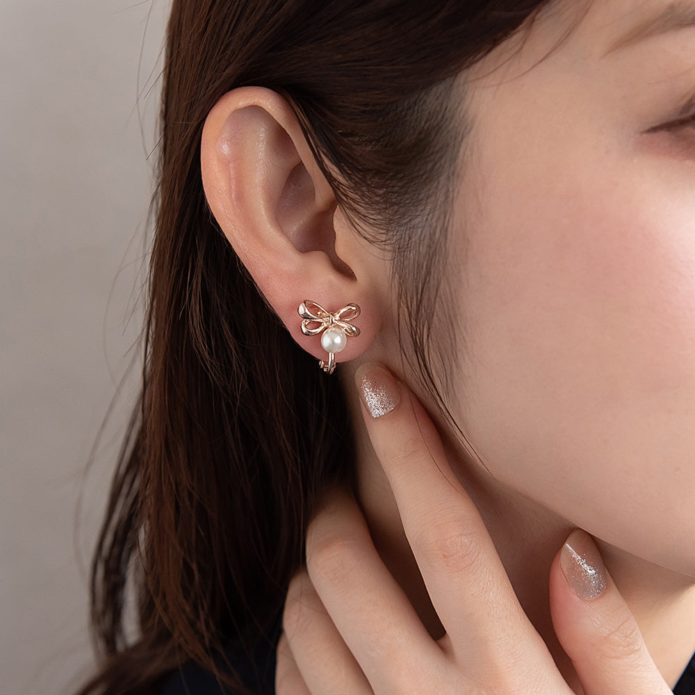イヤリング ニッケルフリー ロゼシルバー リボン ネジバネ式イヤリング