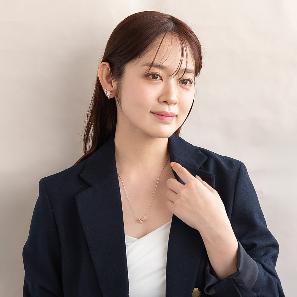 やさしい風合いのロゼカラーのアクセサリー。シルバーカラーを足したような薄いピンクゴールドの色調。