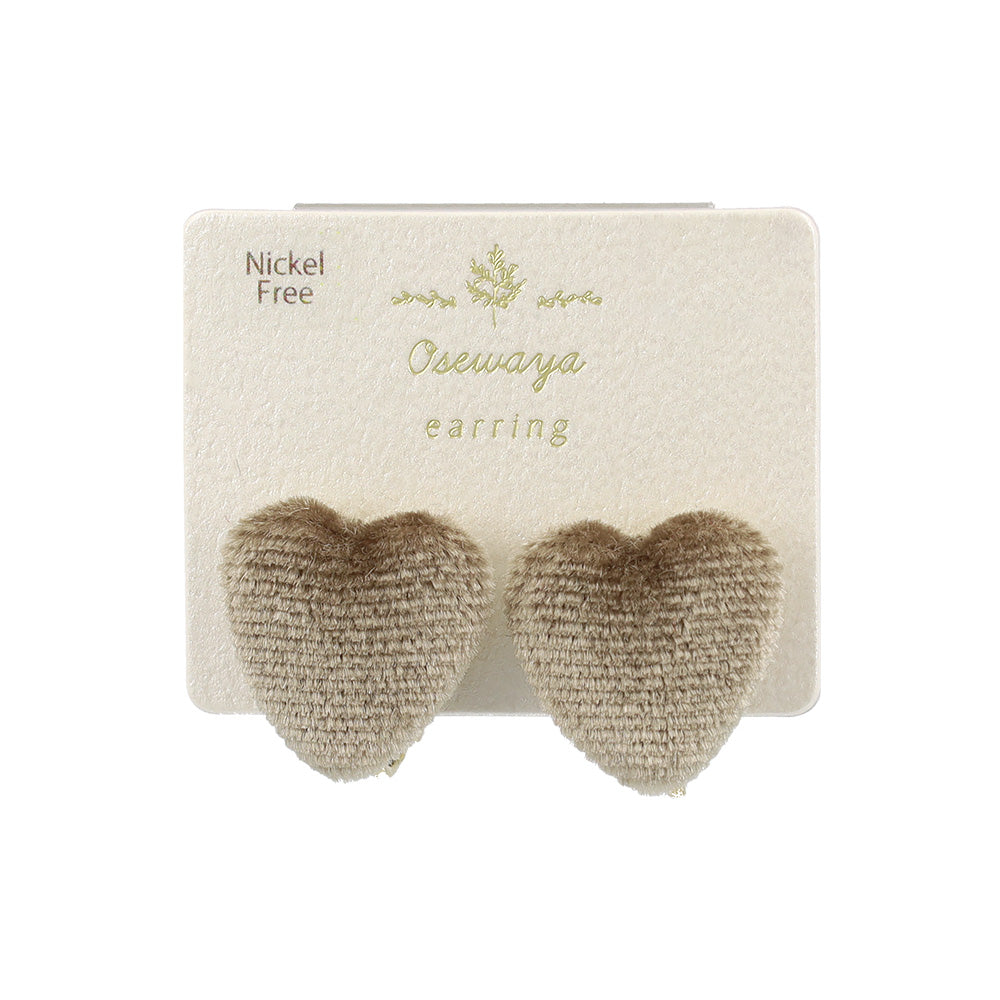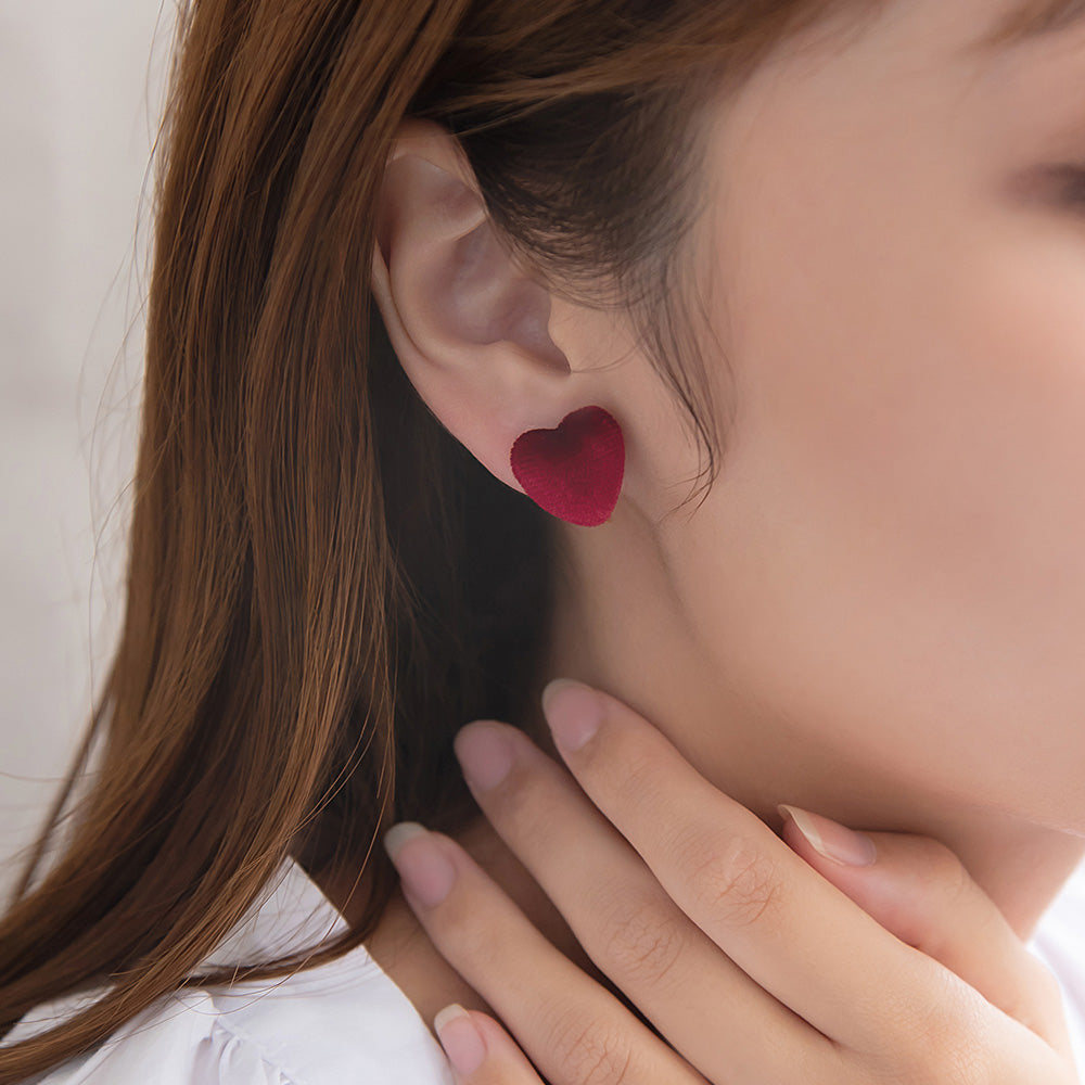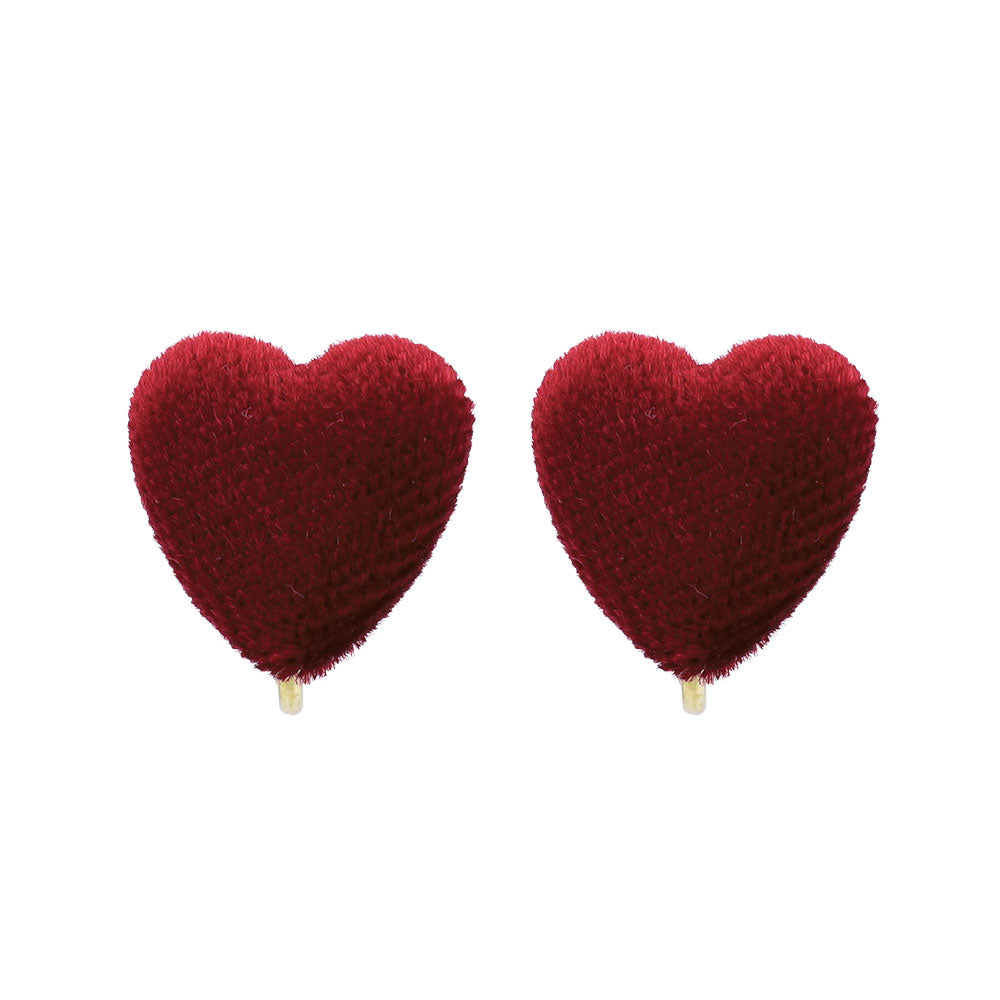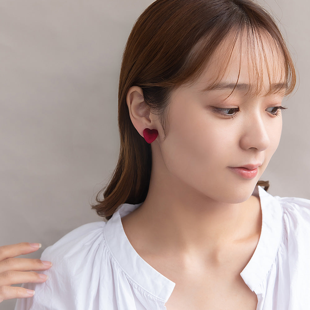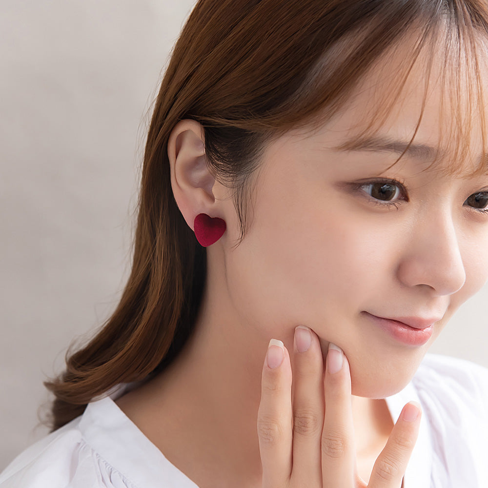 er1124シーズンムード高まるベロア素材のイヤリング。ころんとしたフォルムが可愛いハート形。