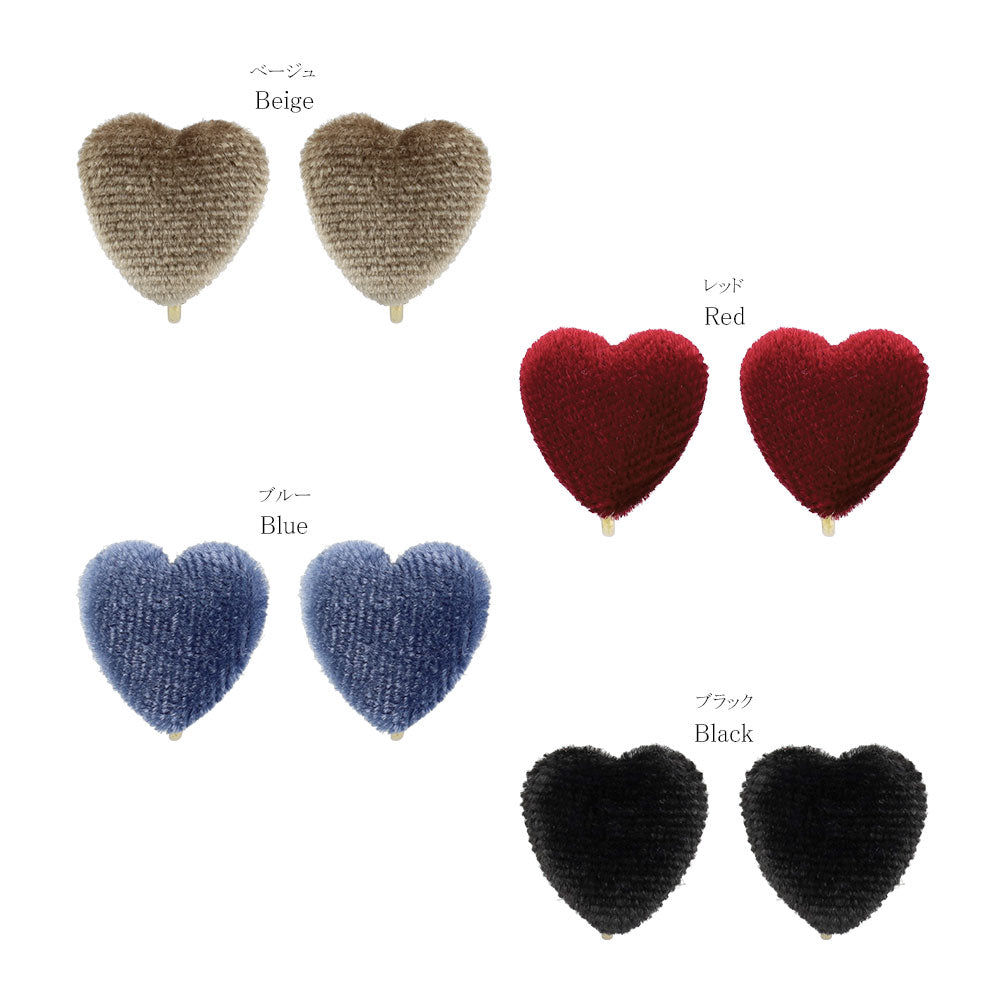 イヤリング ニッケルフリー ベロア ハート ネジバネ式イヤリング