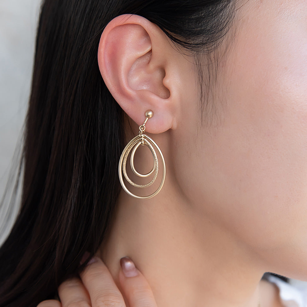 イヤリング ニッケルフリー sable gold メタル トリプル ドロップ ネジバネ式イヤリング