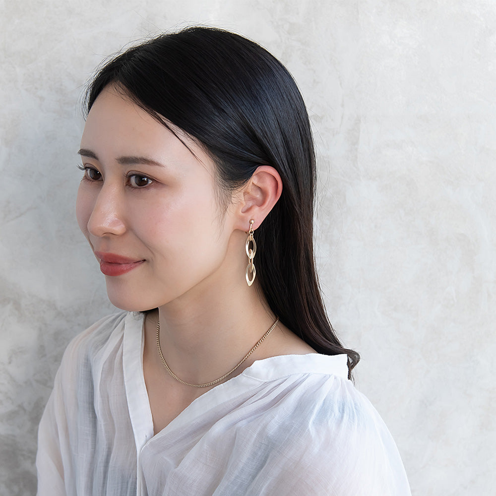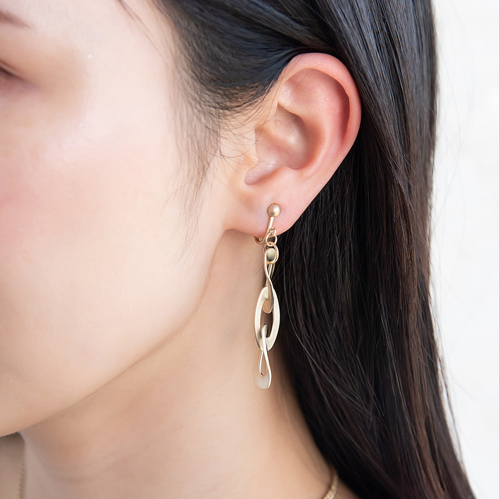 イヤリング ニッケルフリー sable gold メタル オーバル ツイスト チェーン ネジバネ式イヤリング