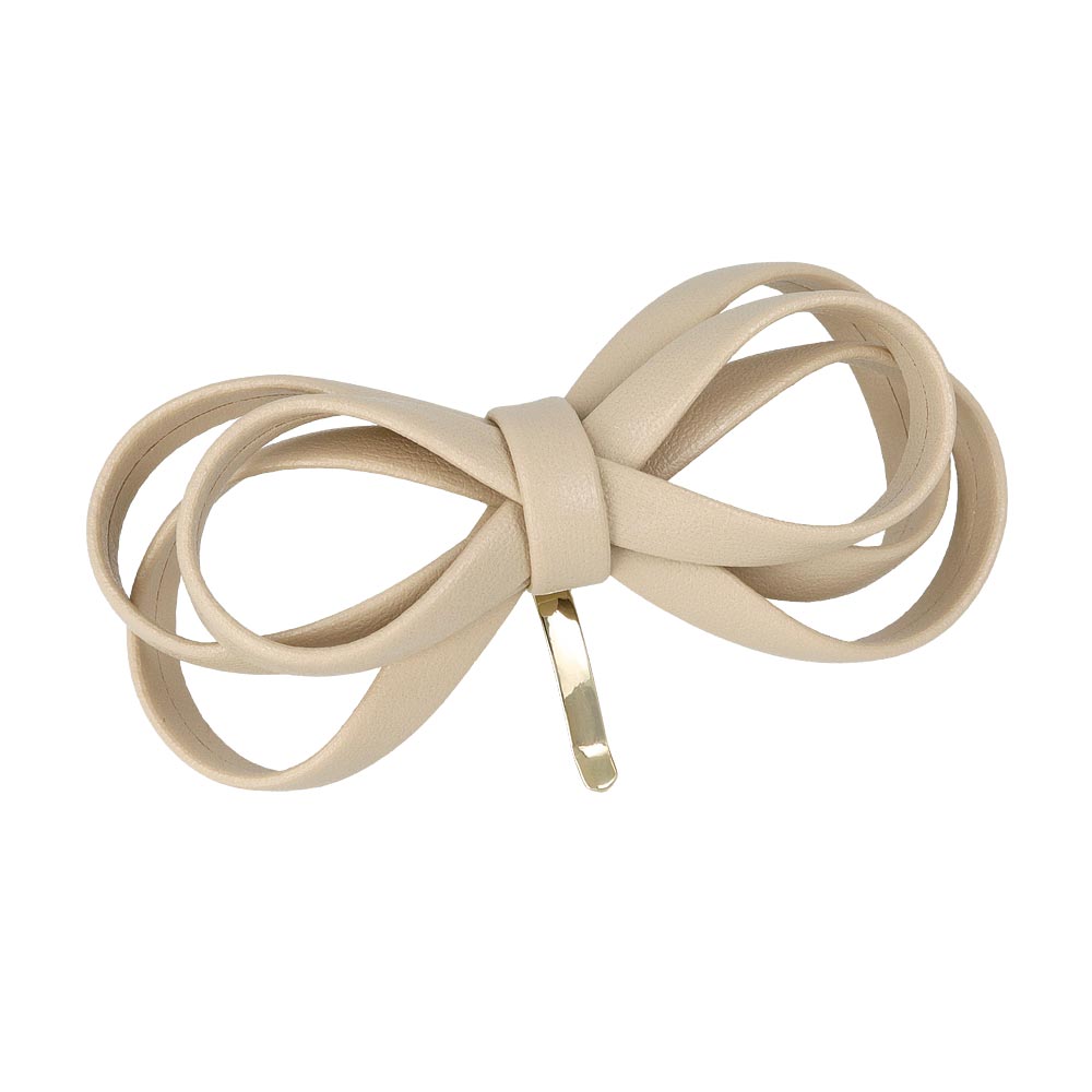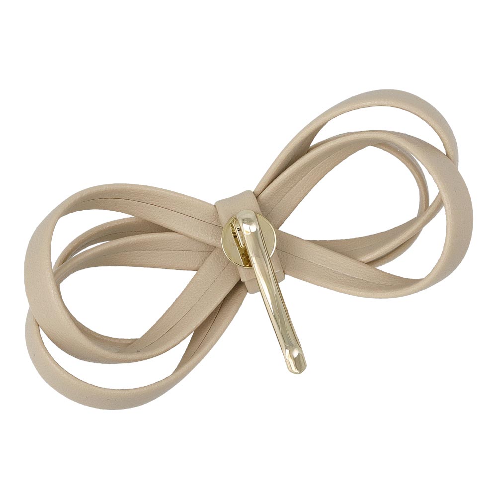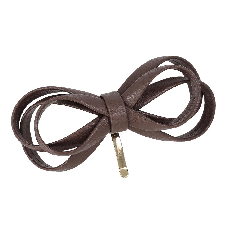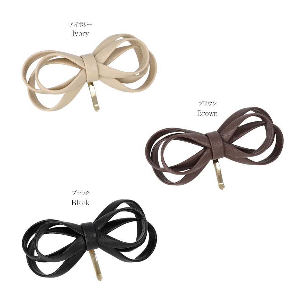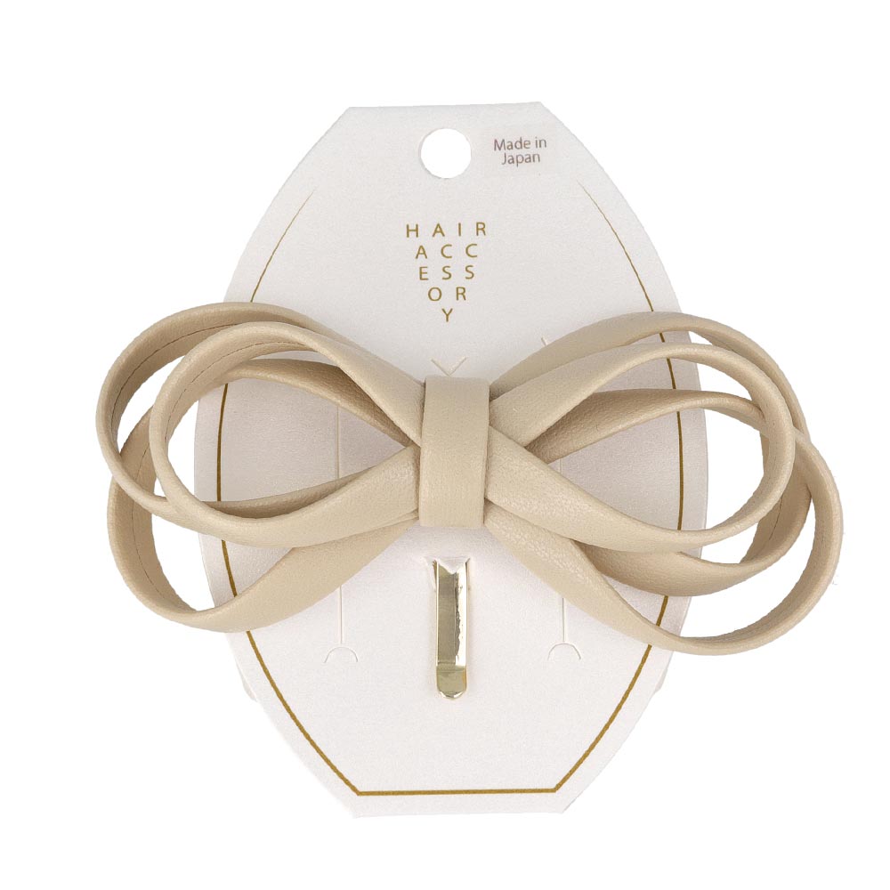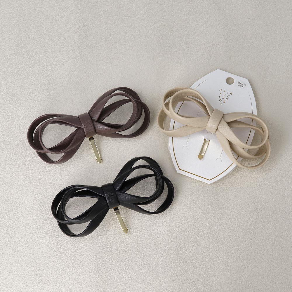甘さをひとさじくわえるのにちょうどいい、きちんとリボンのヘアアクセサリー。高級感溢れるフェイクレザーの質感と品よく落ち着きある色味で好感度高めなデザイン。オールシーズン使える優秀アイテム。ちょっとしたおめかしスタイルに◎差し色使いにも◎