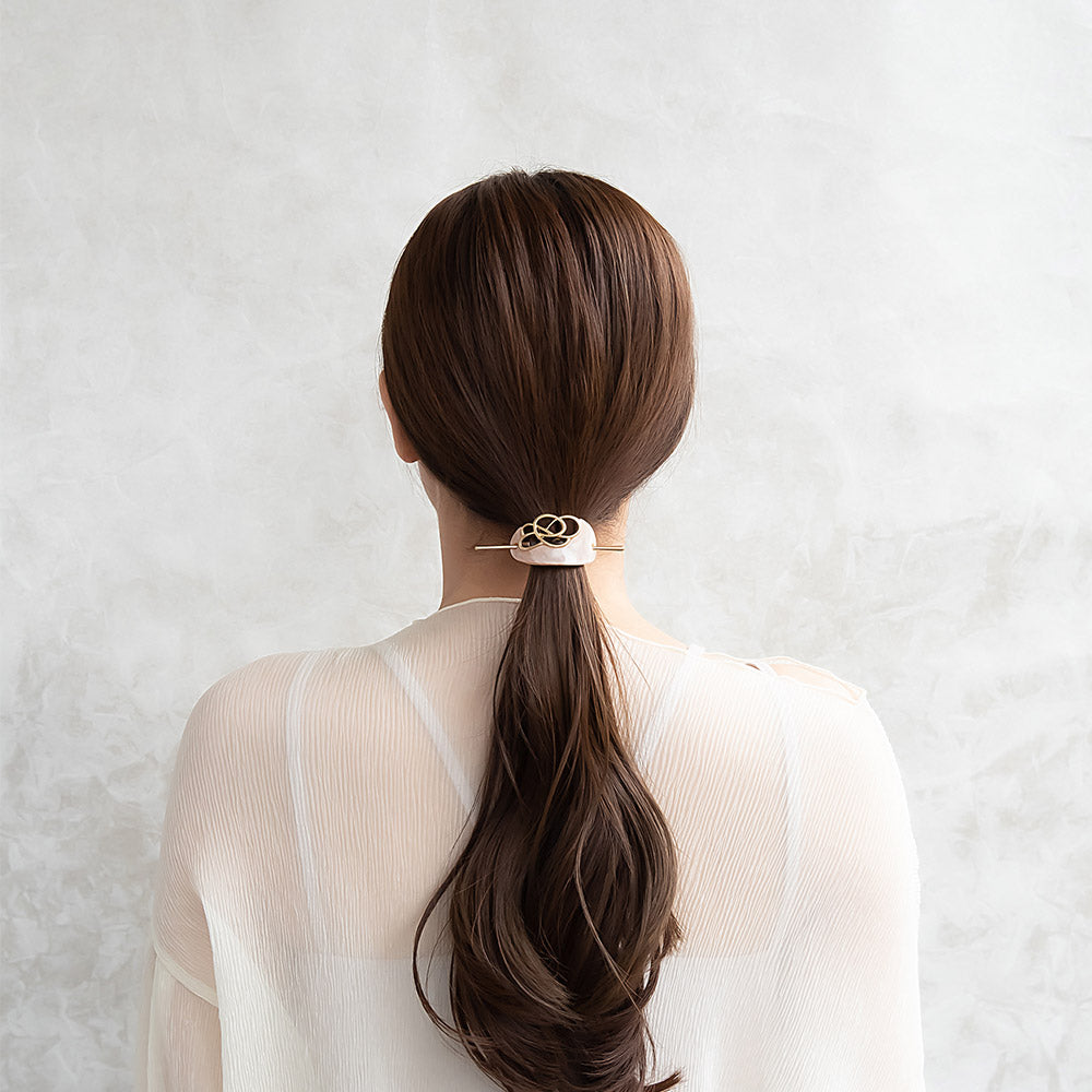マジェステをつけたような手の込んだ”風”のアレンジがすぐに叶う理想のアイテム。髪を結び、裏側のメタルピンをゴムに差し込むだけ!かんたん2stepで完成します。ヘアゴムの結び目が見えないので見ためがキレイな仕上がりに。