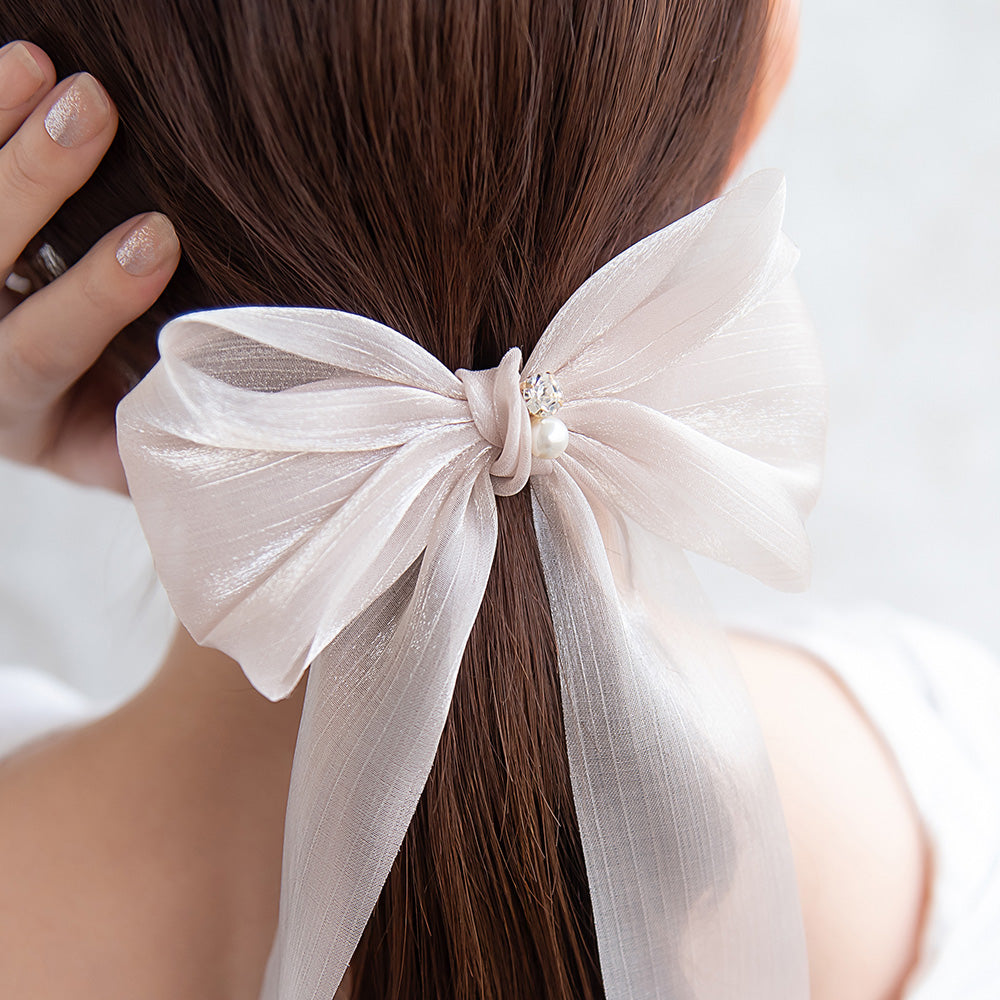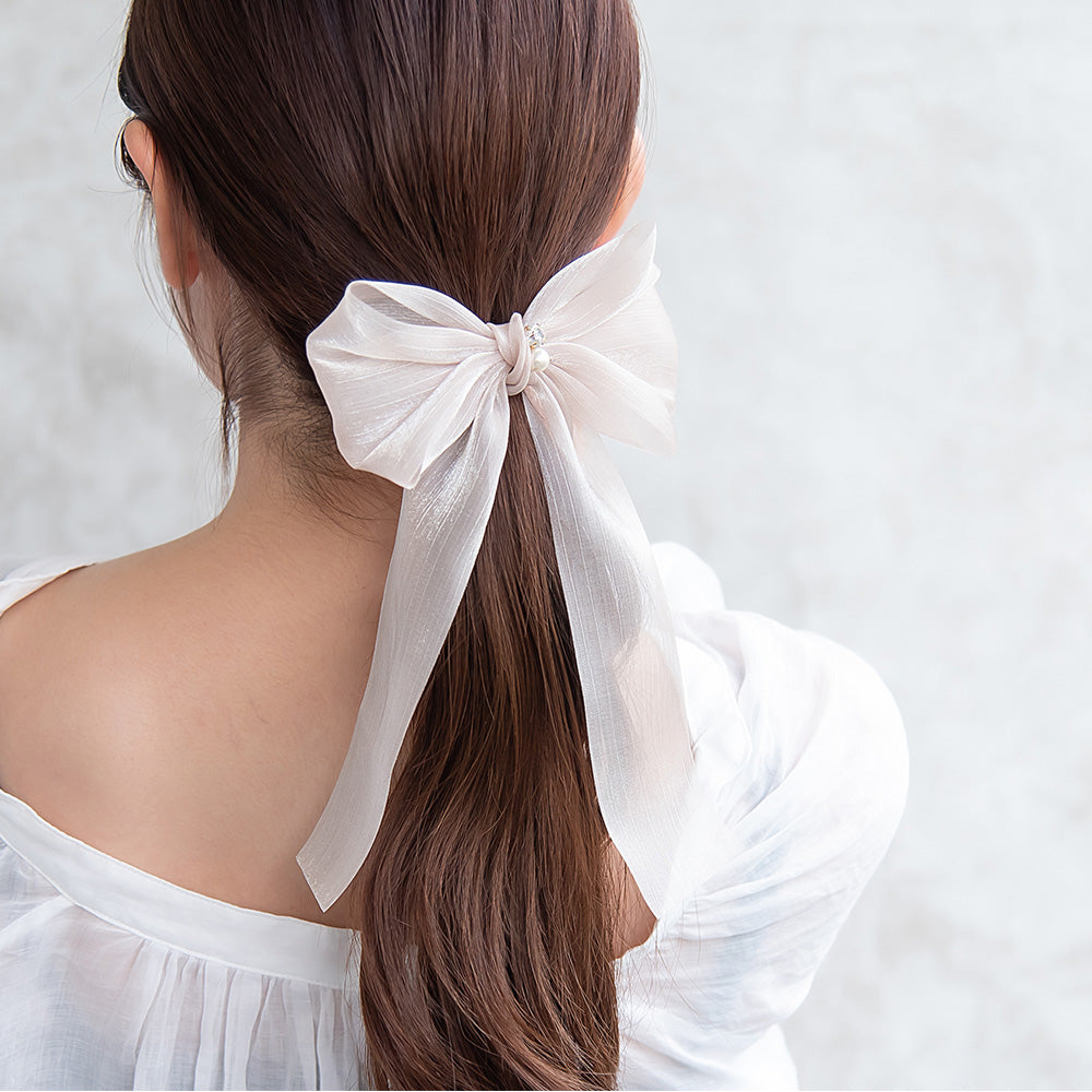 ヘアカフ シアー シマー ロング リボン パール ストーン